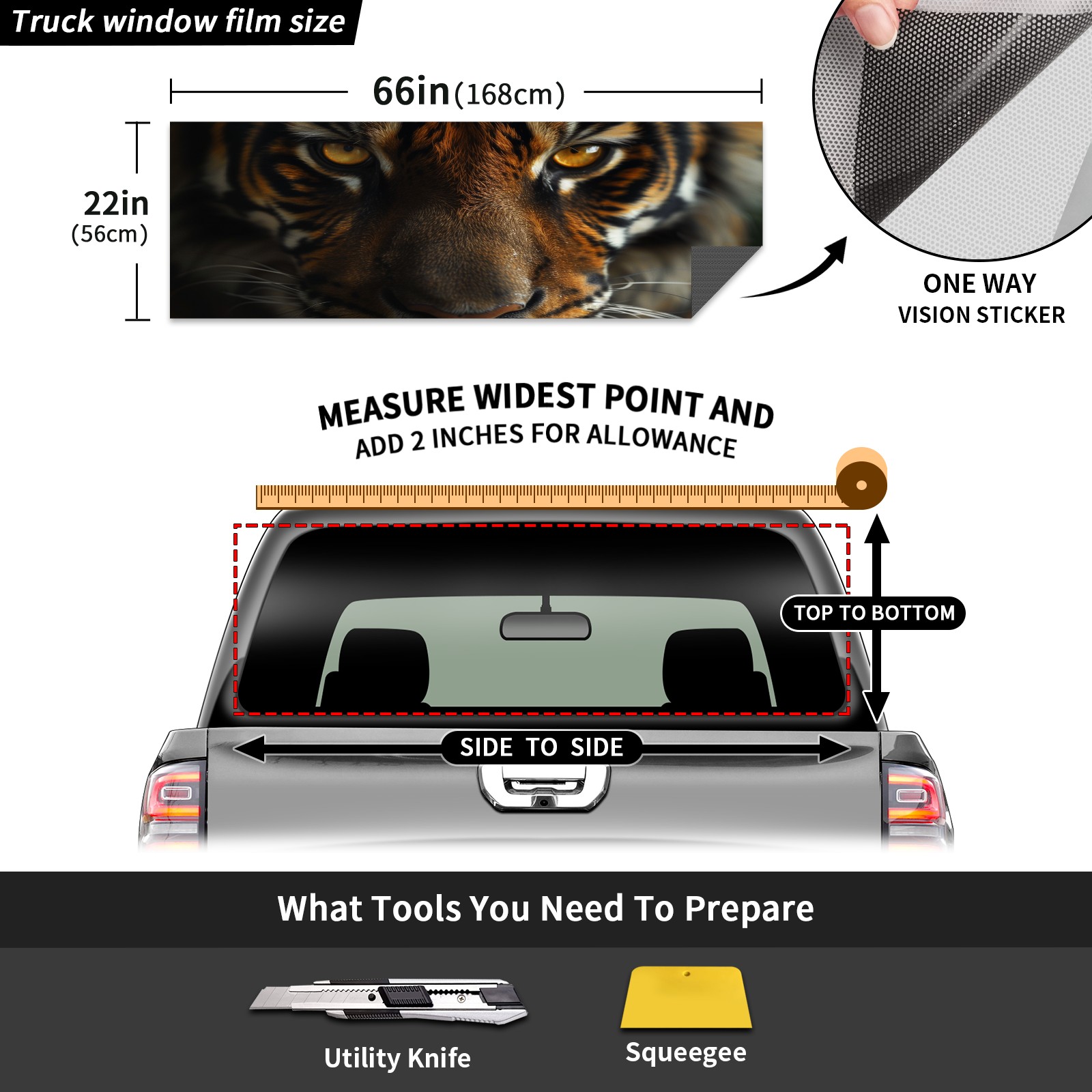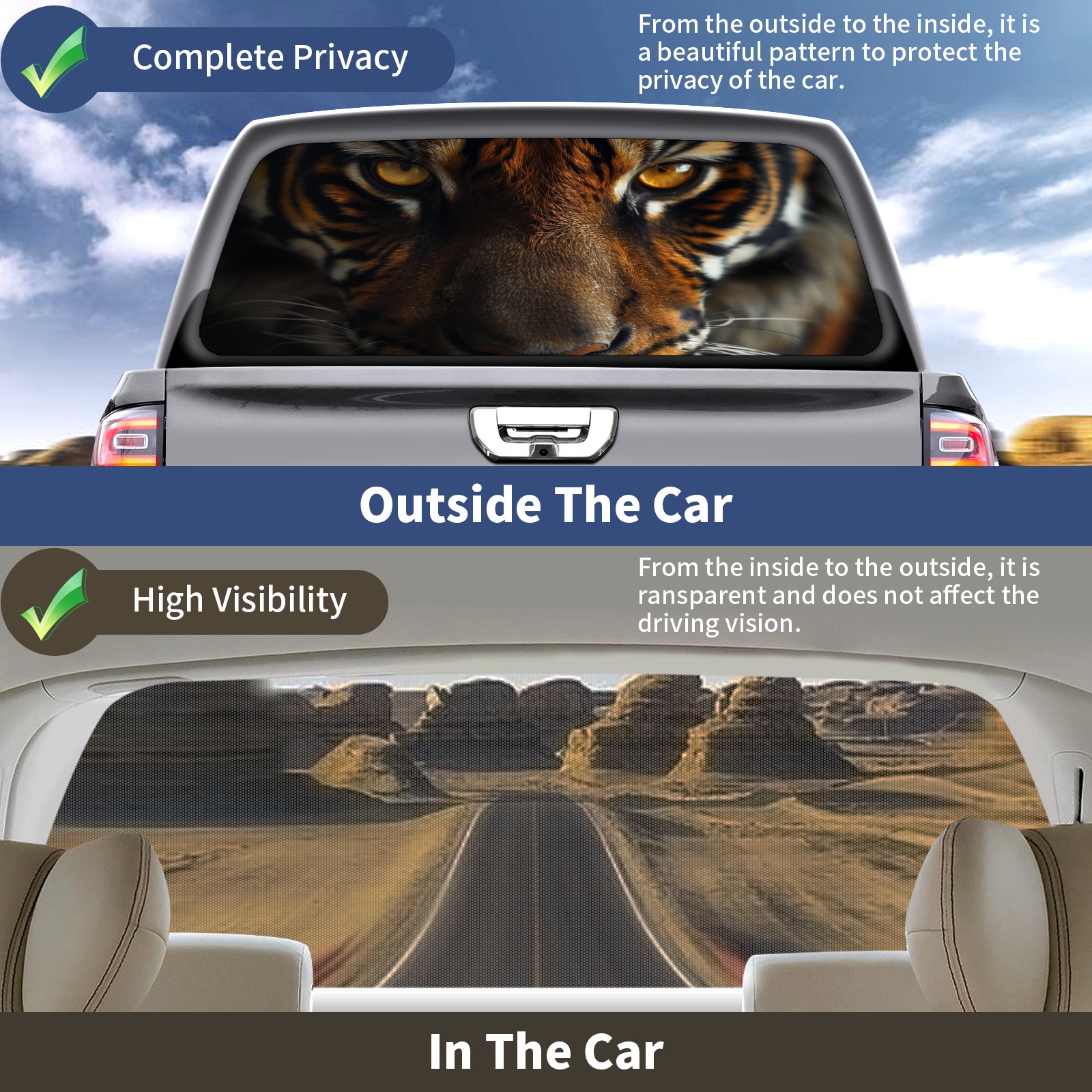 Truck Rear Window Graphics Decals Pickup Trucks Back Window Sticker Full Window Film Decal One Way Visual Waterproof Car Rear Tint Tiger