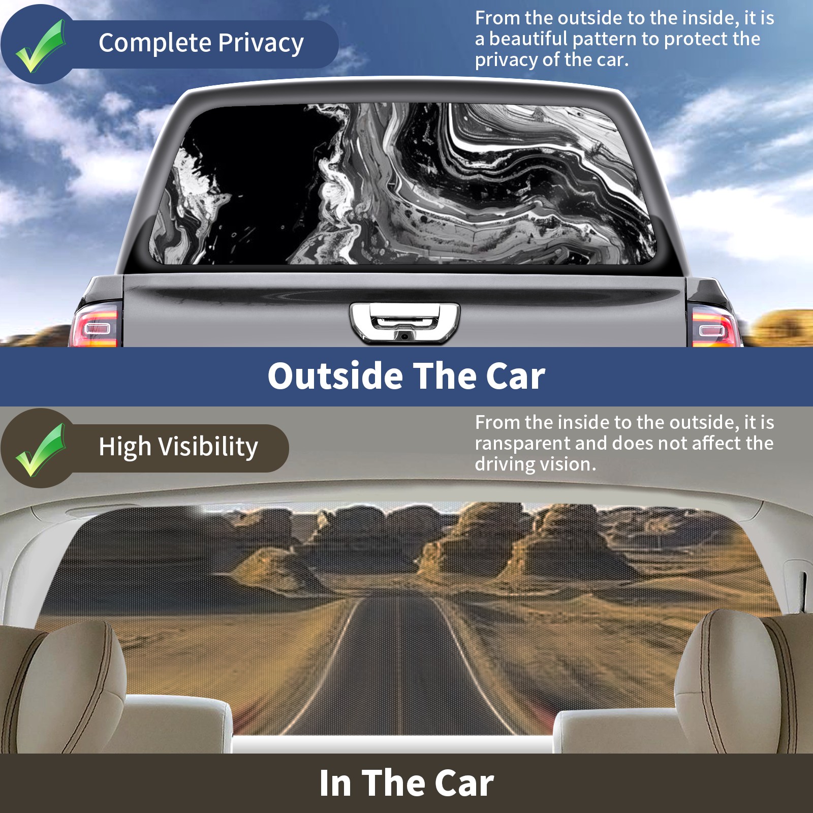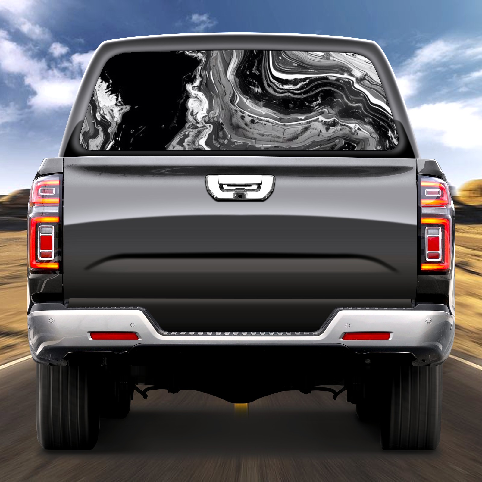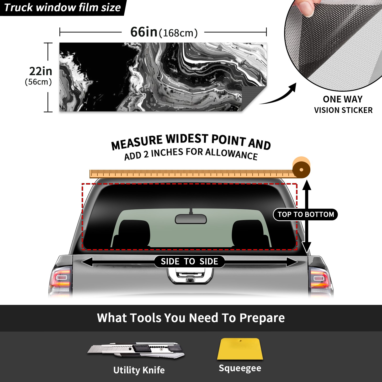 Truck Rear Window Graphics Decals Pickup Trucks Back Window Sticker Full Window Film Decal One Way Visual Waterproof Car Rear Tint Black White