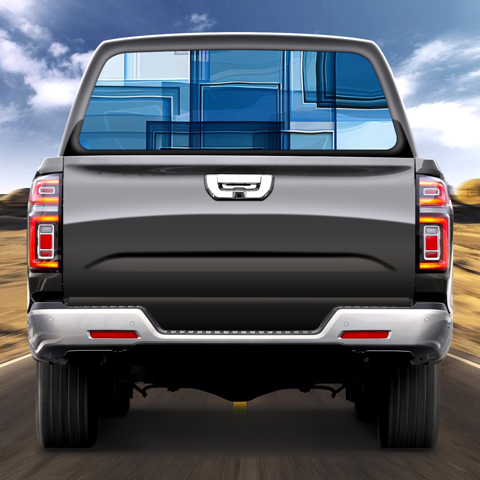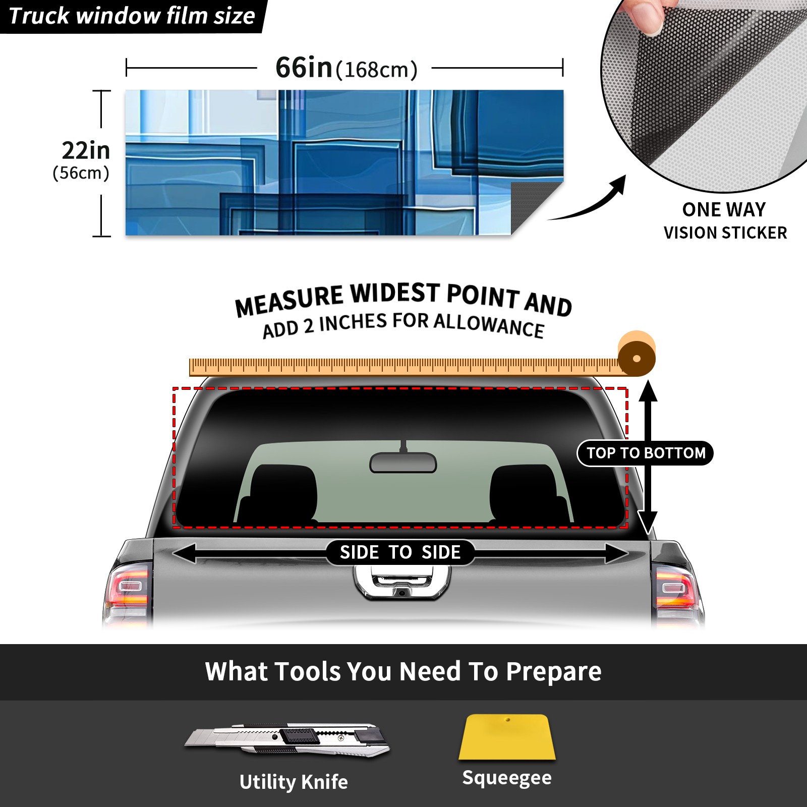 Truck Rear Window Graphics Decals Pickup Trucks Back Window Sticker Full Window Film Decal One Way Visual Waterproof Car Rear Tint Blue Grid