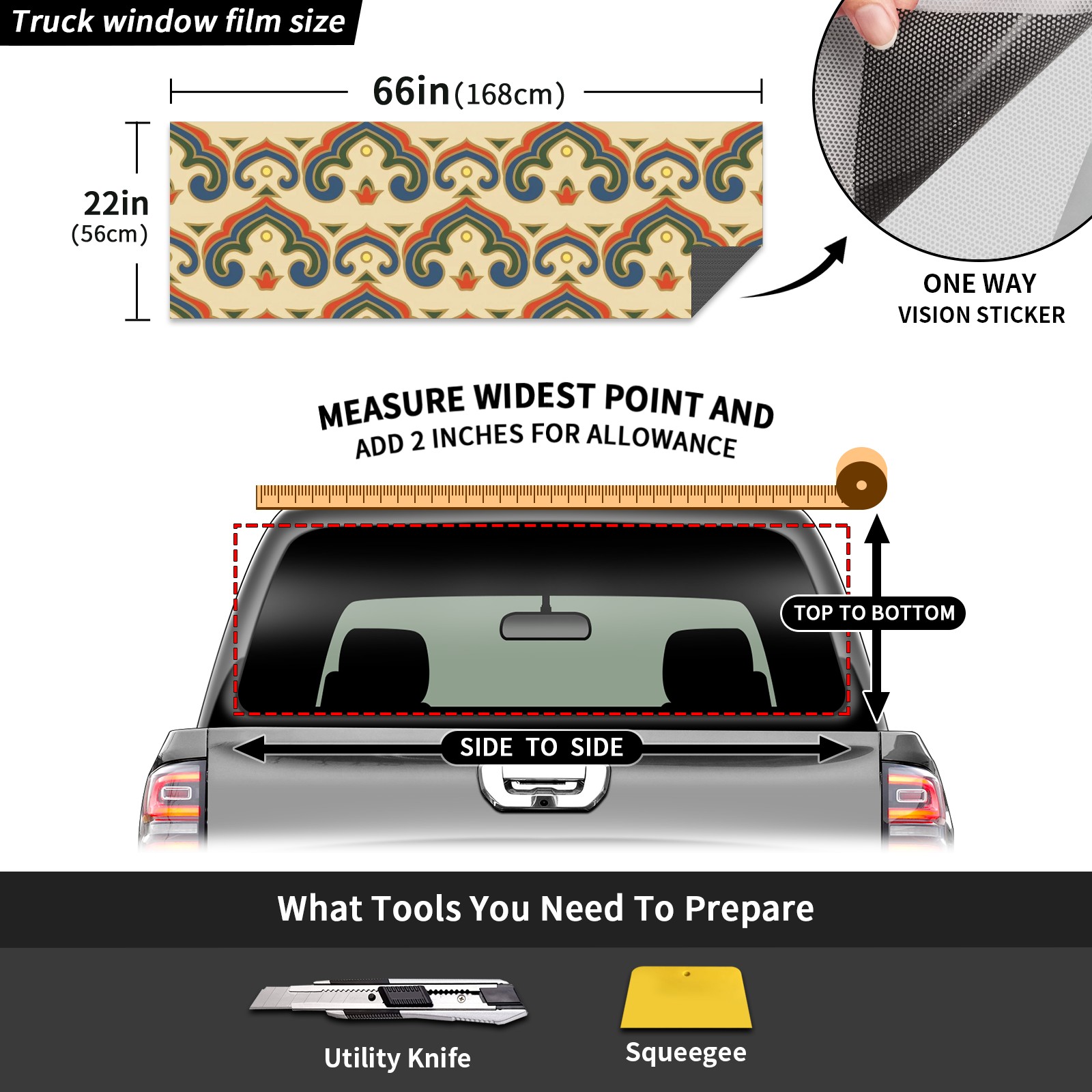 Truck Rear Window Graphics Decals Pickup Trucks Back Window Sticker Full Window Film Decal One Way Visual Waterproof Car Rear Tint Bohemia