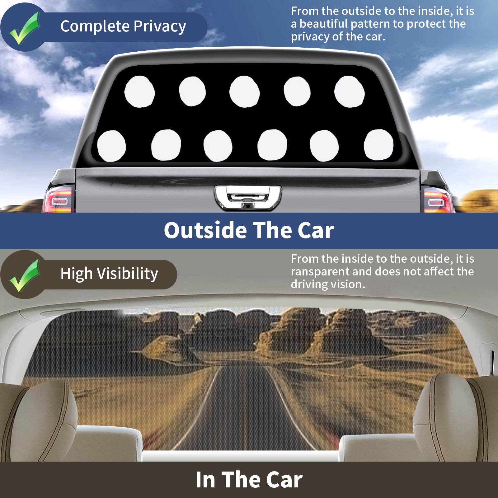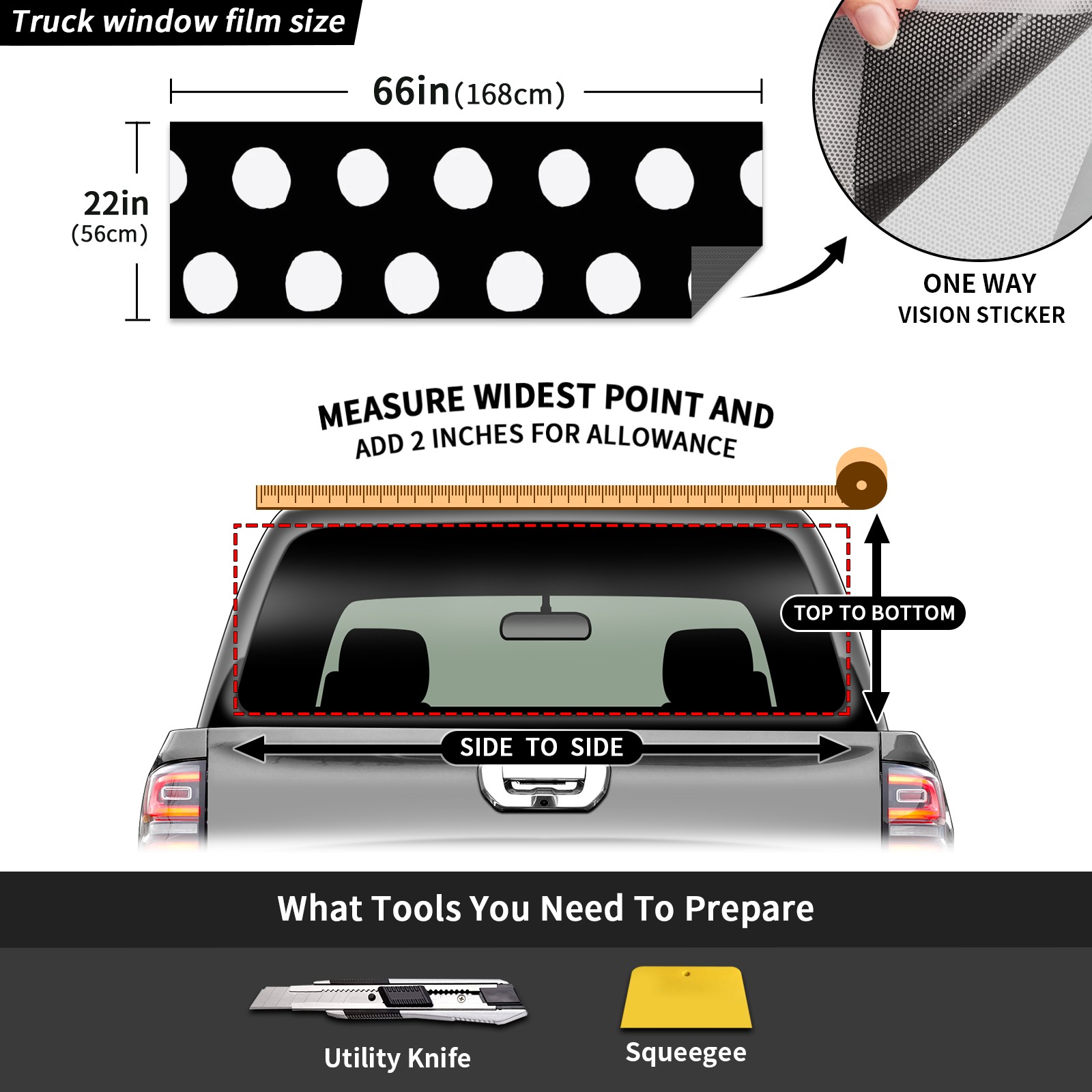 Truck Rear Window Graphics Decals Pickup Trucks Back Window Sticker Full Window Film Decal One Way Visual Waterproof Car Rear Tint Black White Speckle