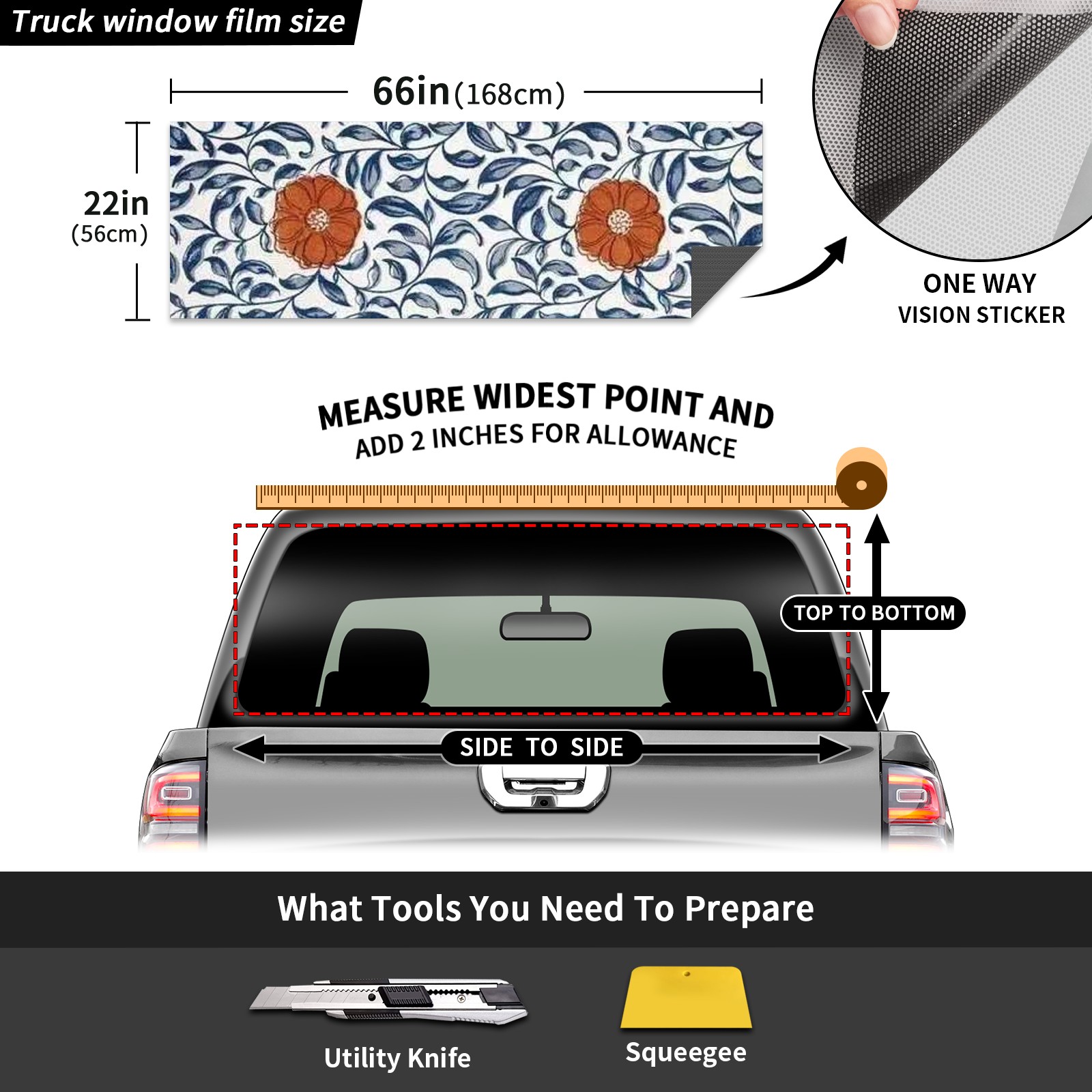 Truck Rear Window Graphics Decals Pickup Trucks Back Window Sticker Full Window Film Decal One Way Visual Waterproof Car Rear Tint Flower
