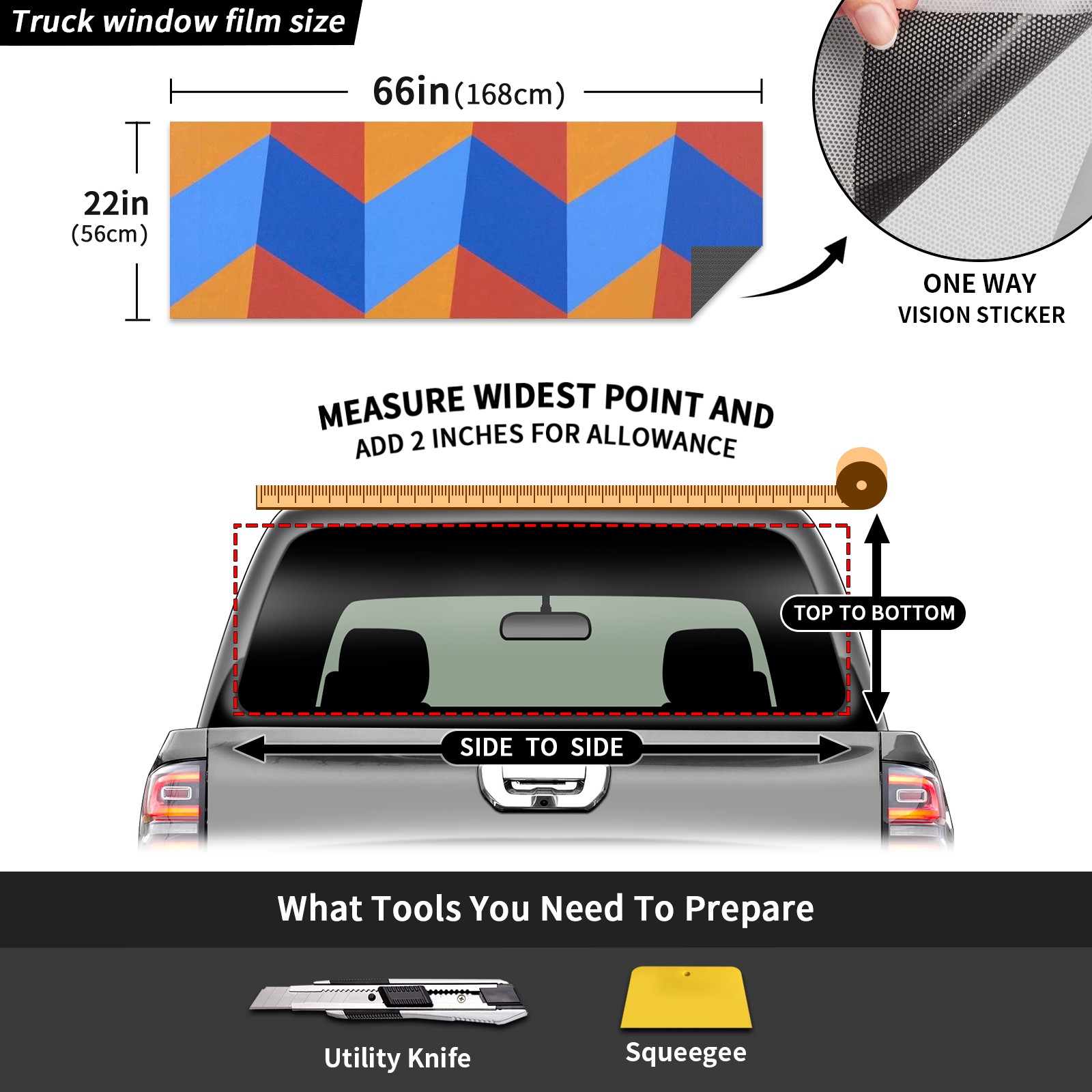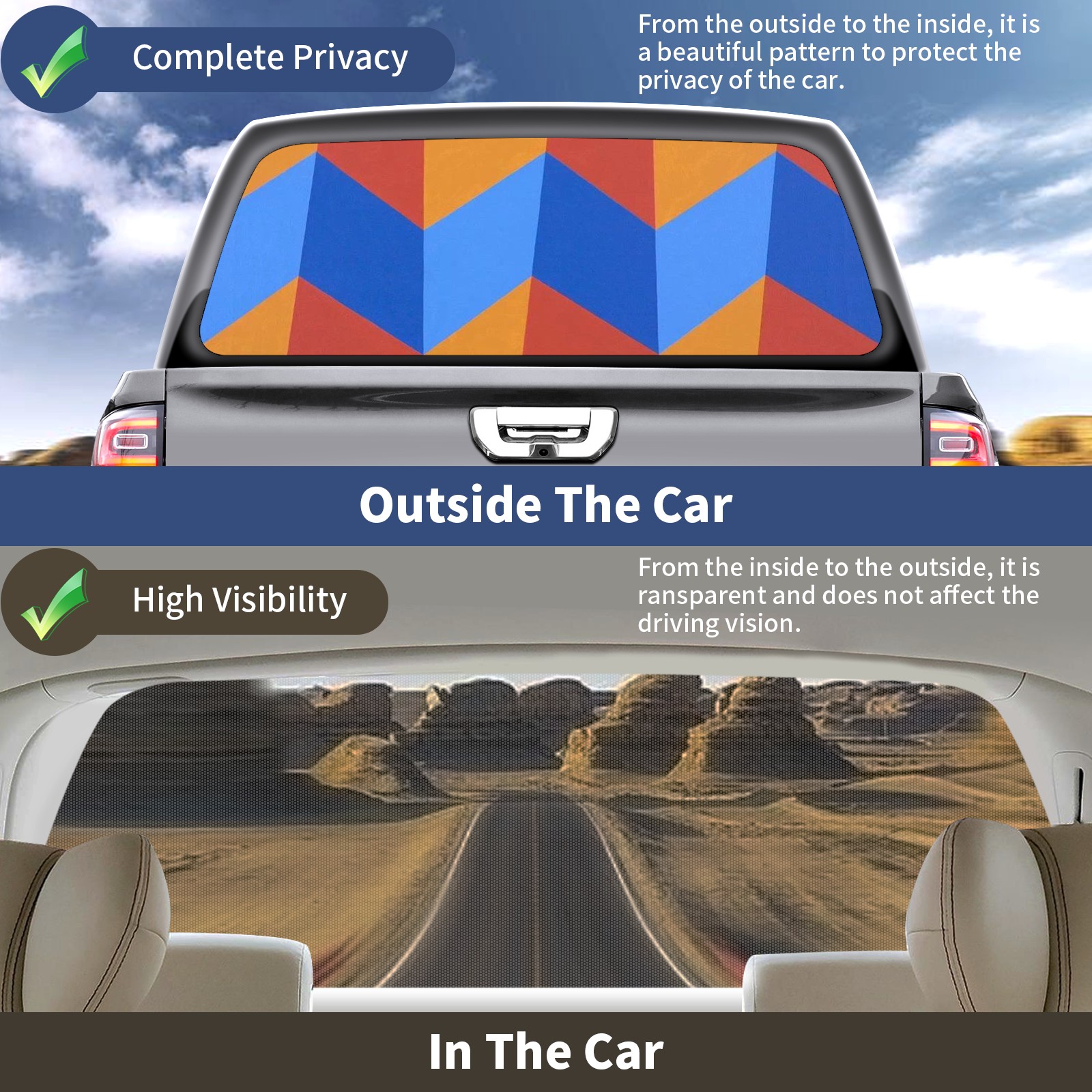 Truck Rear Window Graphics Decals Pickup Trucks Back Window Sticker Full Window Film Decal One Way Visual Waterproof Car Rear Tint Orange Blue