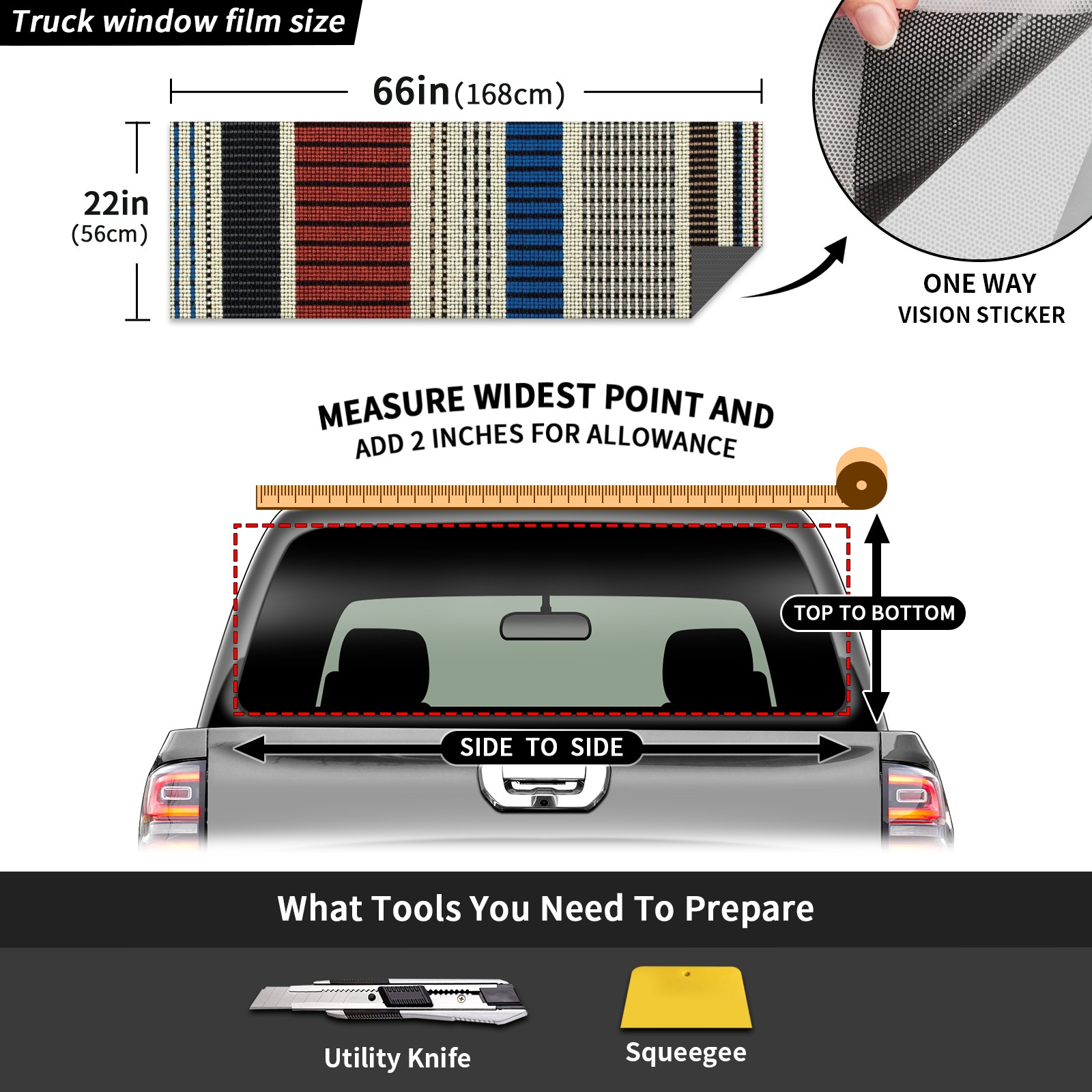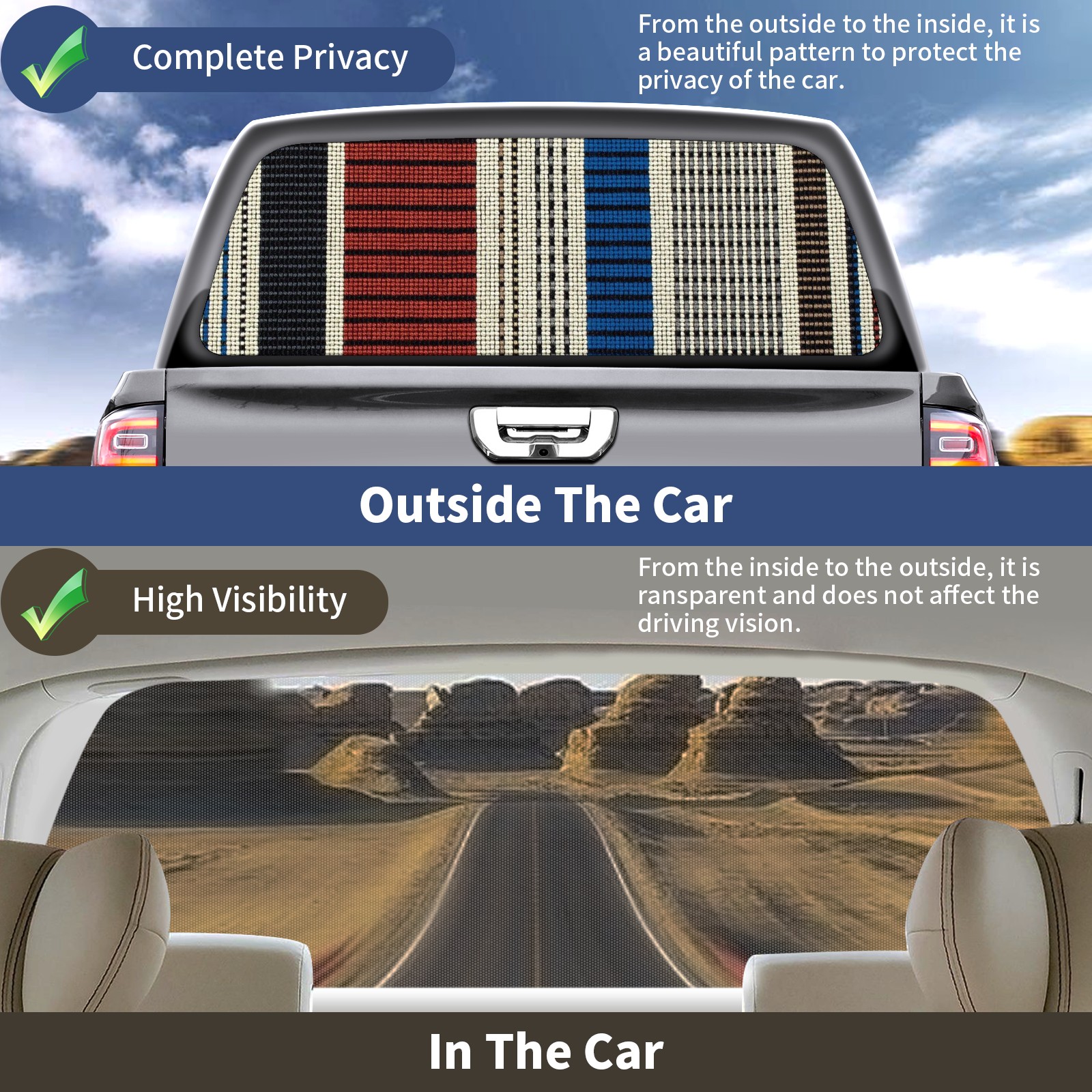 Truck Rear Window Graphics Decals Pickup Trucks Back Window Sticker Full Window Film Decal One Way Visual Waterproof Car Rear Tint Bohemia Lines