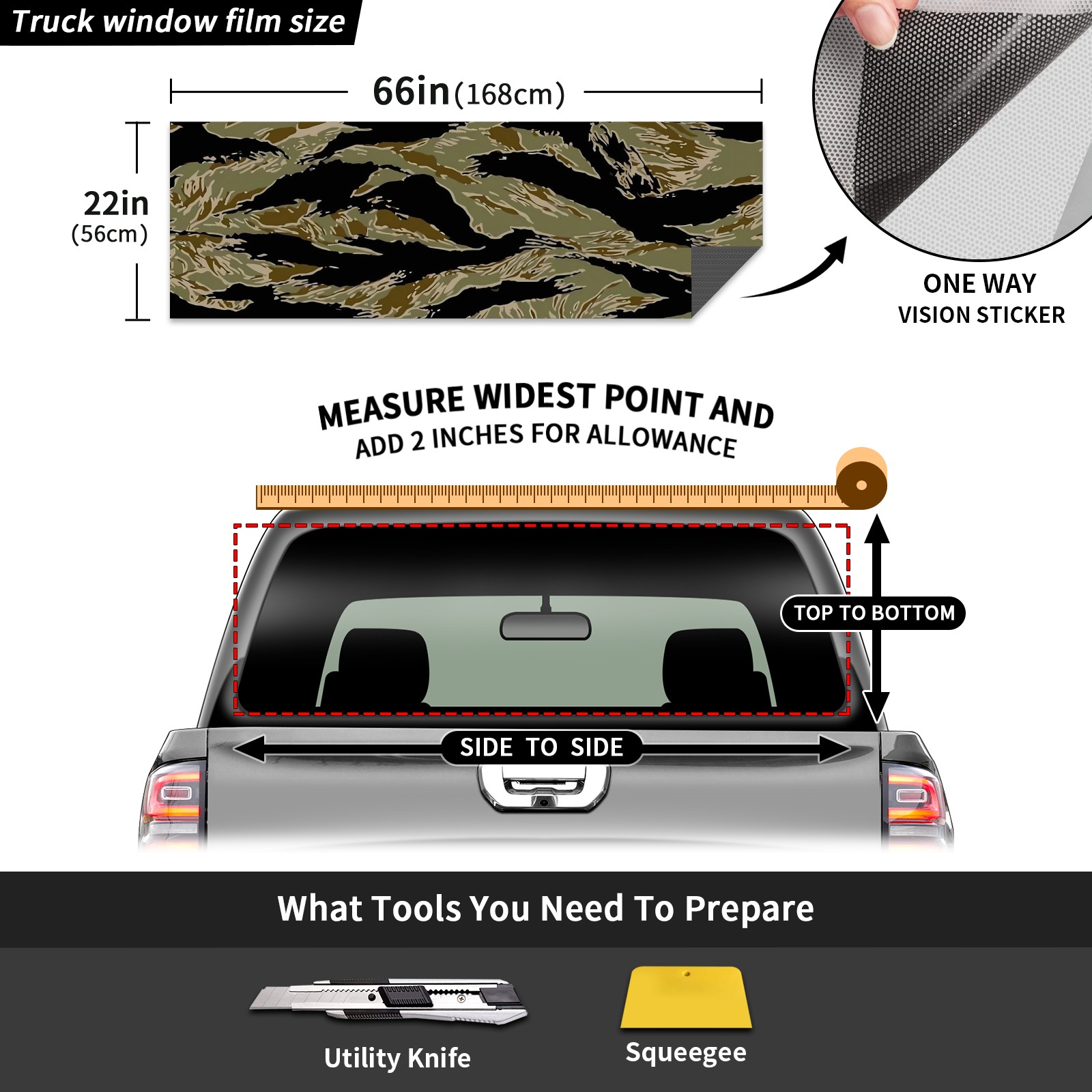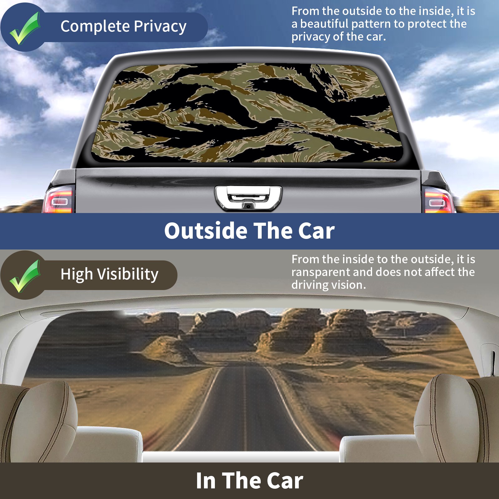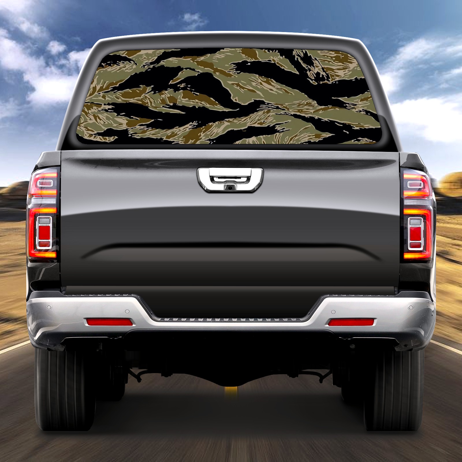 Truck Rear Window Graphics Decals Pickup Trucks Back Window Sticker Full Window Film Decal One Way Visual Waterproof Car Rear Tint Tiger Stripe Camo