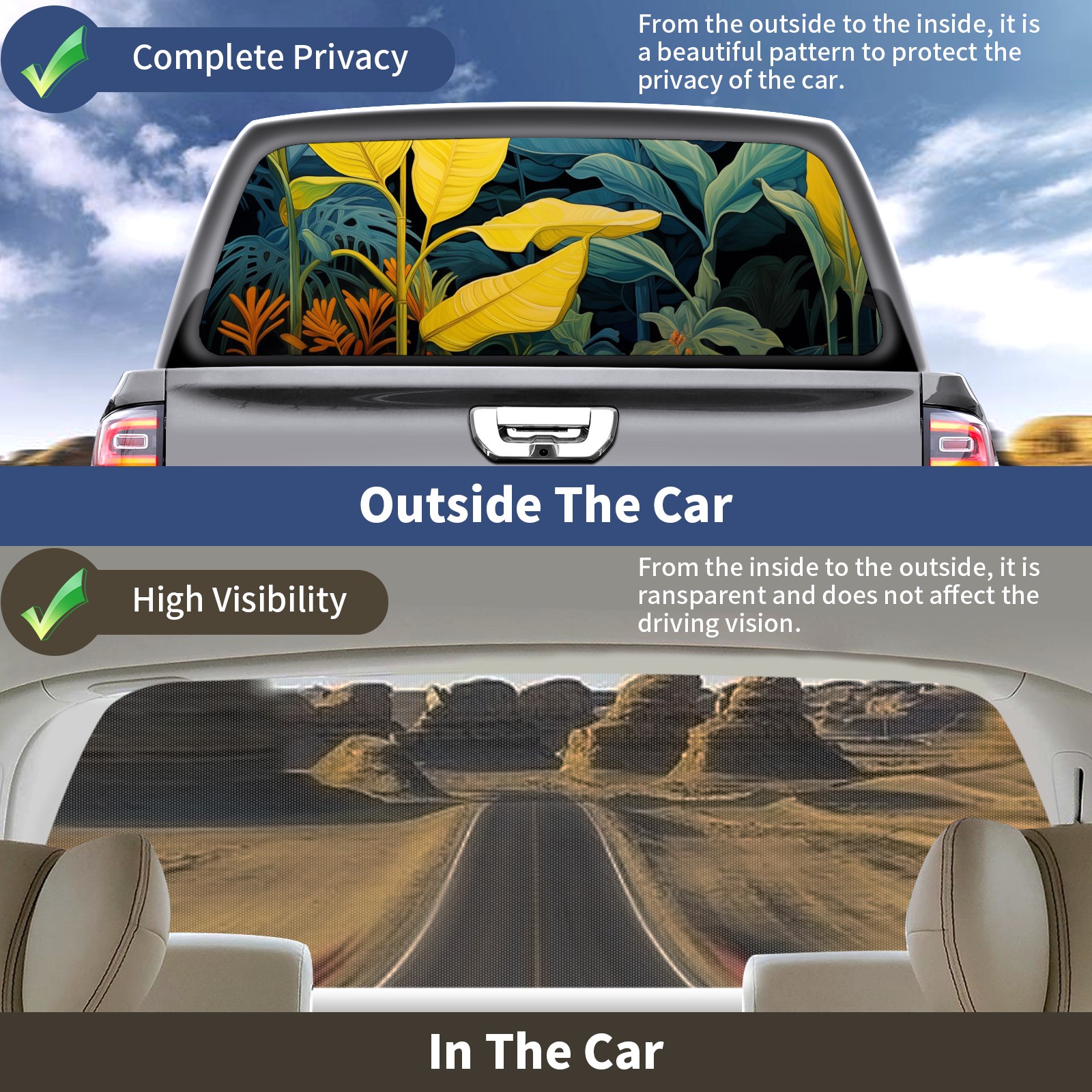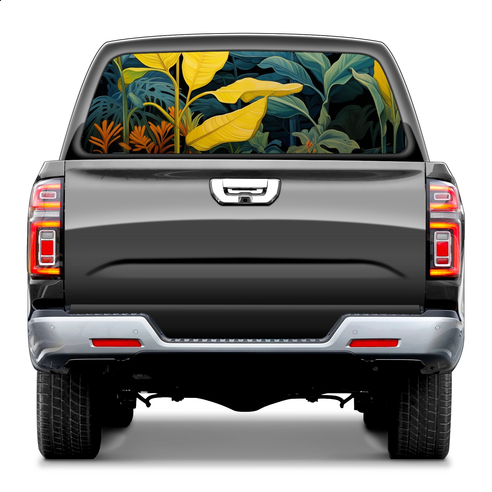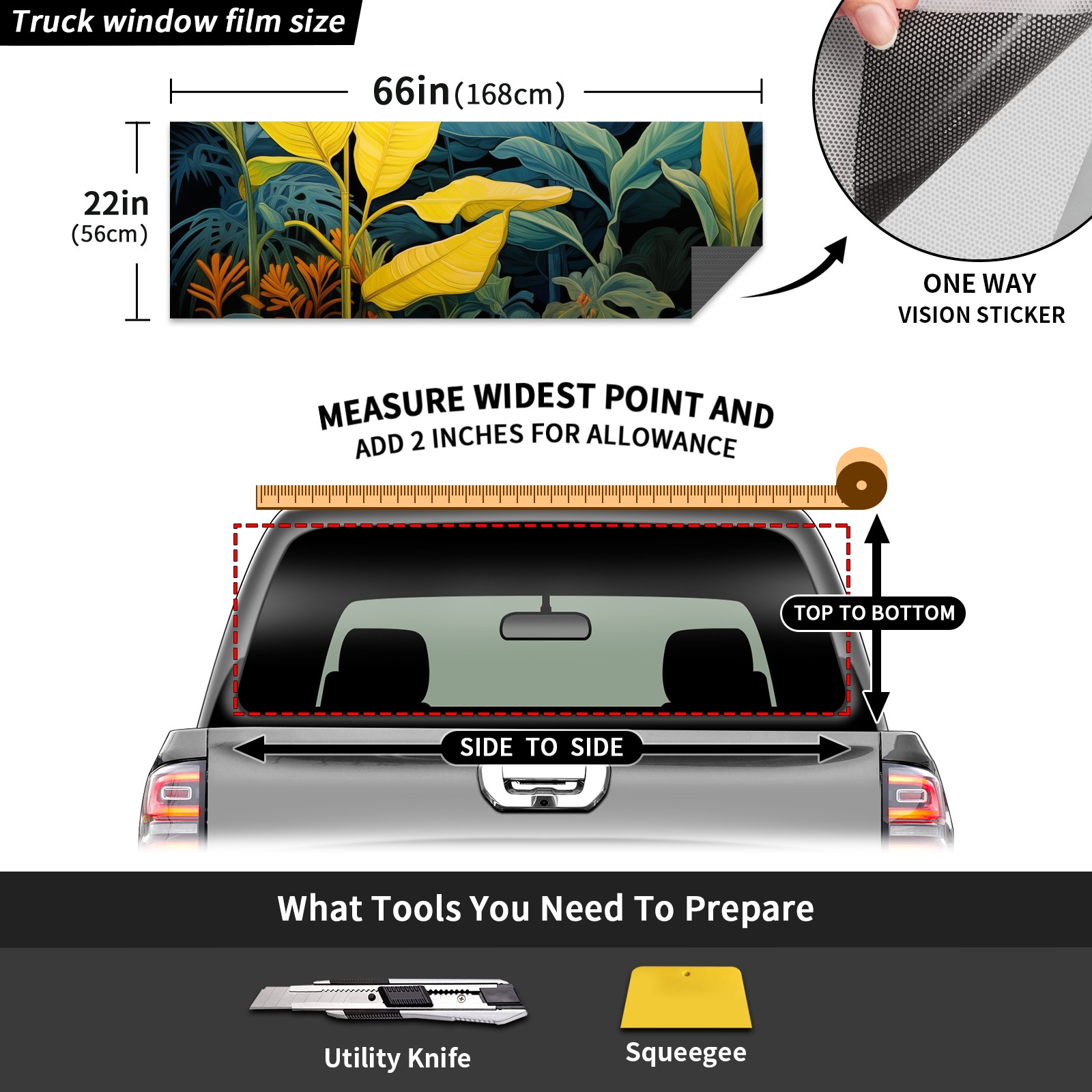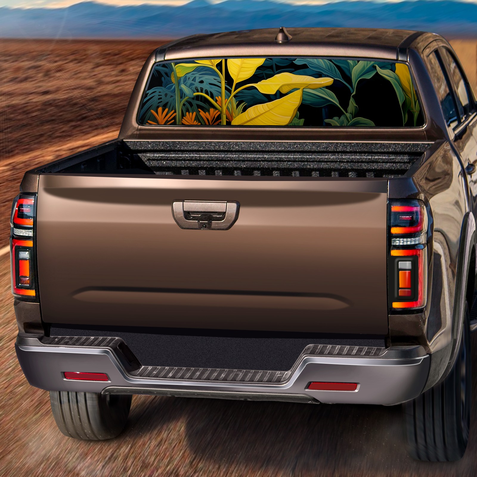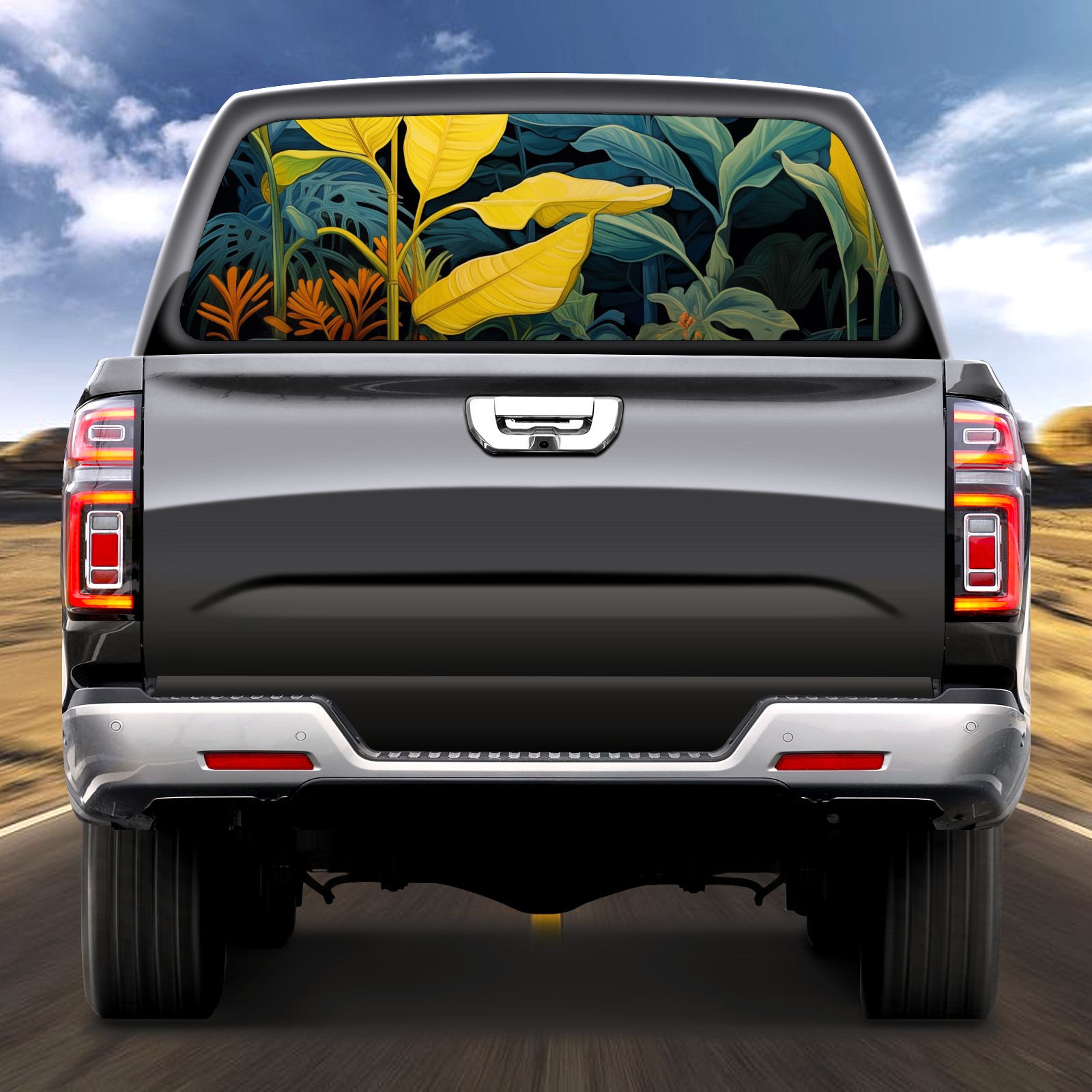 Truck Rear Window Graphics Decals Pickup Trucks Back Window Sticker Full Window Film Decal One Way Visual Waterproof Car Rear Tint Tropical Leaves Green