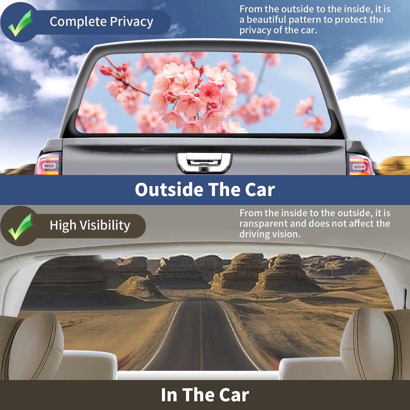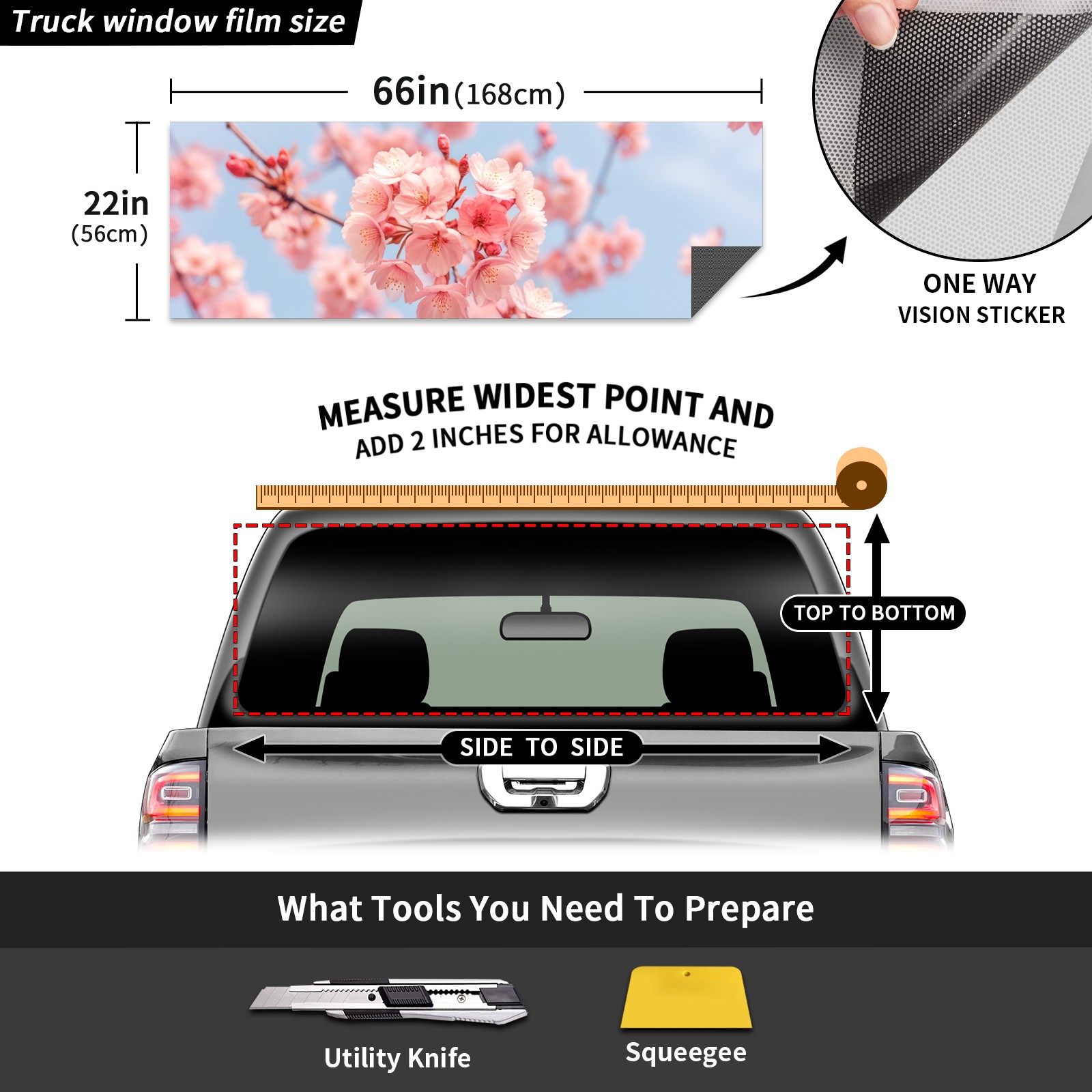Truck Rear Window Graphics Decals Pickup Trucks Back Window Sticker Full Window Film Decal One Way Visual Waterproof Car Rear Tint Flower (1)
