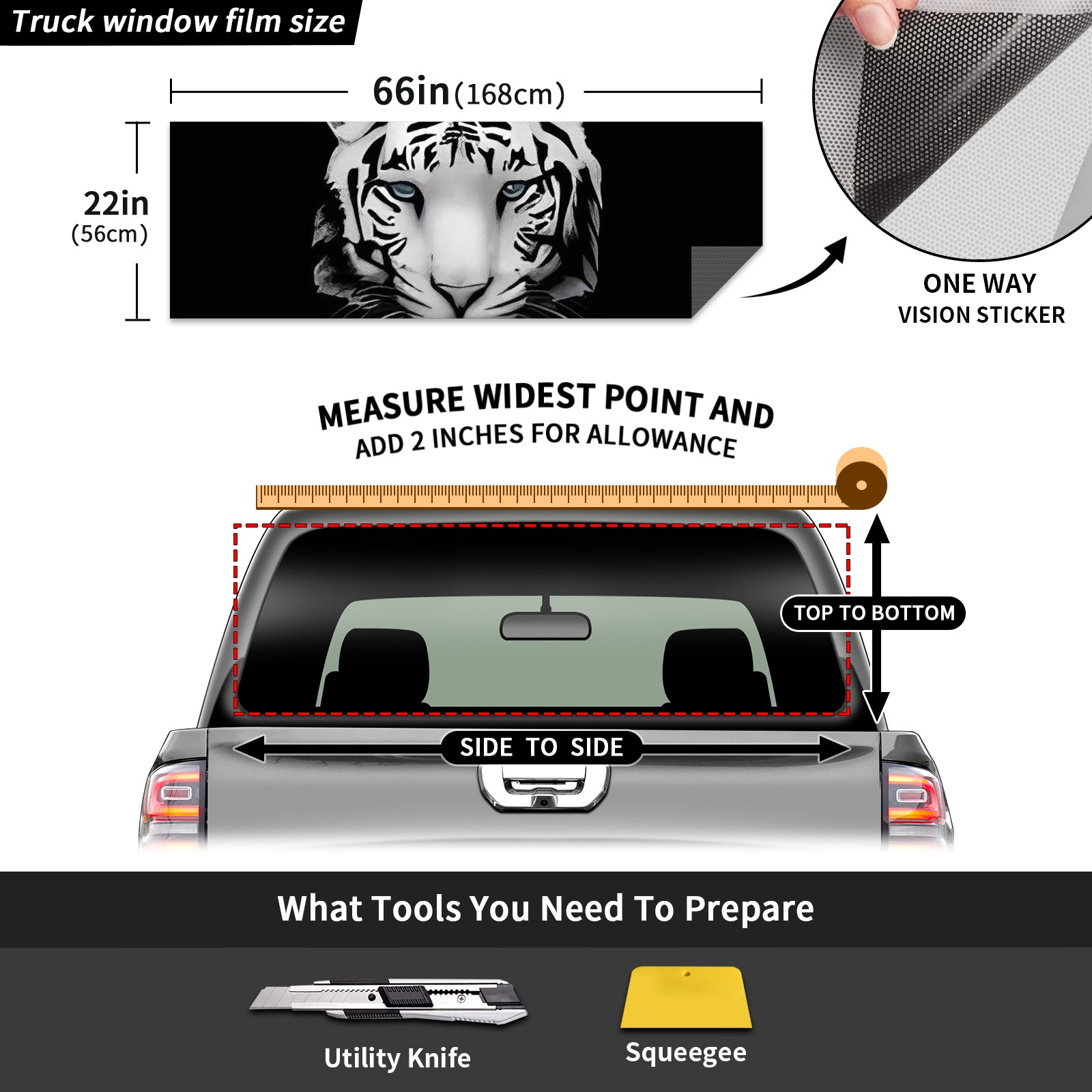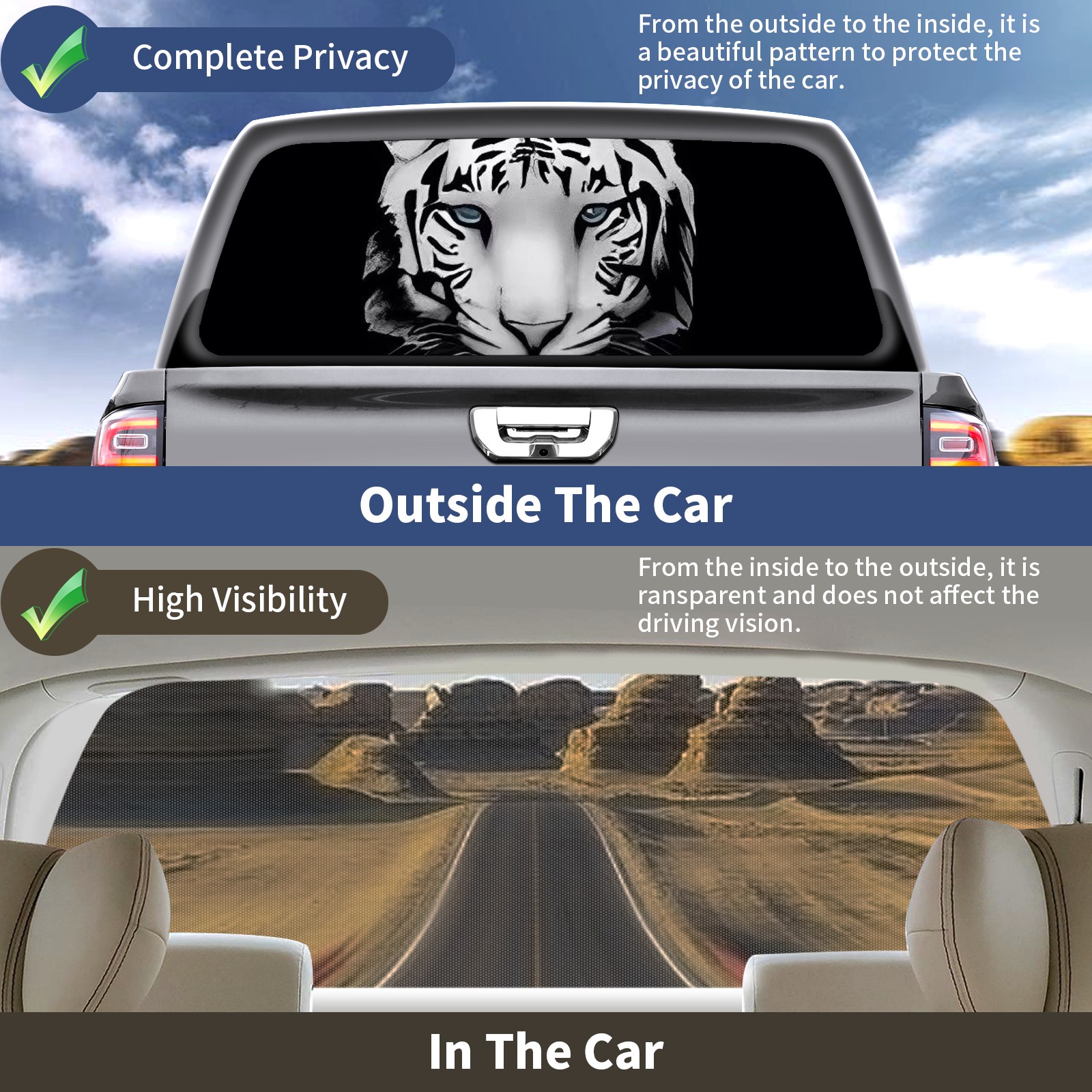 Truck Rear Window Graphics Decals Pickup Trucks Back Window Sticker Full Window Film Decal One Way Visual Waterproof Car Rear Tint Tiger In The Shadow