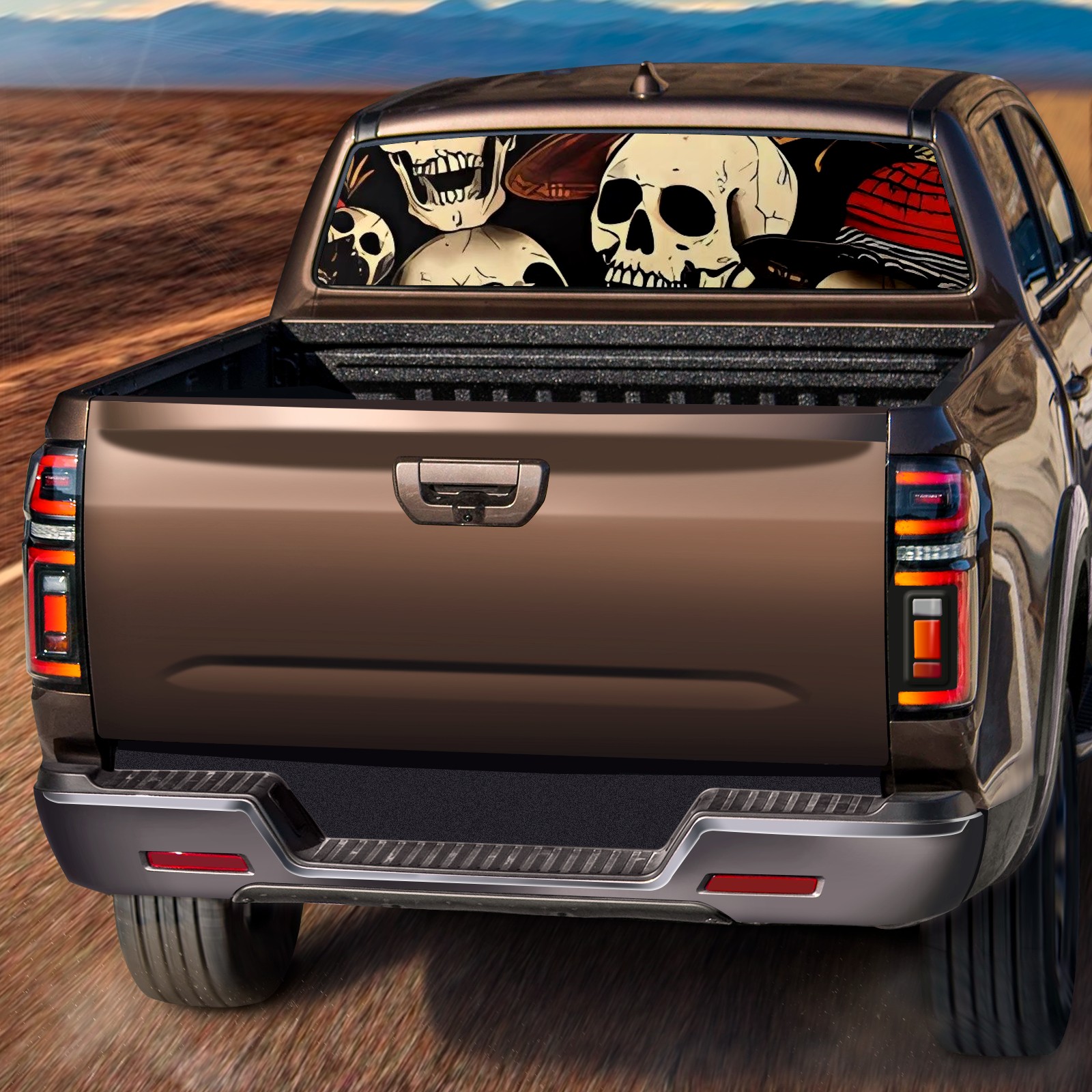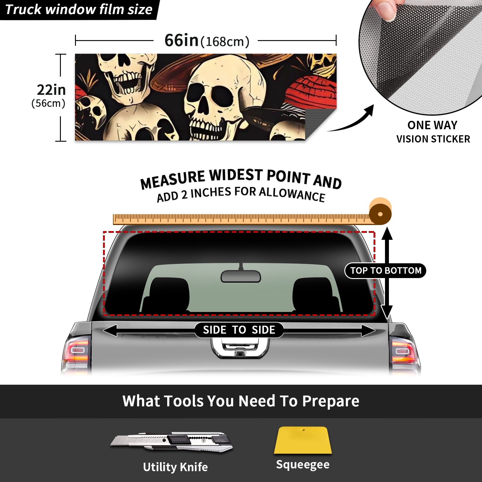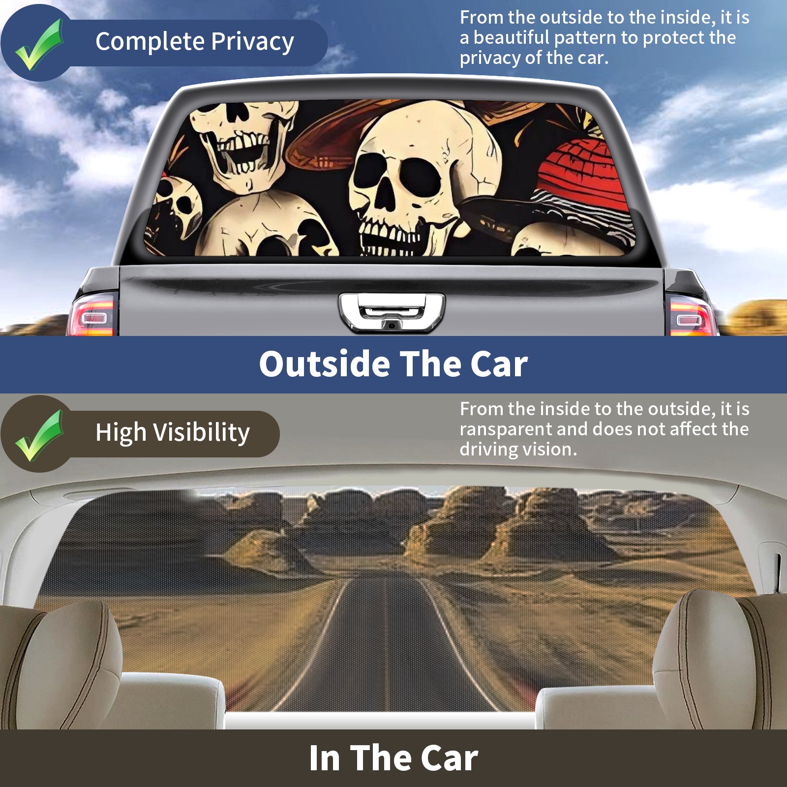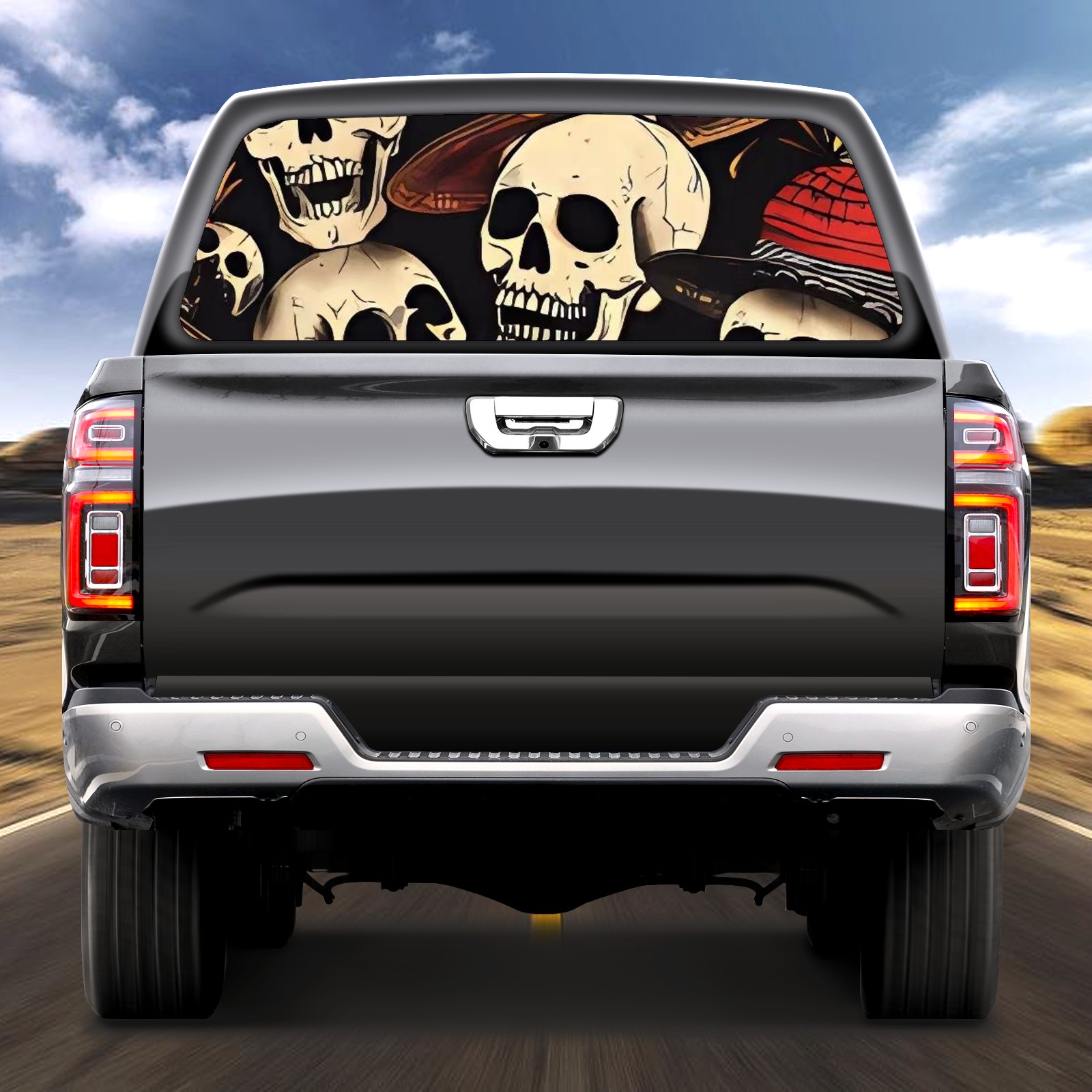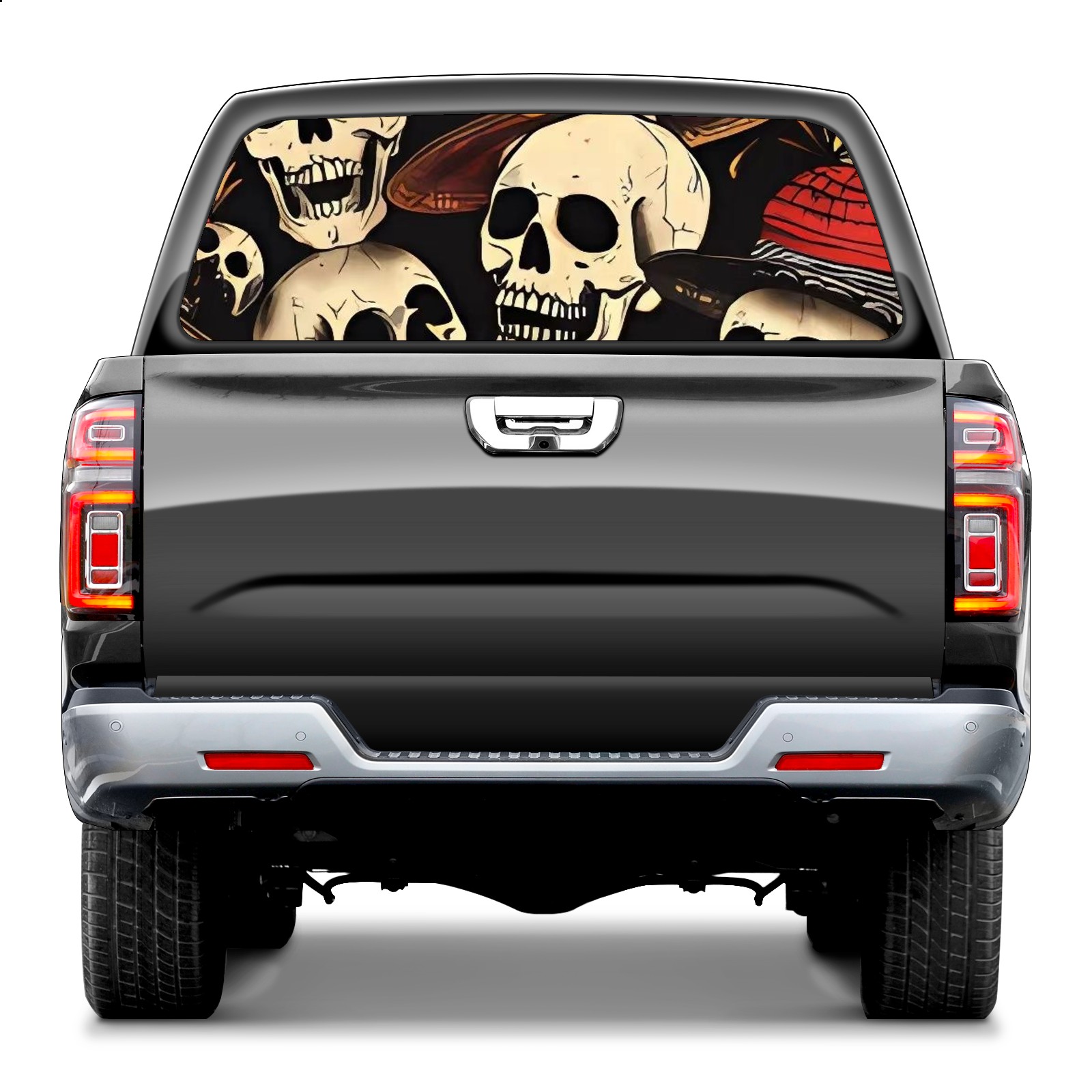 Truck Rear Window Graphics Decals Pickup Trucks Back Window Sticker Full Window Film Decal One Way Visual Waterproof Car Rear Tint Skull Party