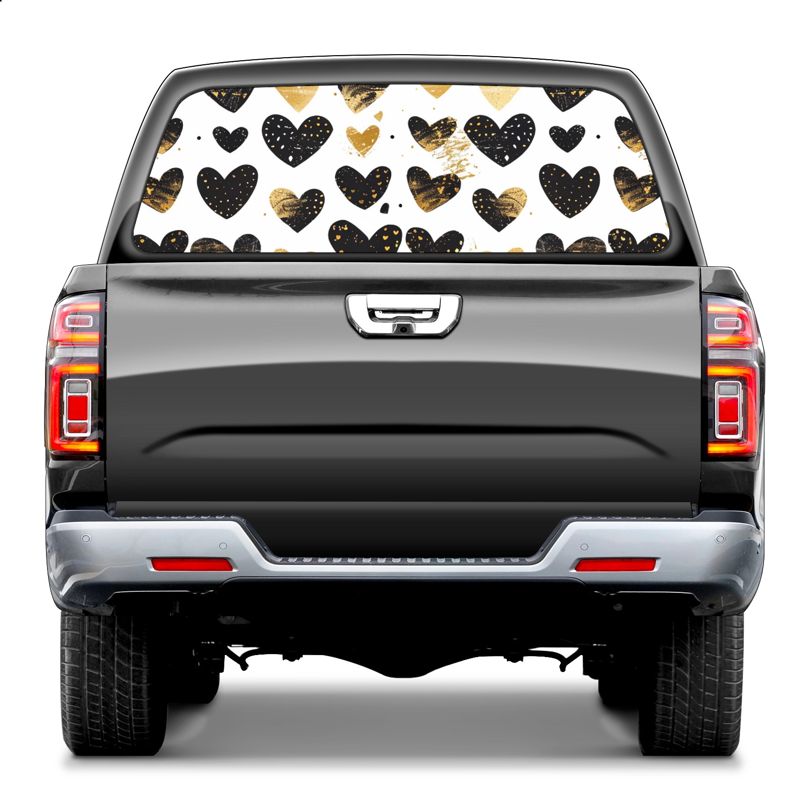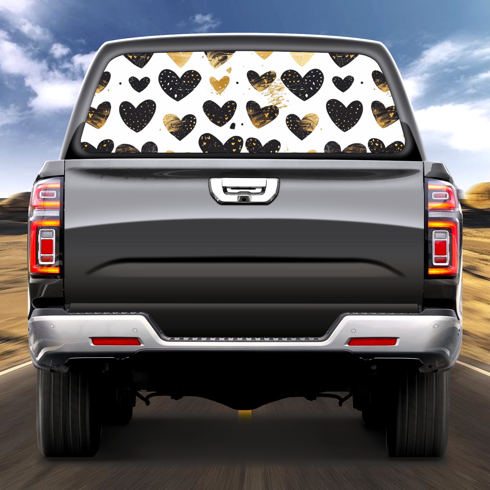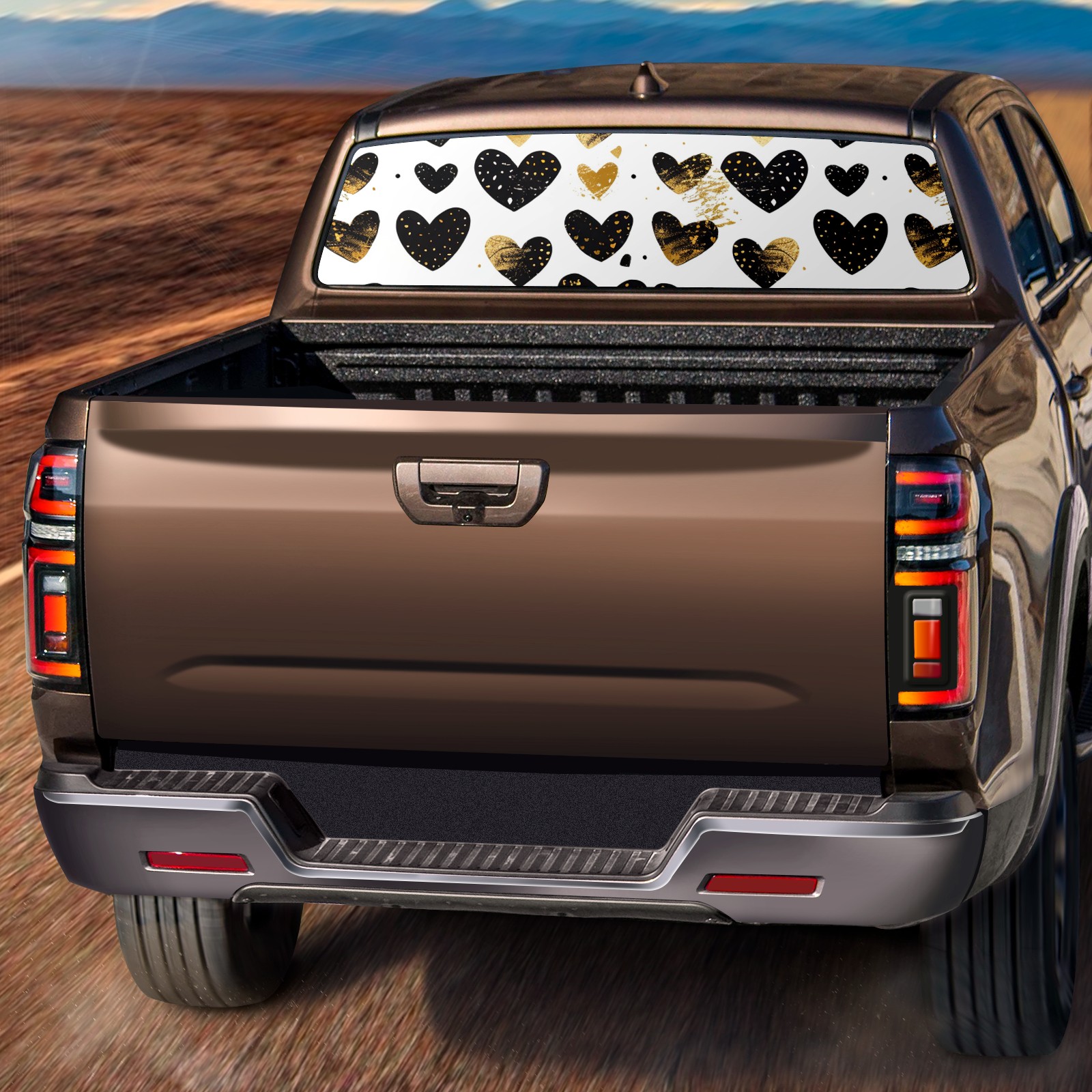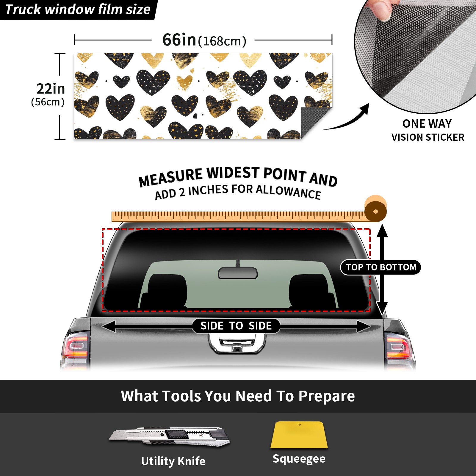 Truck Rear Window Graphics Decals Pickup Trucks Back Window Sticker Full Window Film Decal One Way Visual Waterproof Car Rear Tint White Gold Hearts (3)