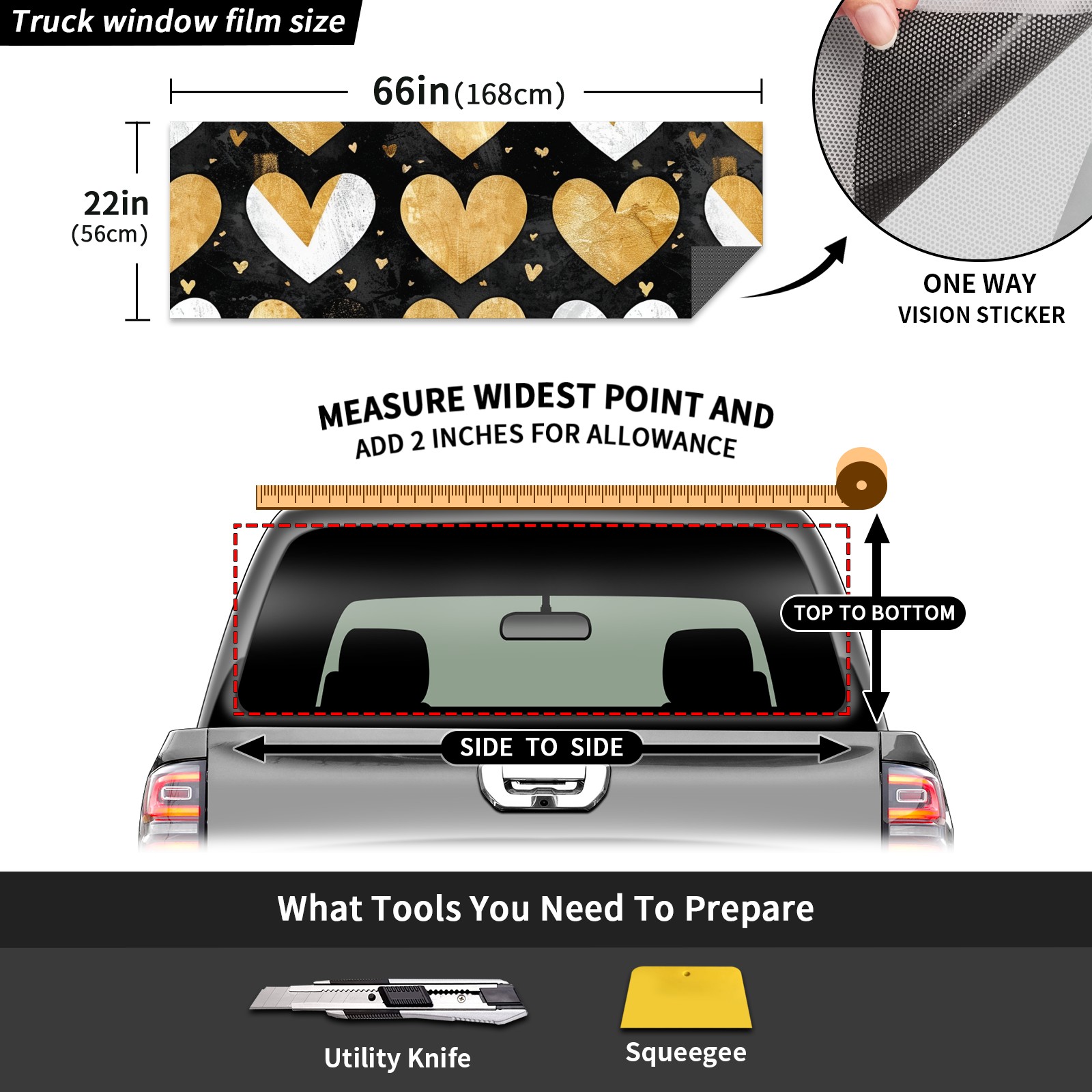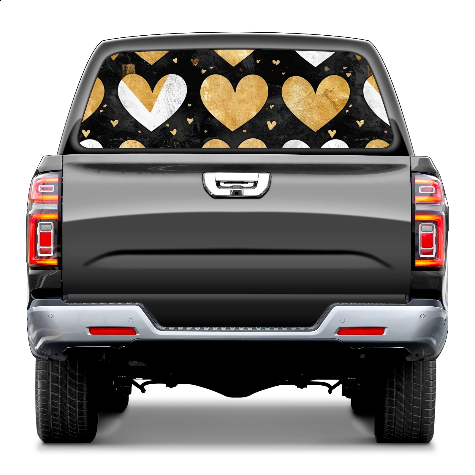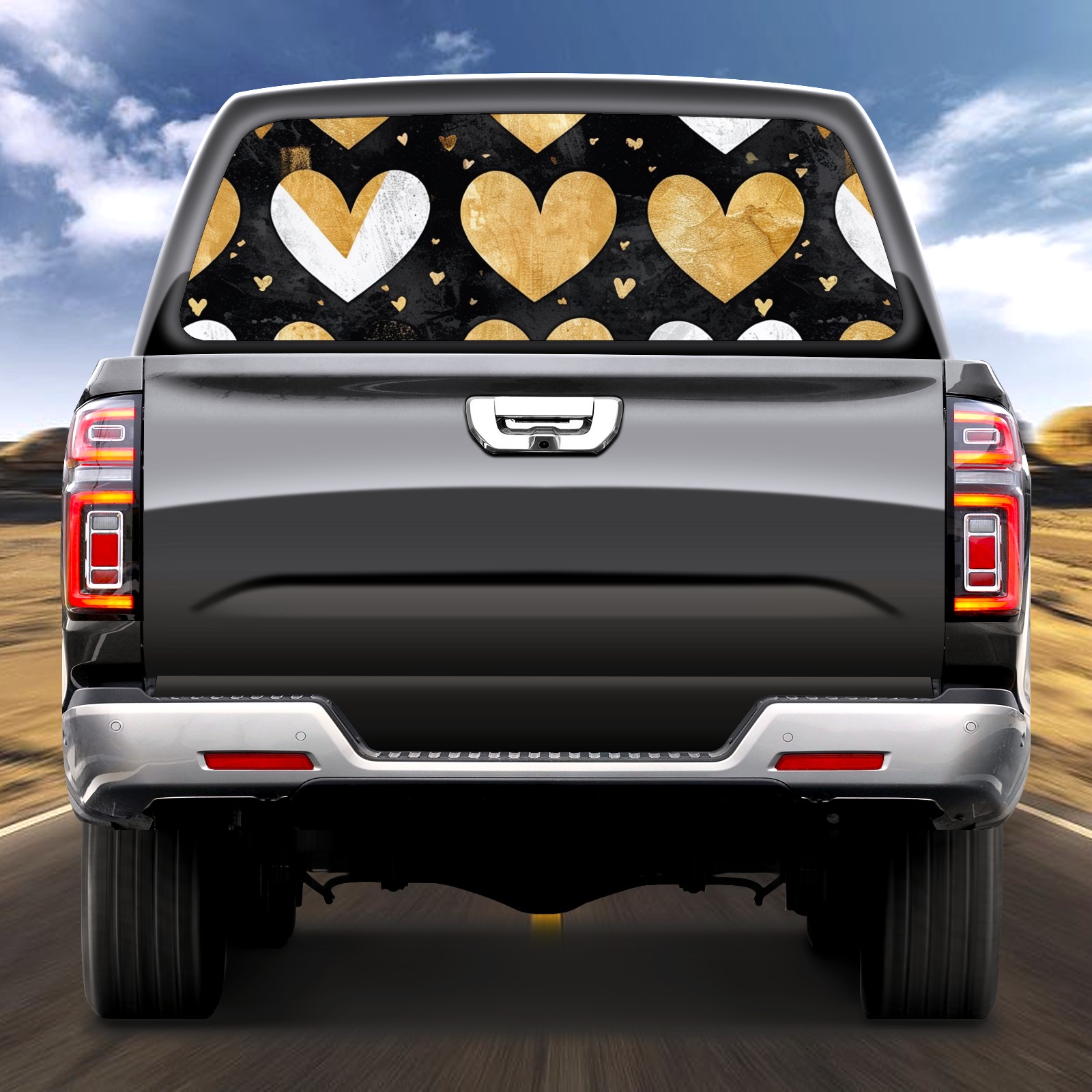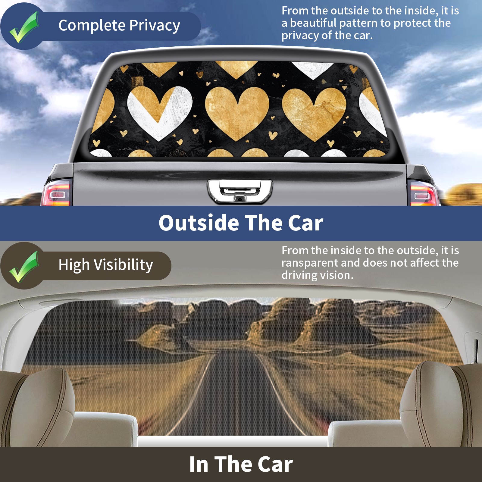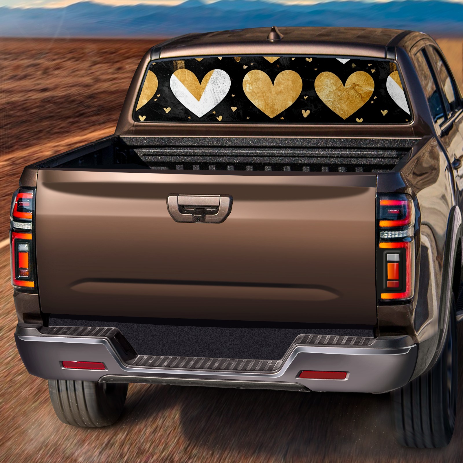 Truck Rear Window Graphics Decals Pickup Trucks Back Window Sticker Full Window Film Decal One Way Visual Waterproof Car Rear Tint White Gold Hearts (2)