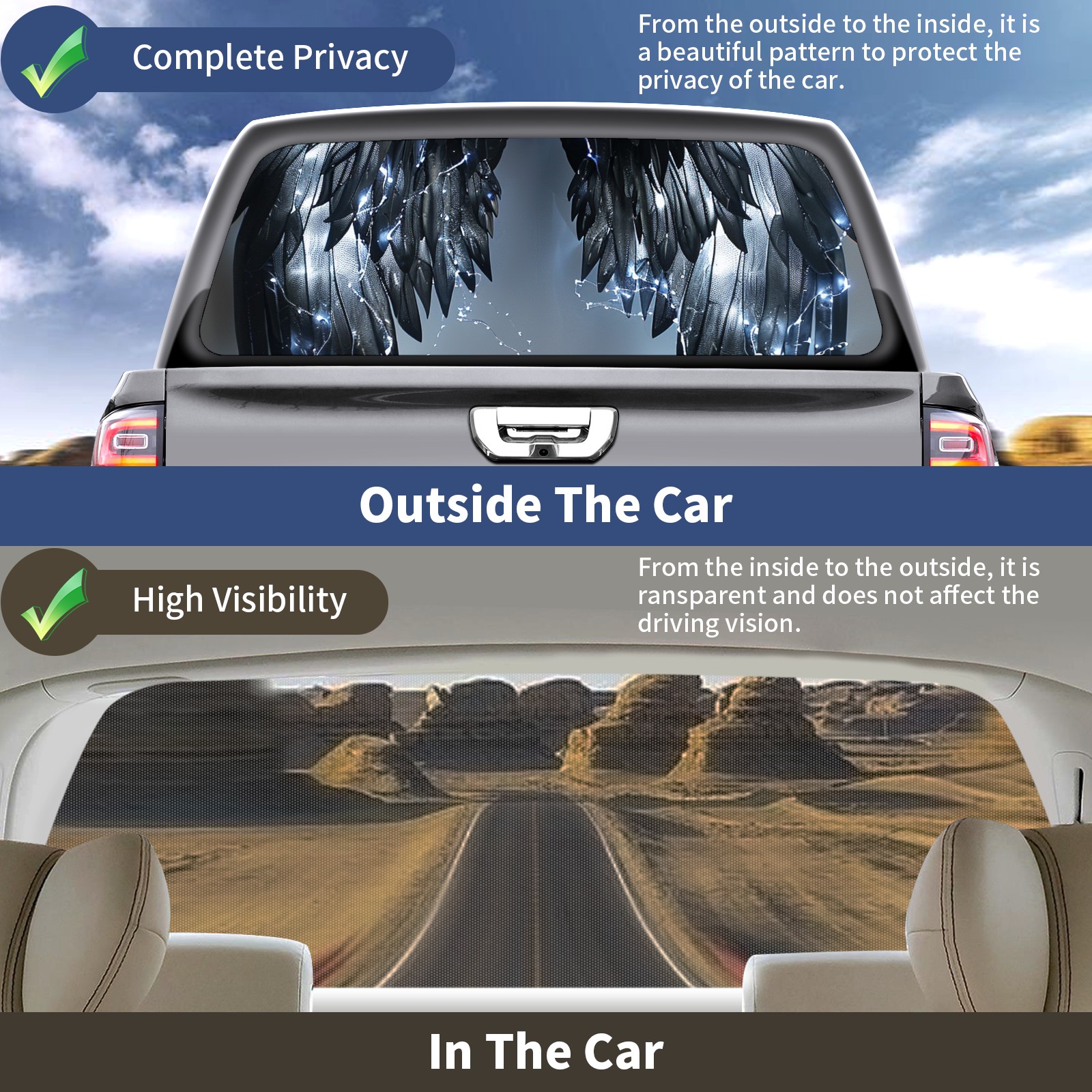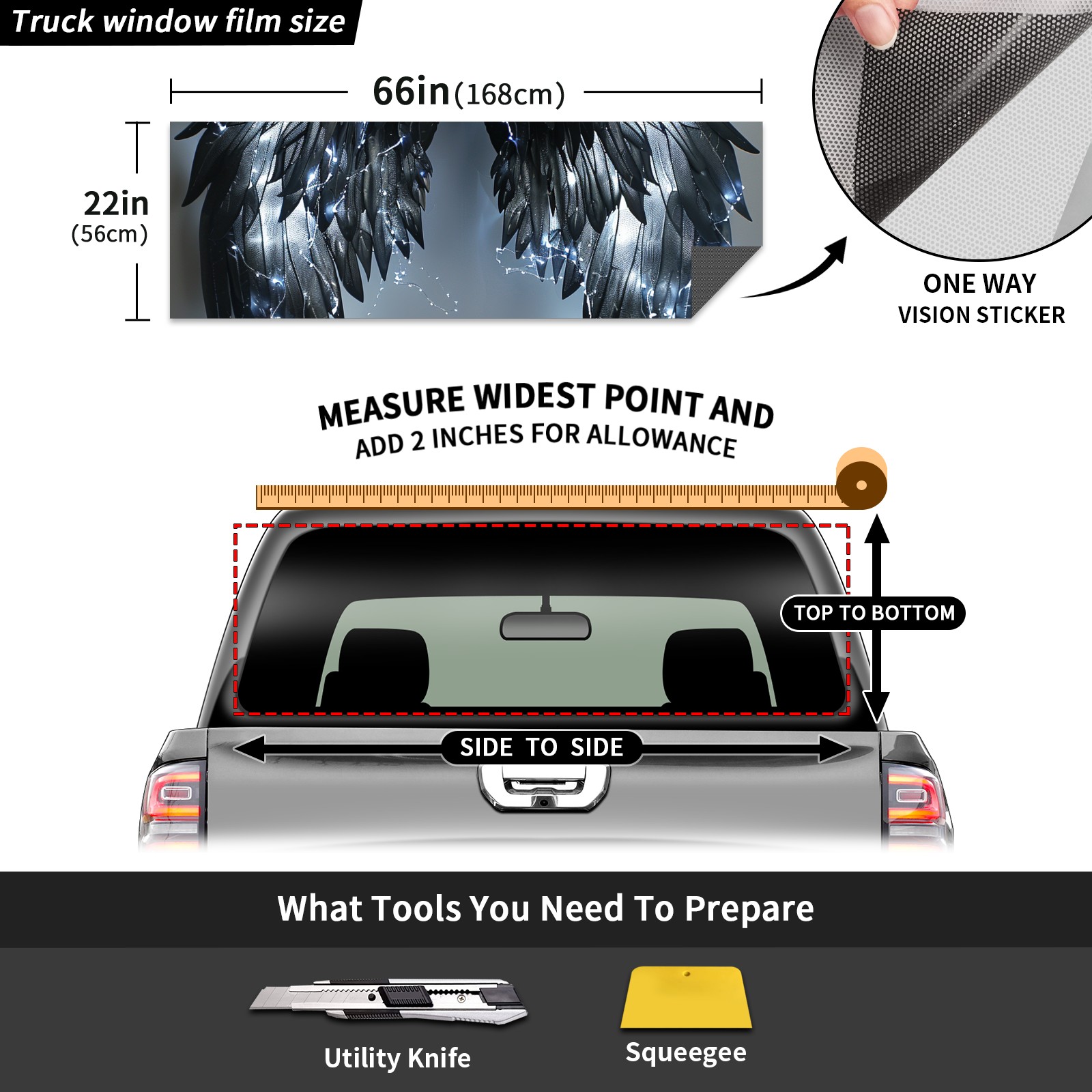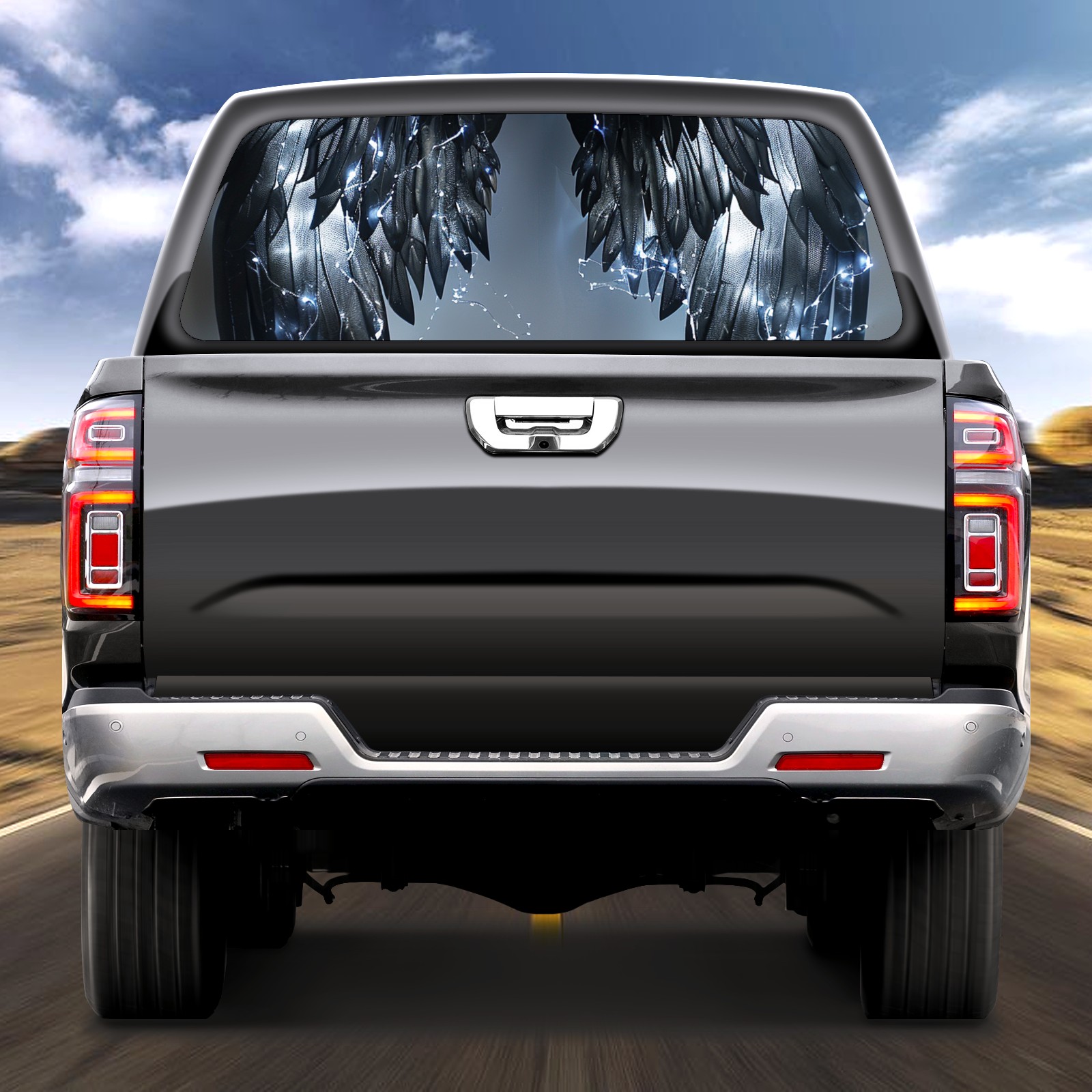 Truck Rear Window Graphics Decals Pickup Trucks Back Window Sticker Full Window Film Decal One Way Visual Waterproof Car Rear Tint Feathers (4)