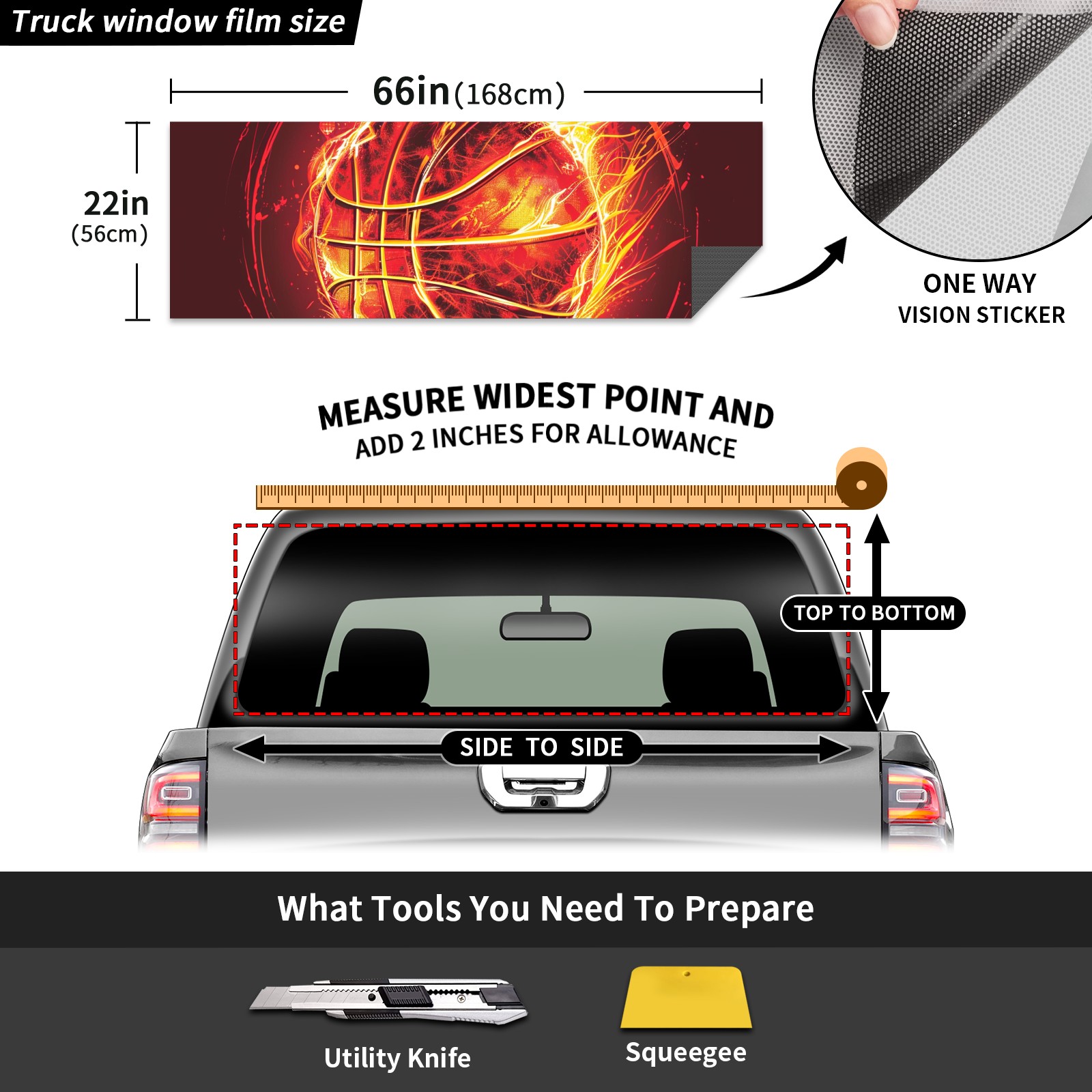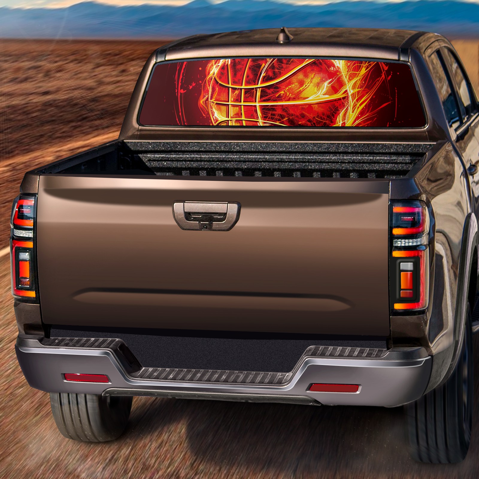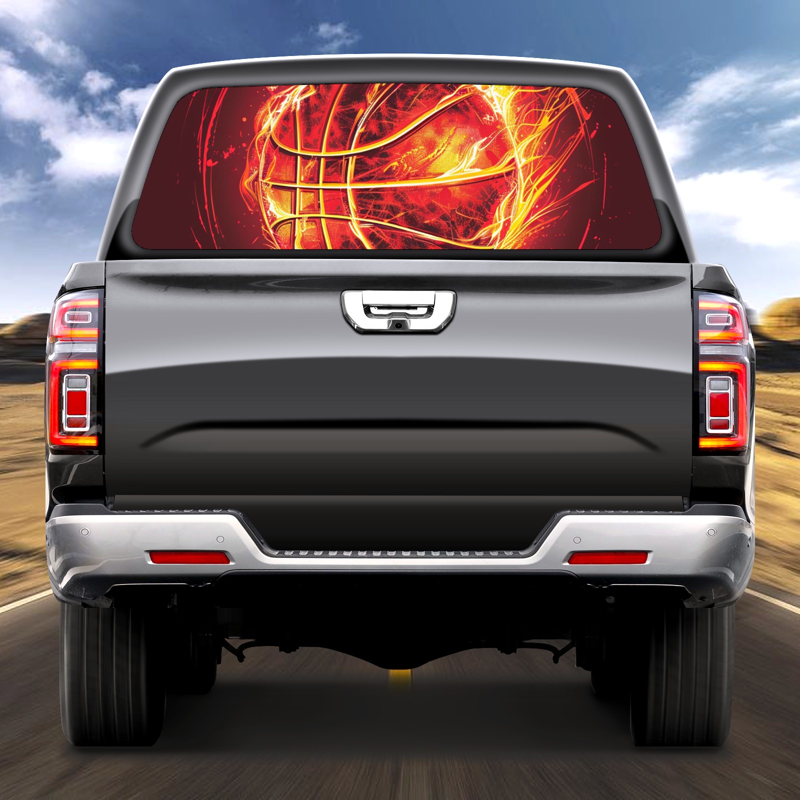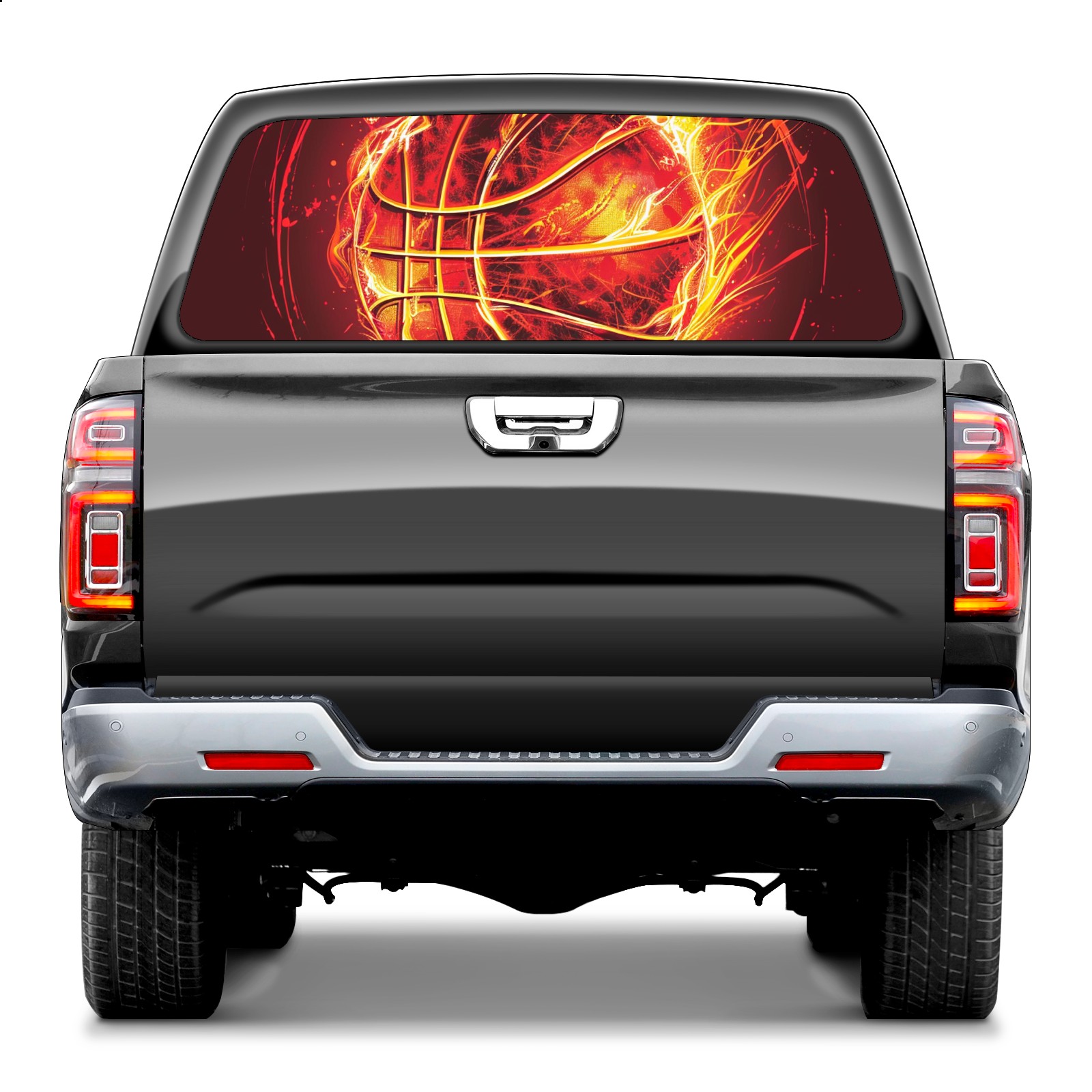 Truck Rear Window Graphics Decals Pickup Trucks Back Window Sticker Full Window Film Decal One Way Visual Waterproof Car Rear Tint Fire Ball (3)