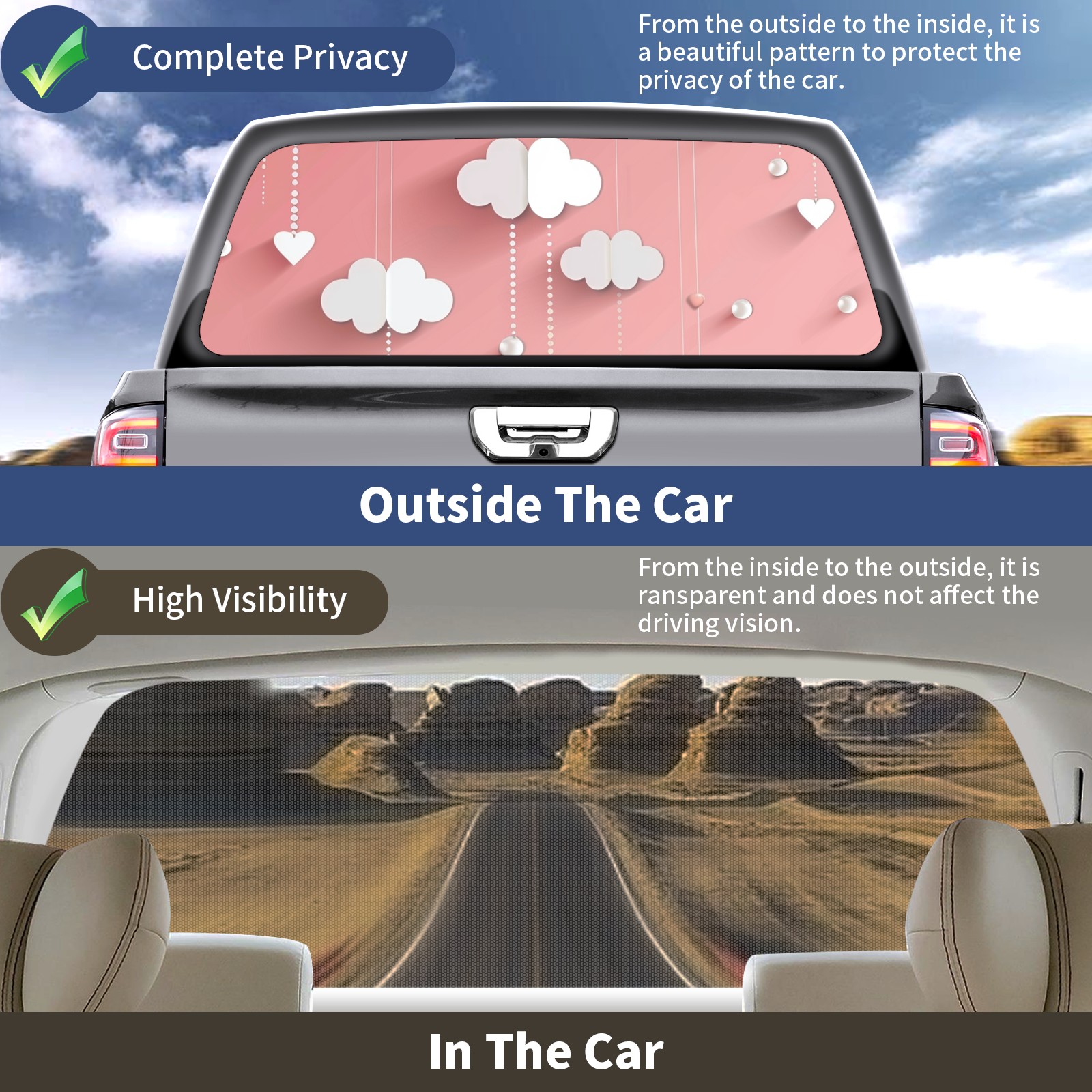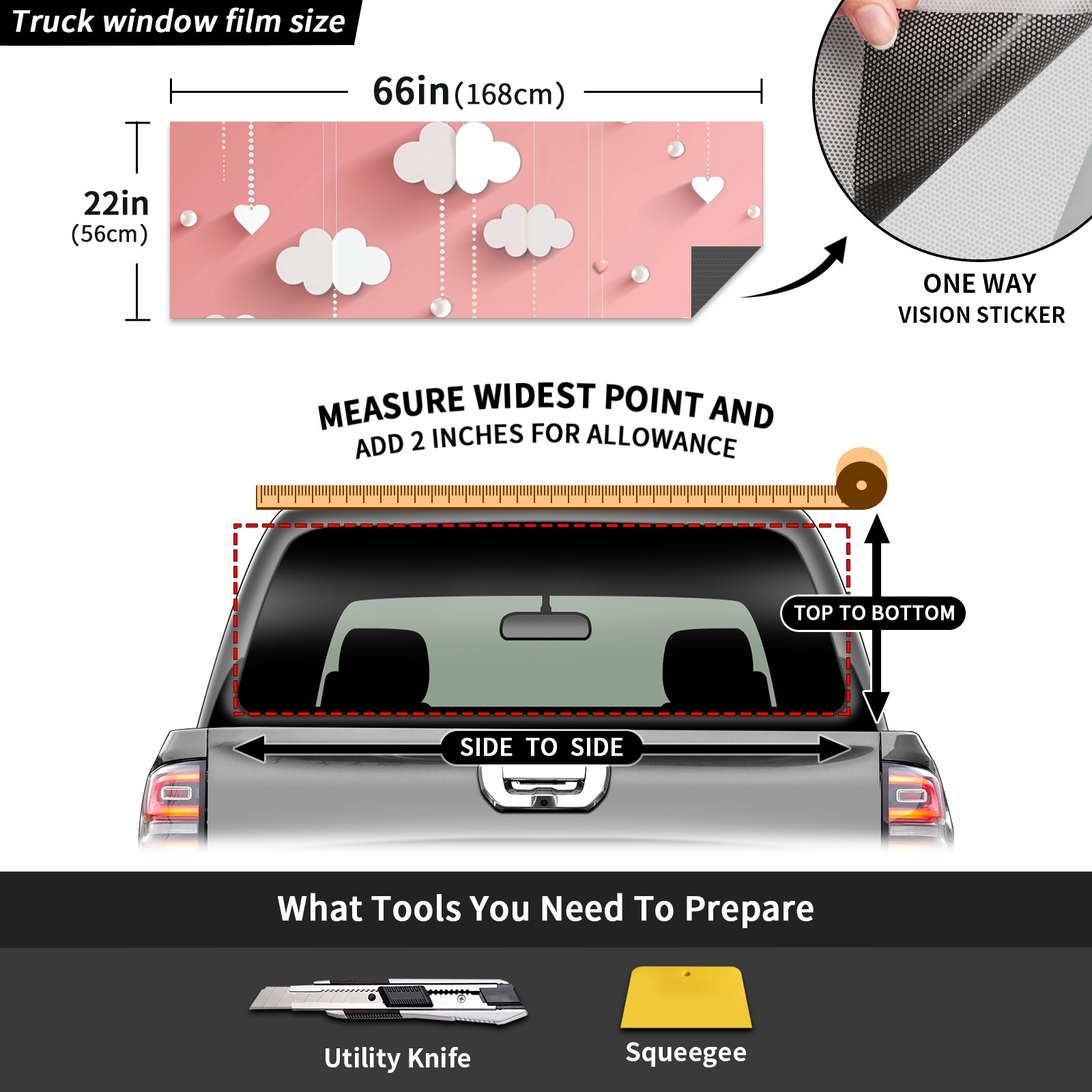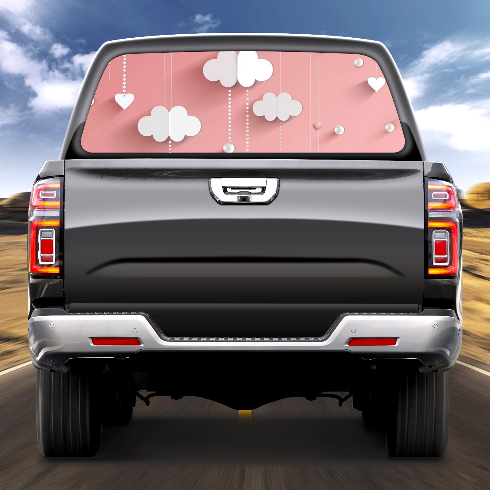 Truck Rear Window Graphics Decals Pickup Trucks Back Window Sticker Full Window Film Decal One Way Visual Waterproof Car Rear Tint Clouds And Hearts (4)