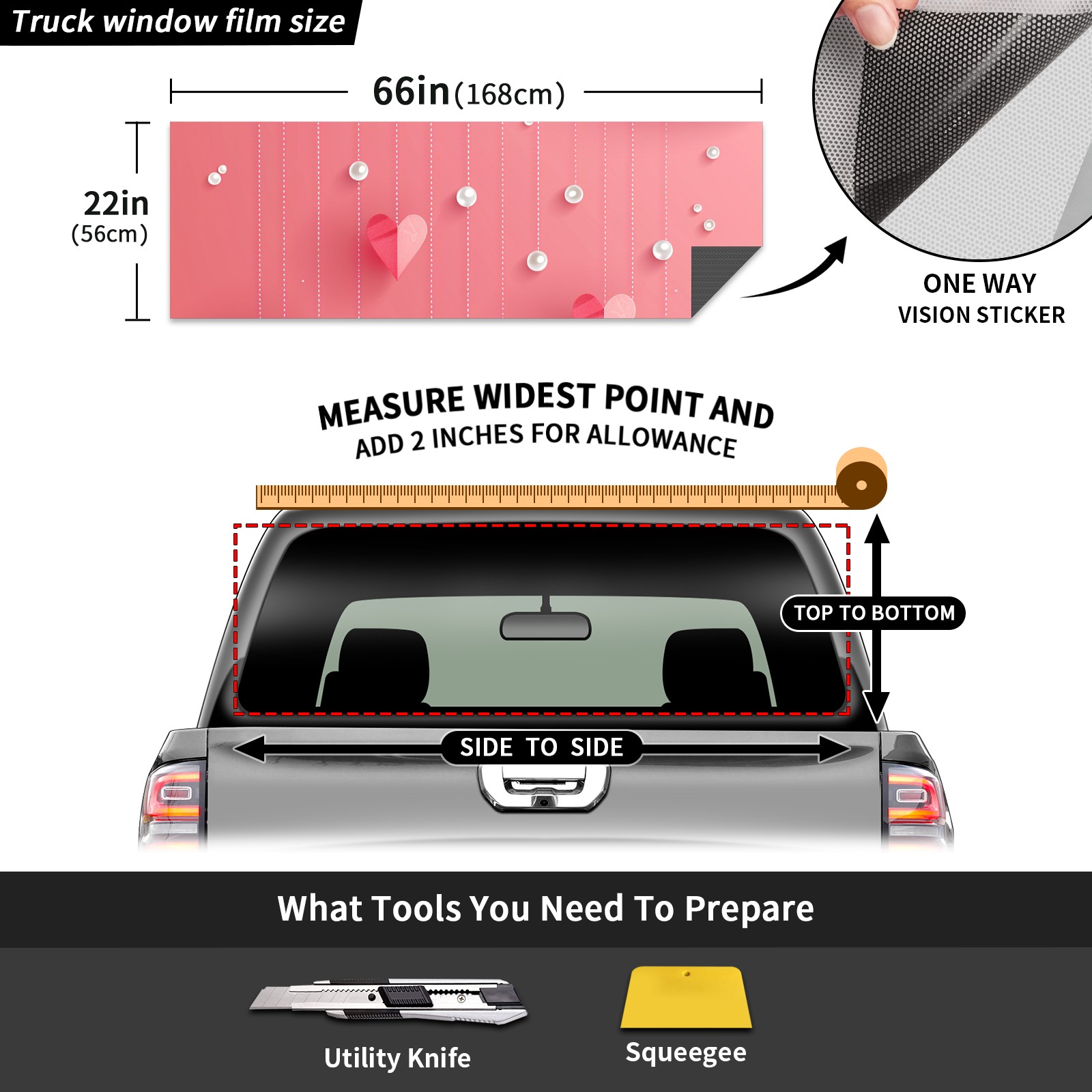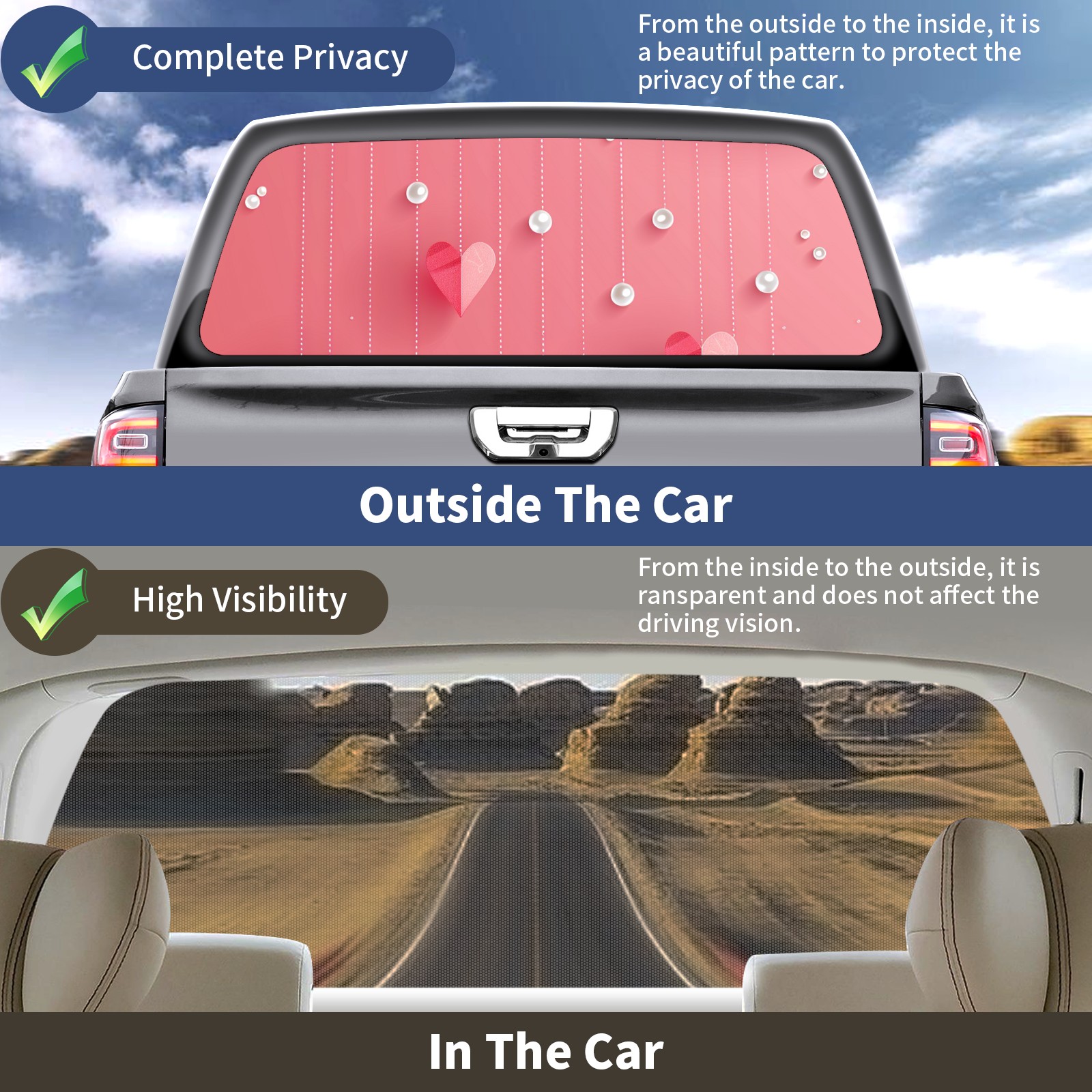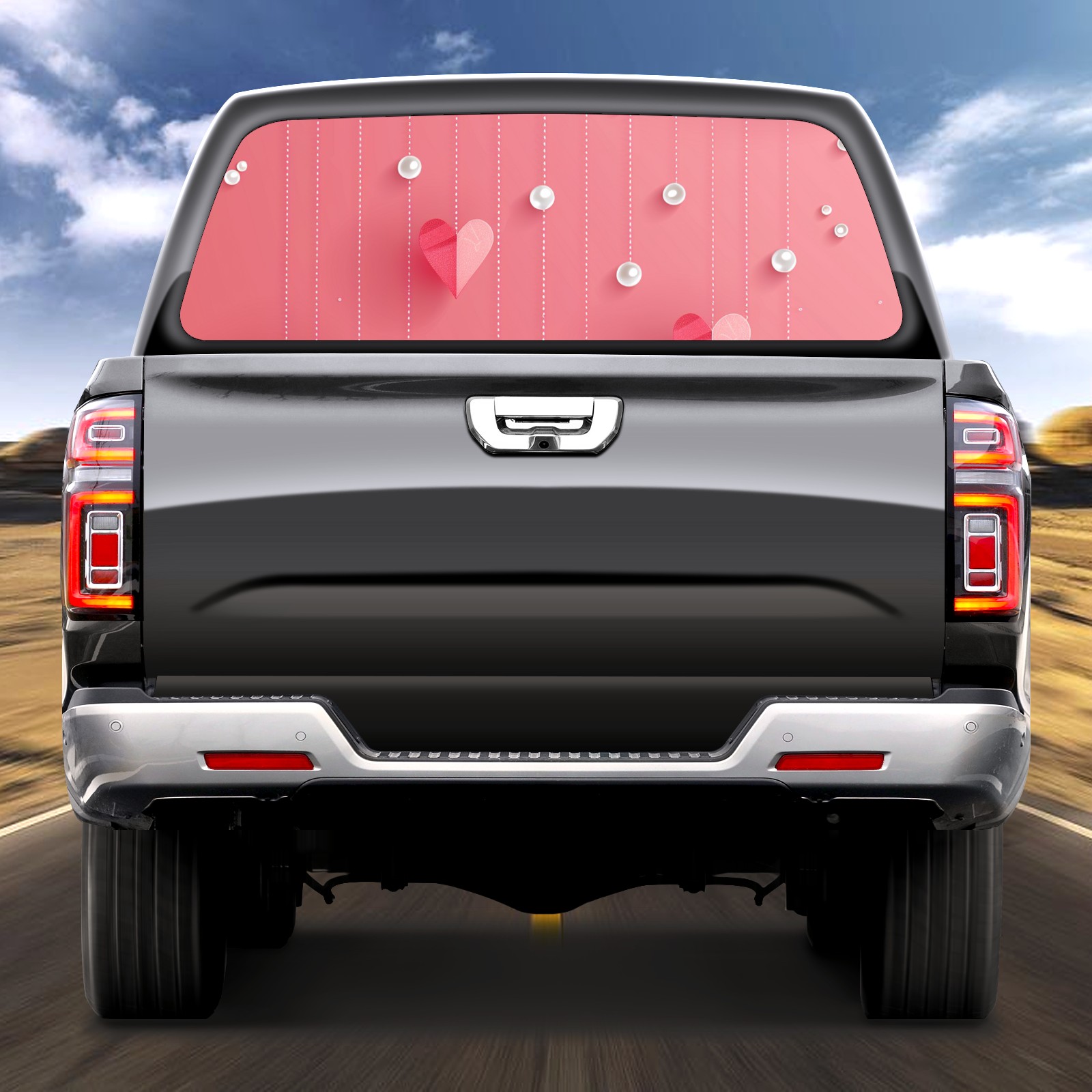 Truck Rear Window Graphics Decals Pickup Trucks Back Window Sticker Full Window Film Decal One Way Visual Waterproof Car Rear Tint Clouds And Hearts (1)