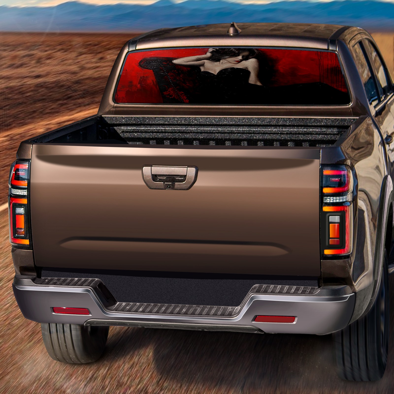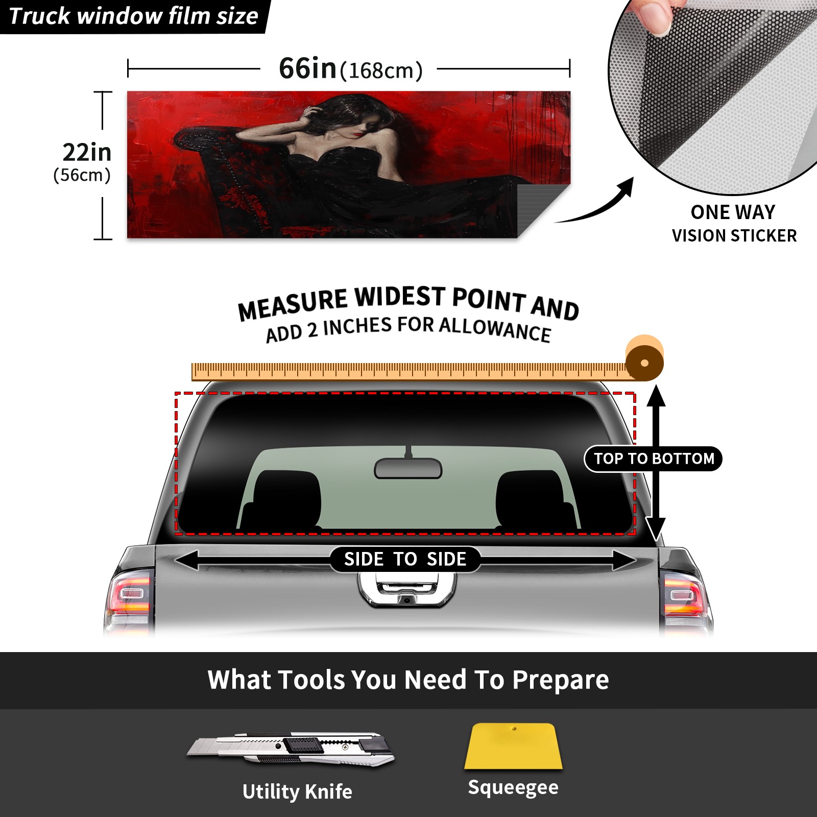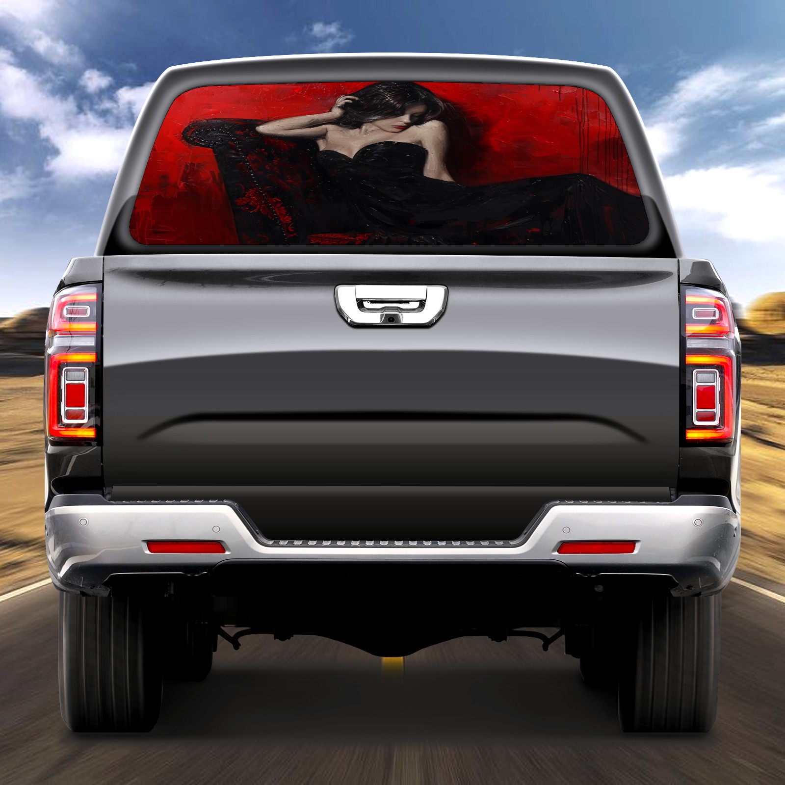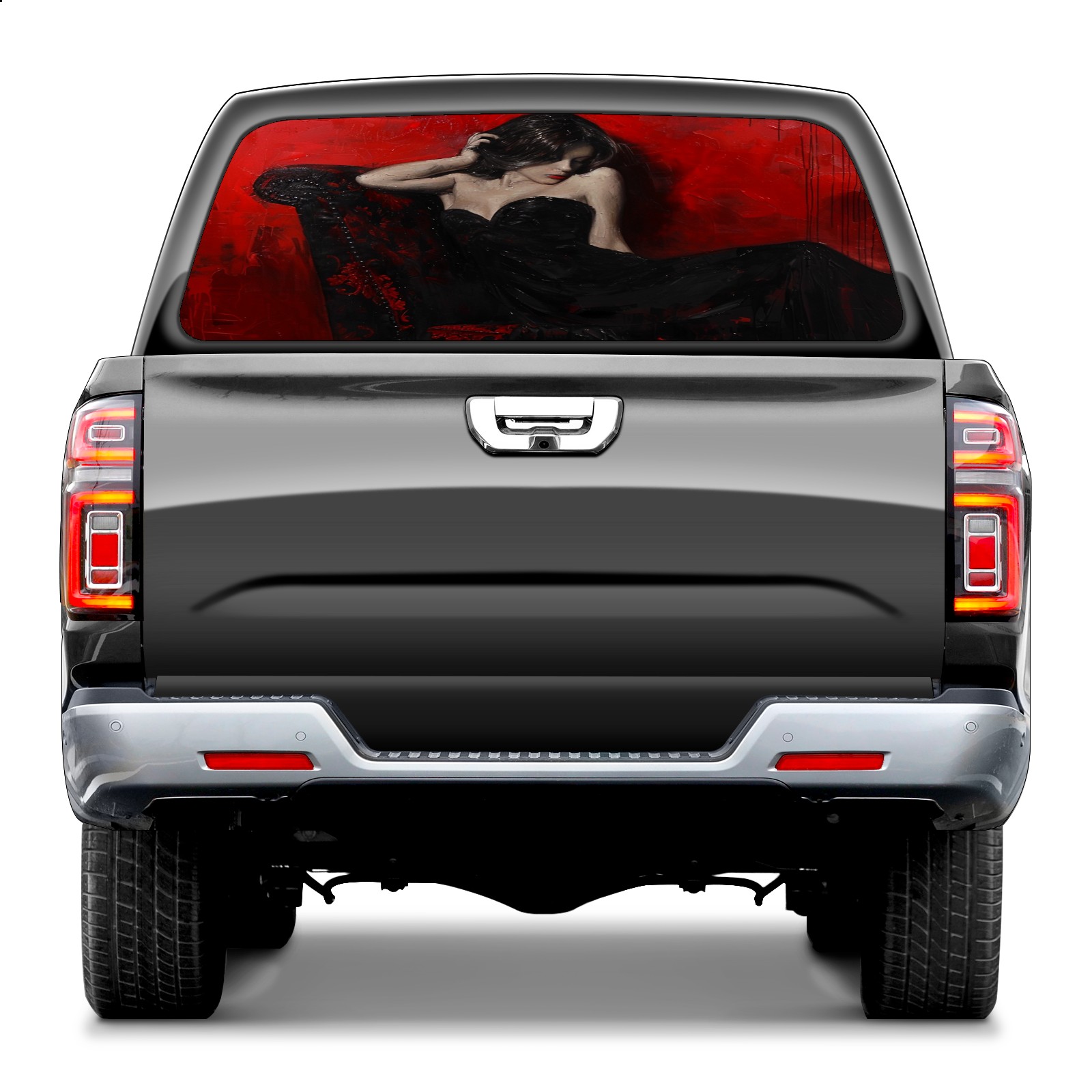 Truck Rear Window Graphics Decals Pickup Trucks Back Window Sticker Full Window Film Decal One Way Visual Waterproof Car Rear Tint BlackandRed (2)
