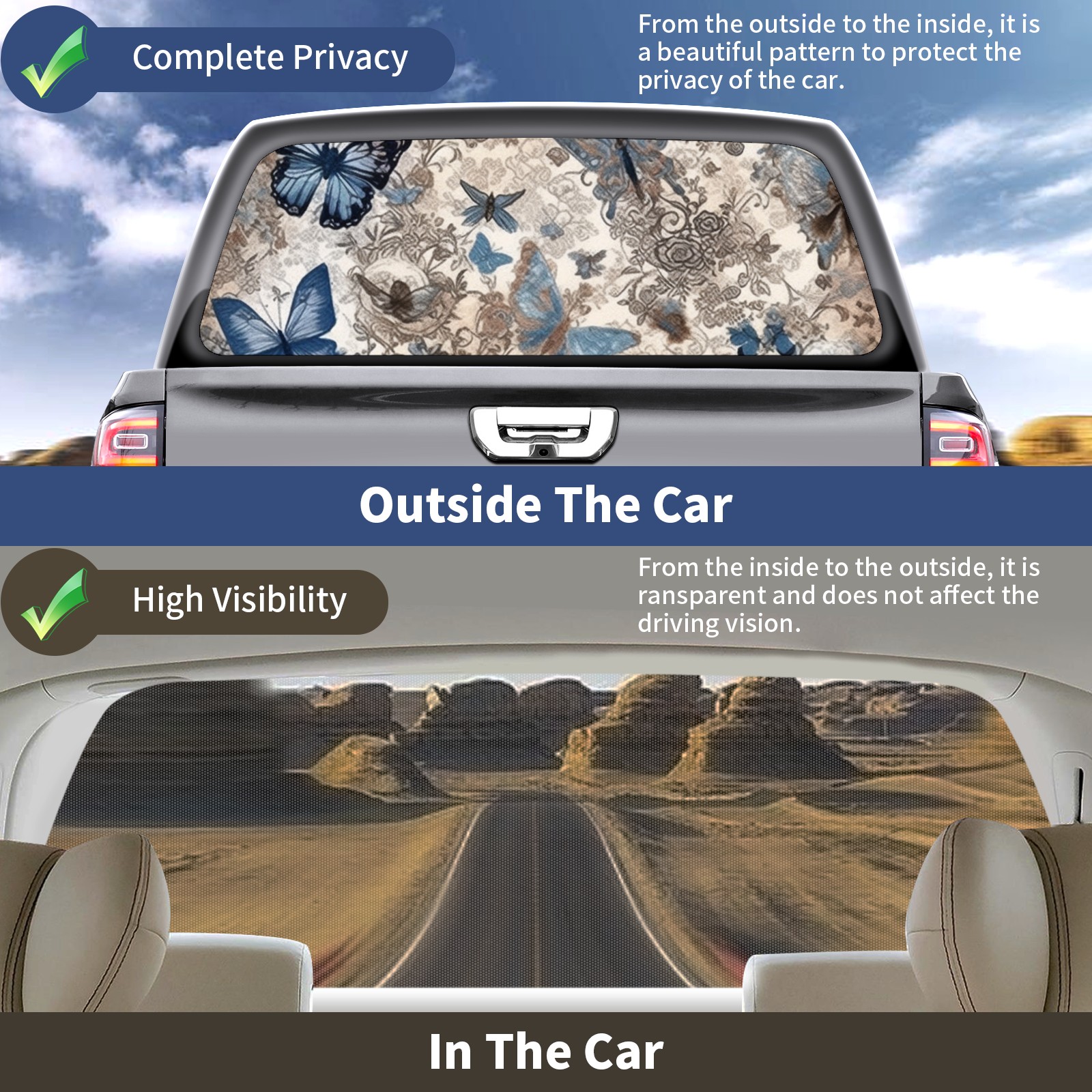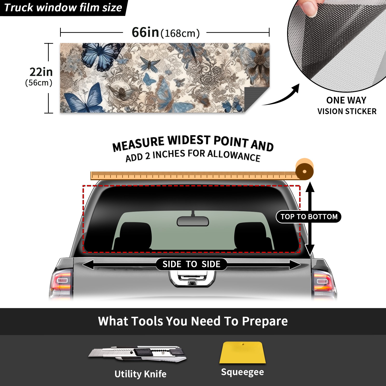 Truck Rear Window Graphics Decals Pickup Trucks Back Window Sticker Full Window Film Decal One Way Visual Waterproof Car Rear Tint Vintage Butterfly (2)