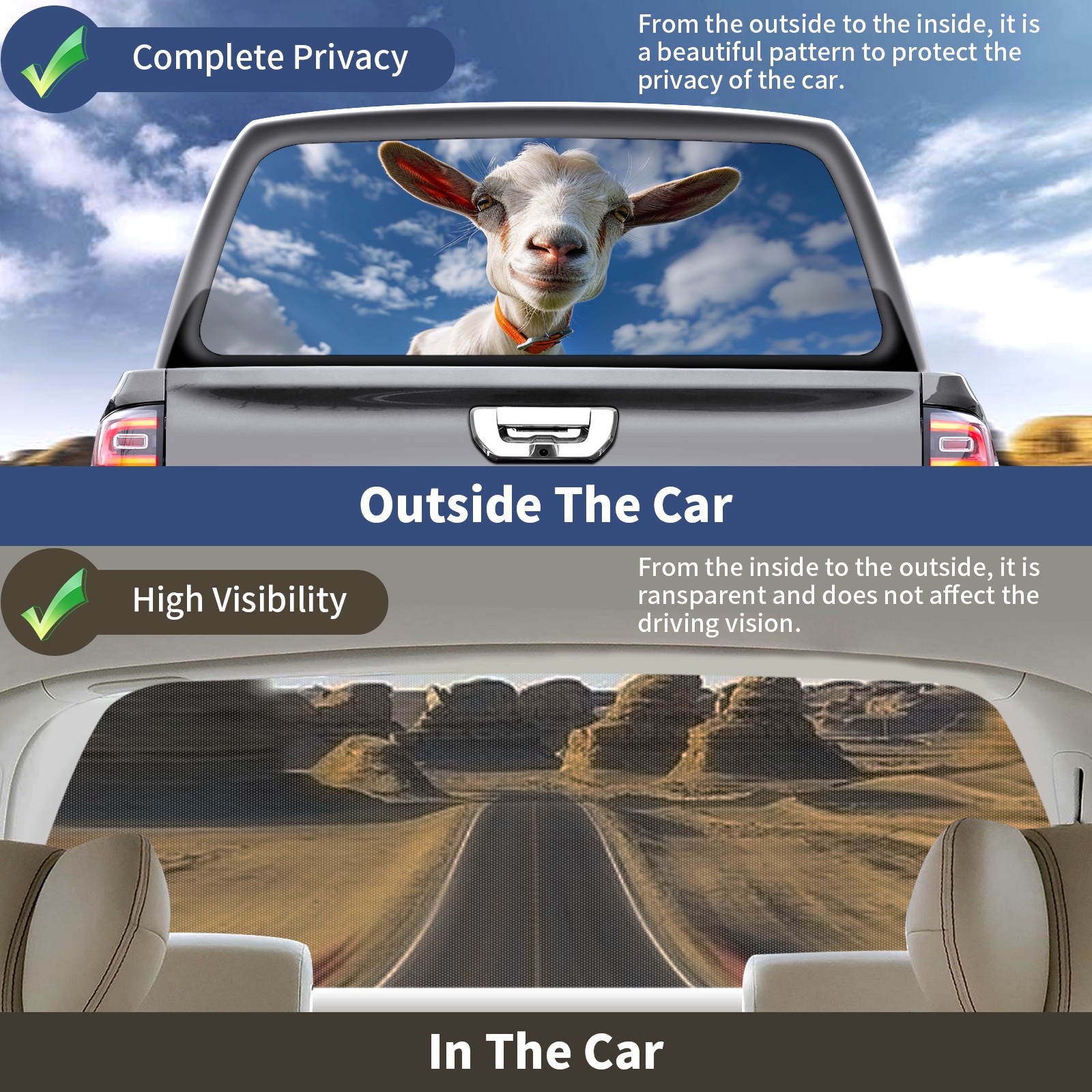 Truck Rear Window Graphics Decals Pickup Trucks Back Window Sticker Full Window Film Decal One Way Visual Waterproof Car Rear Tint Goat_ (3)