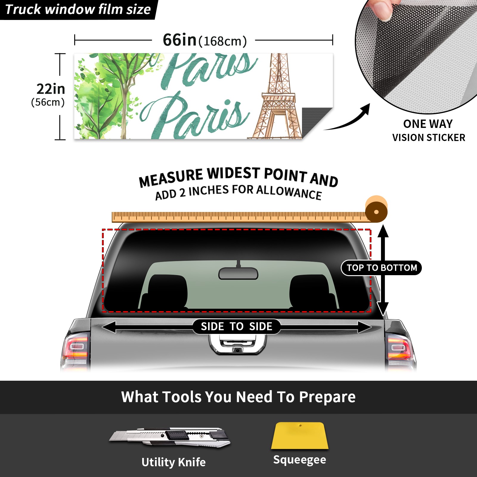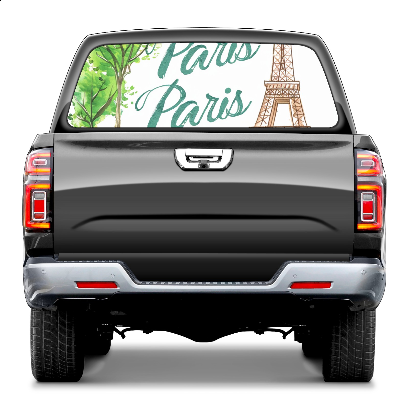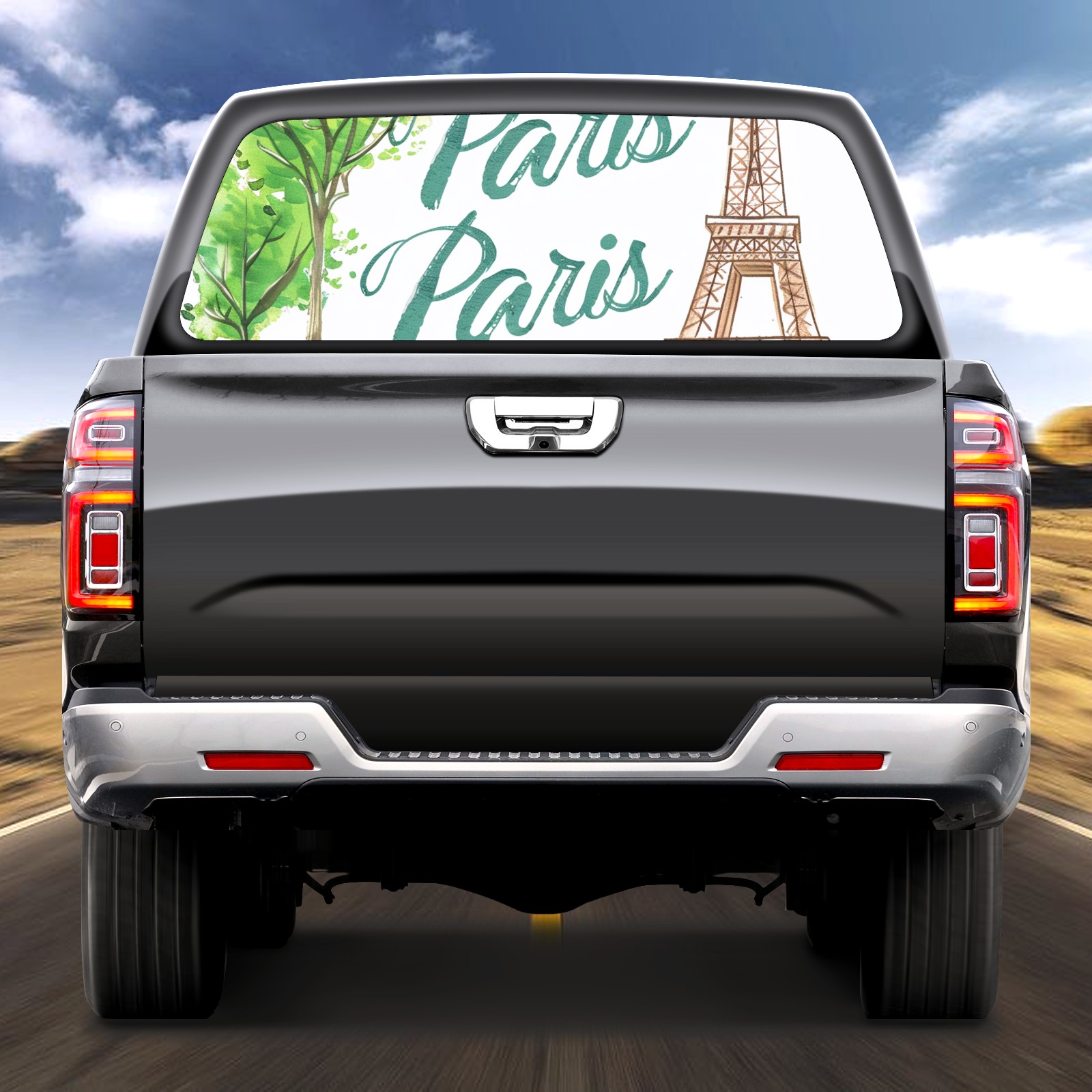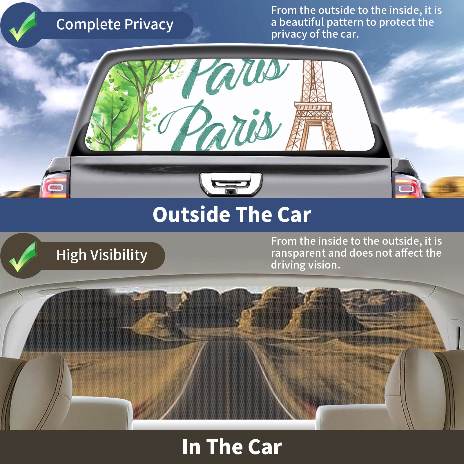 Truck Rear Window Graphics Decals Pickup Trucks Back Window Sticker Full Window Film Decal One Way Visual Waterproof Car Rear Tint Eiffel Tower (1)