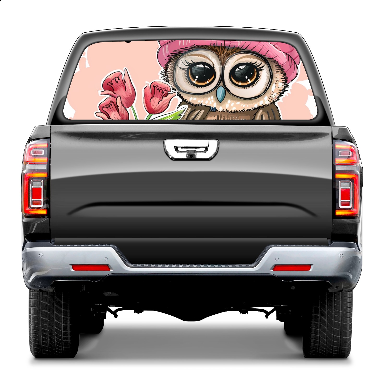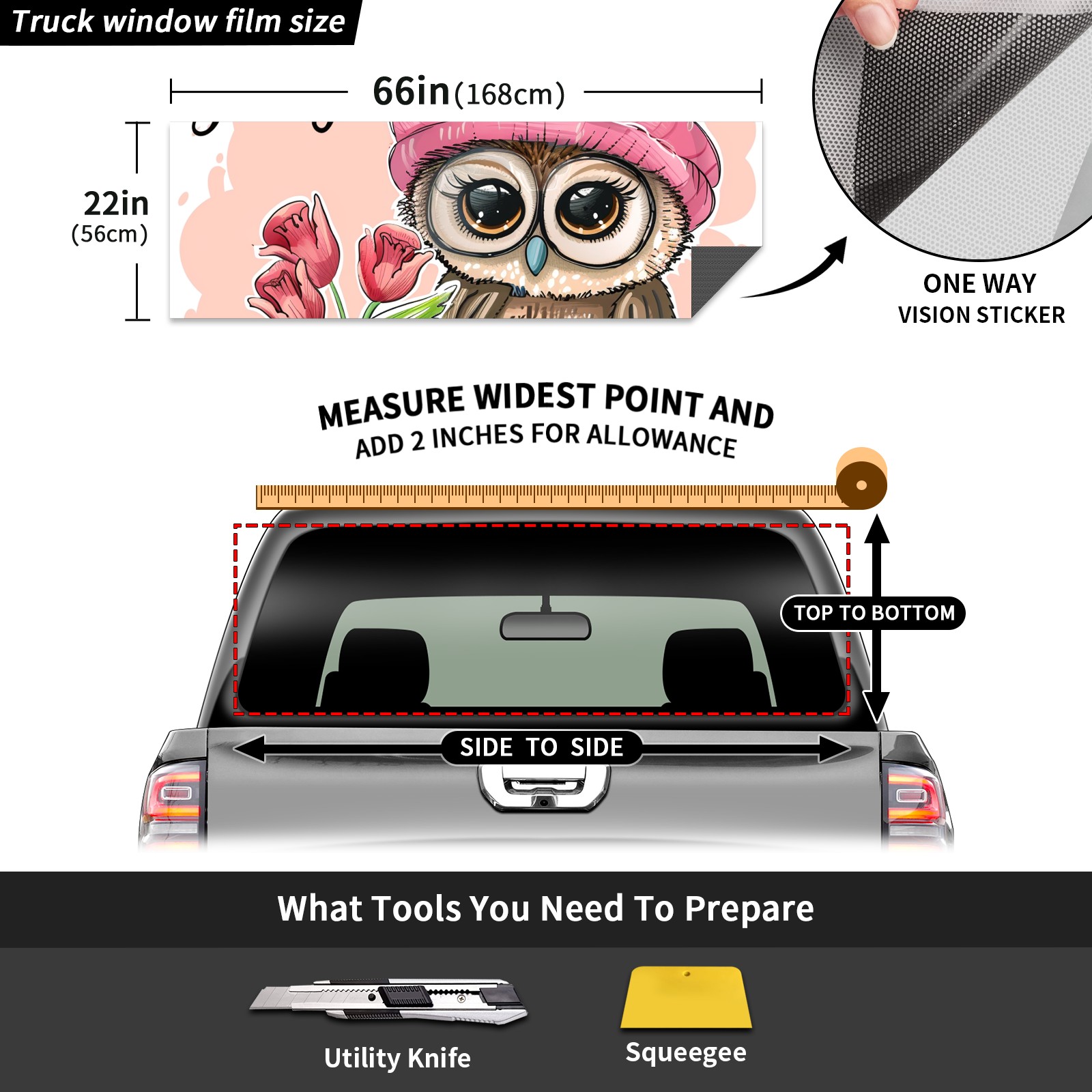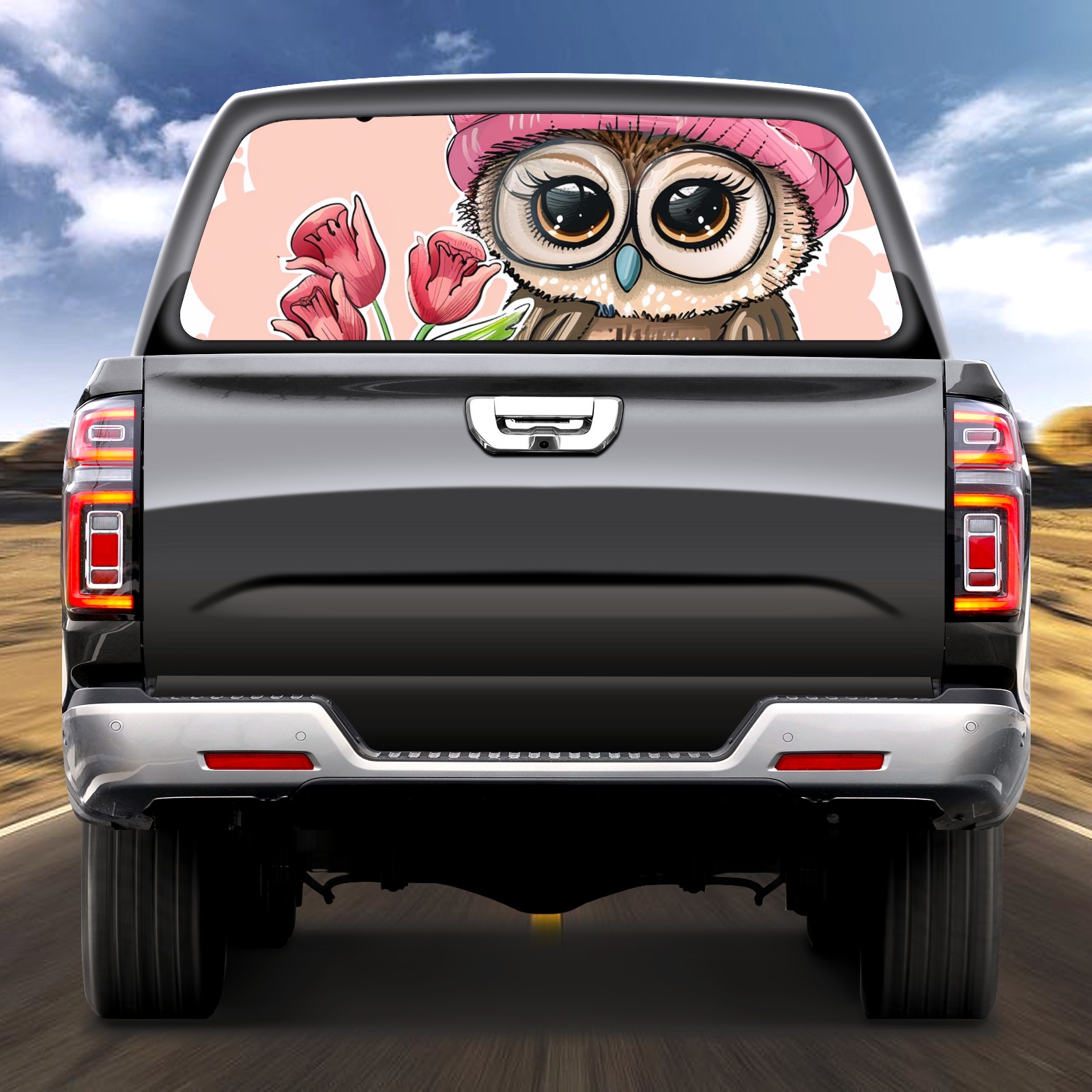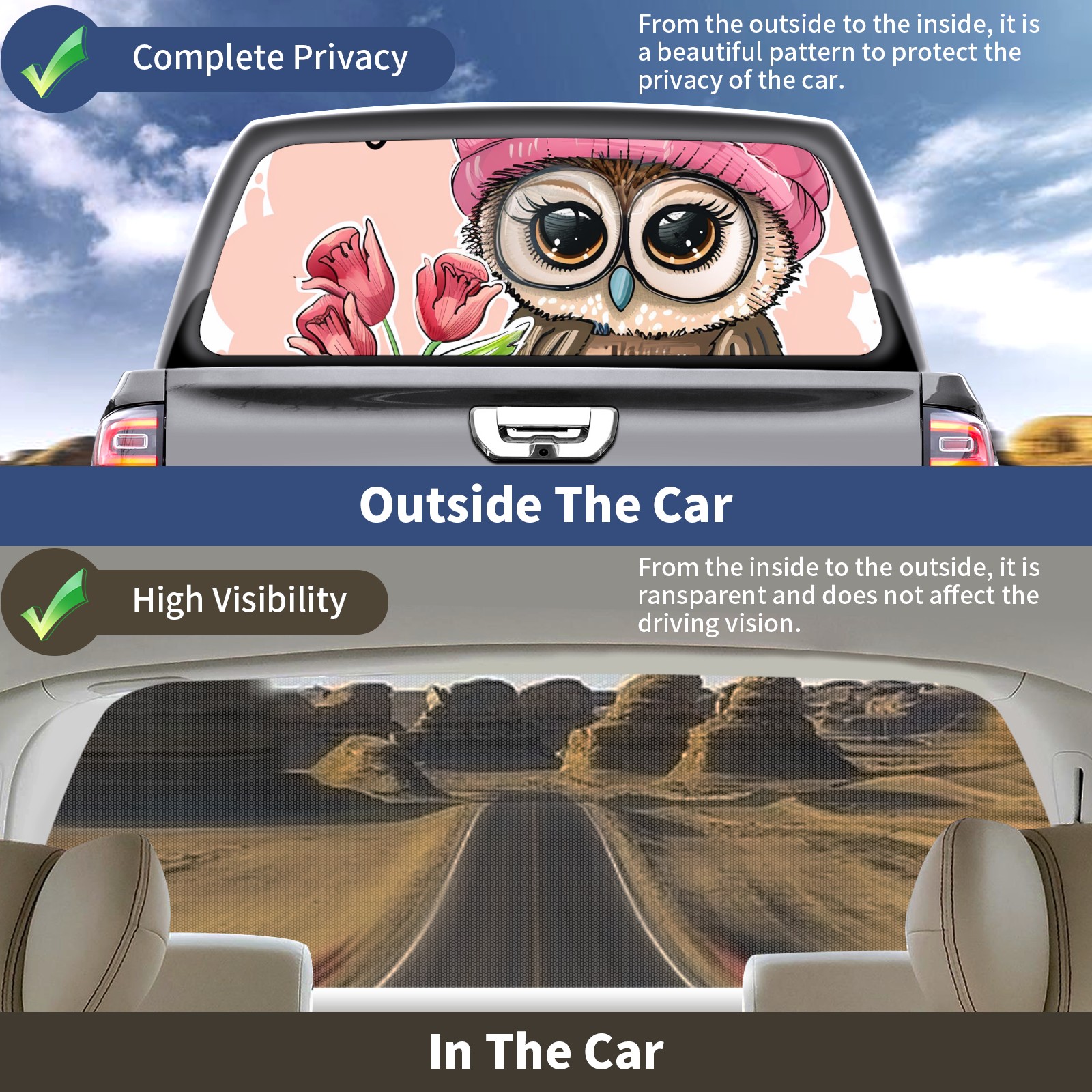 Truck Rear Window Graphics Decals Pickup Trucks Back Window Sticker Full Window Film Decal One Way Visual Waterproof Car Rear Tint Cute Cartoon Owl (4)