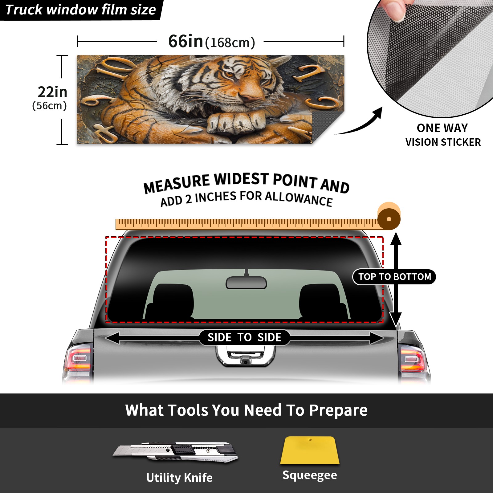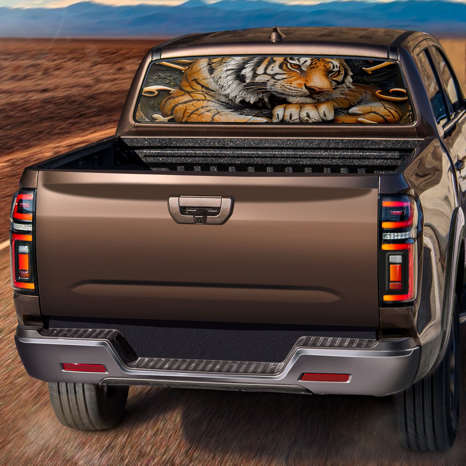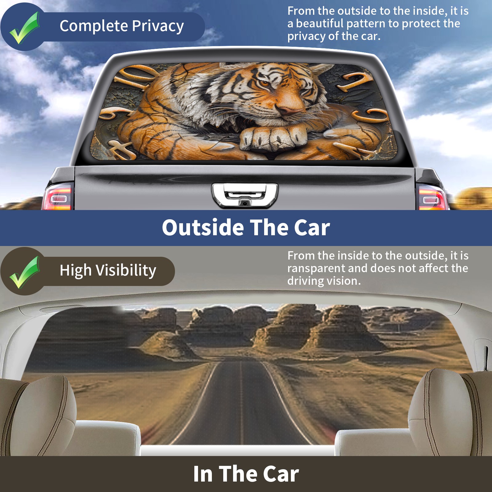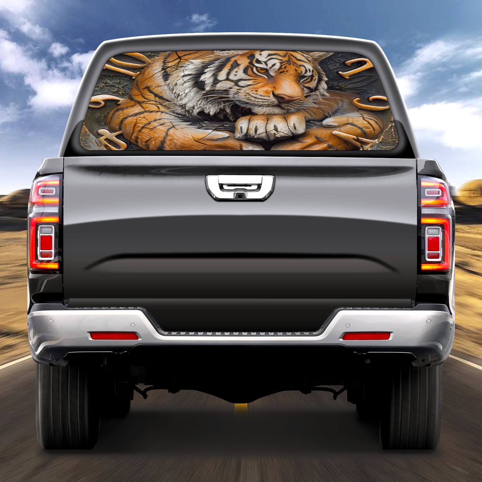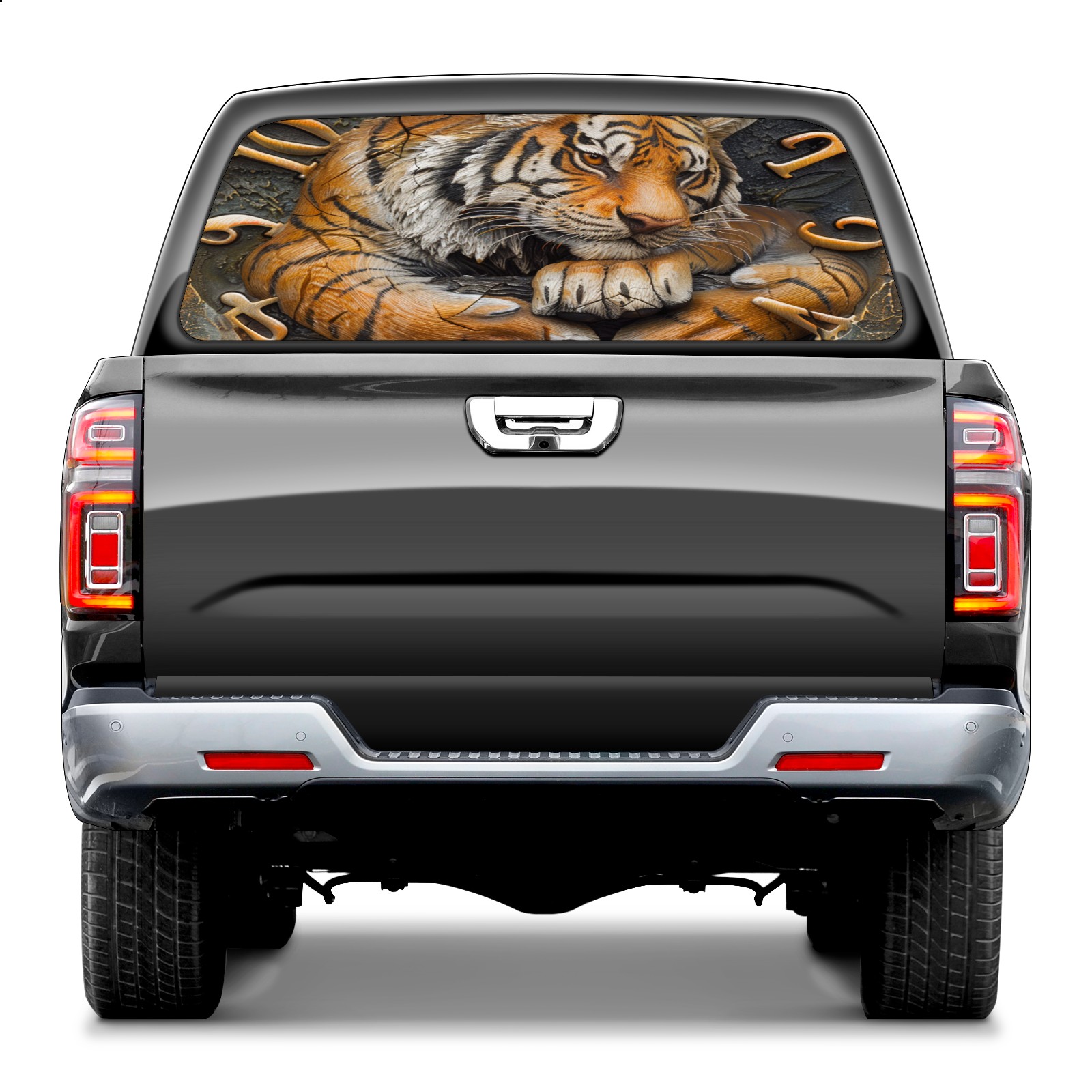 Truck Rear Window Graphics Decals Pickup Trucks Back Window Sticker Full Window Film Decal One Way Visual Waterproof Car Rear Tint Clock With Tiger (3)