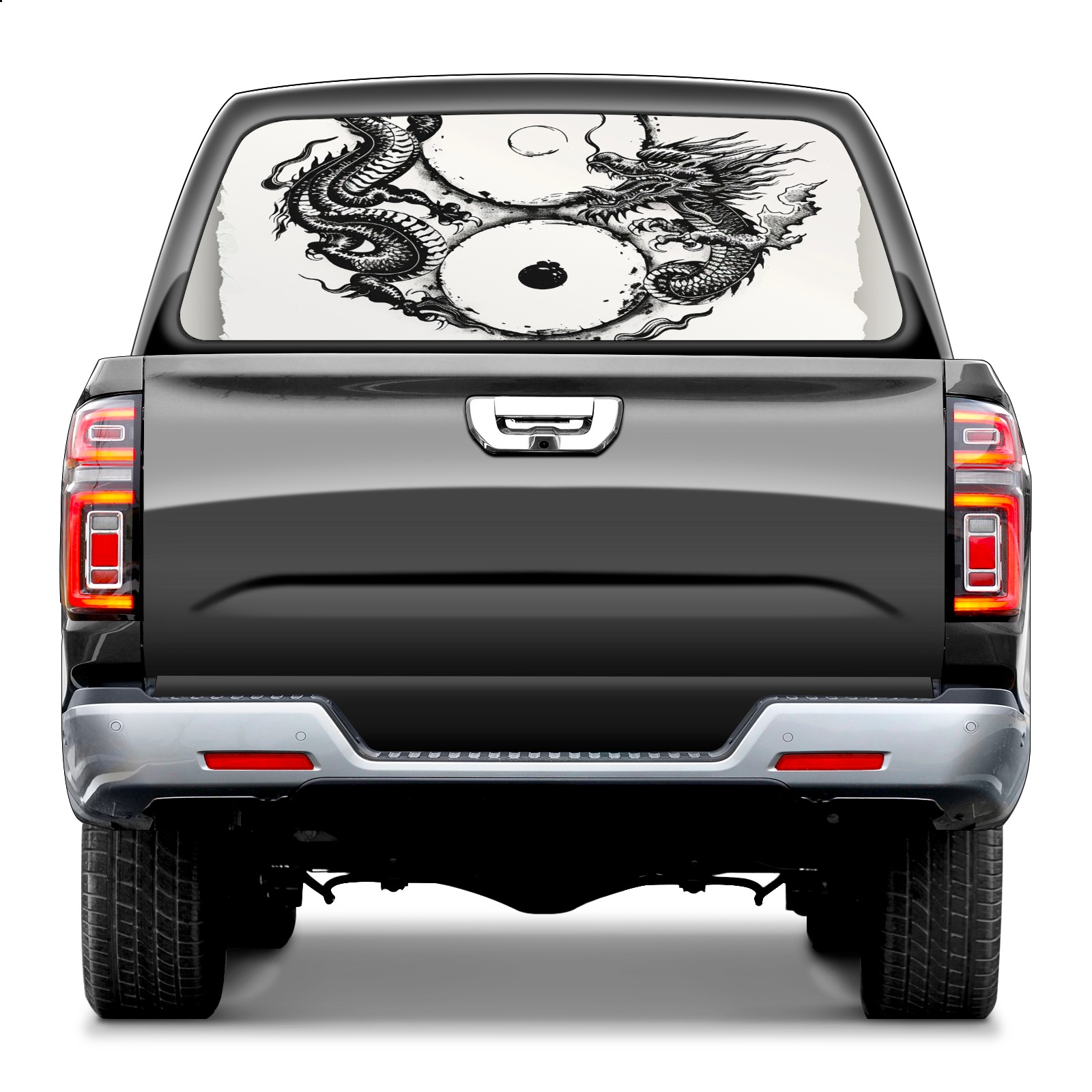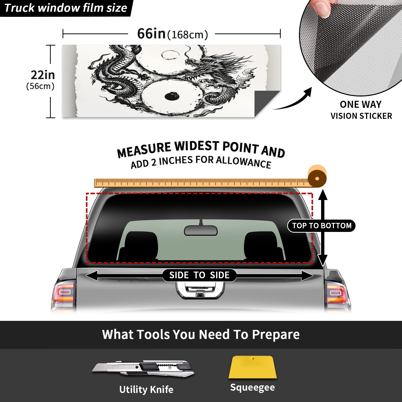 Truck Rear Window Graphics Decals Pickup Trucks Back Window Sticker Full Window Film Decal One Way Visual Waterproof Car Rear Tint Chinese Dragon (7)