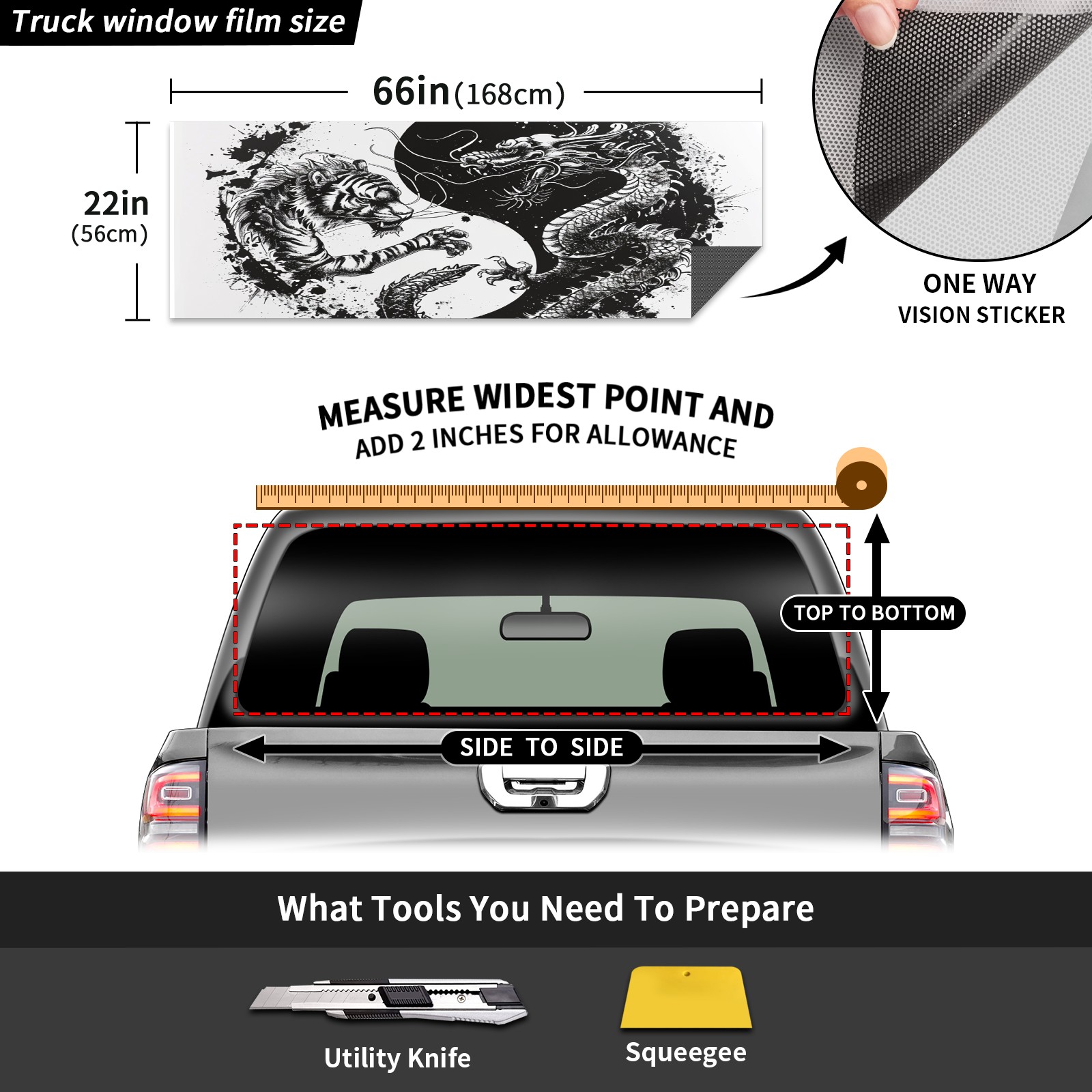 Truck Rear Window Graphics Decals Pickup Trucks Back Window Sticker Full Window Film Decal One Way Visual Waterproof Car Rear Tint Chinese Dragon (6)