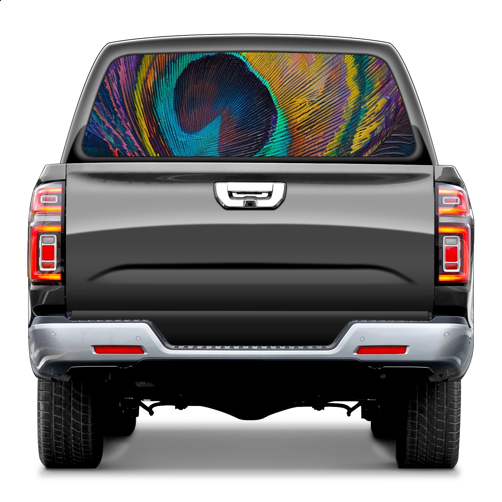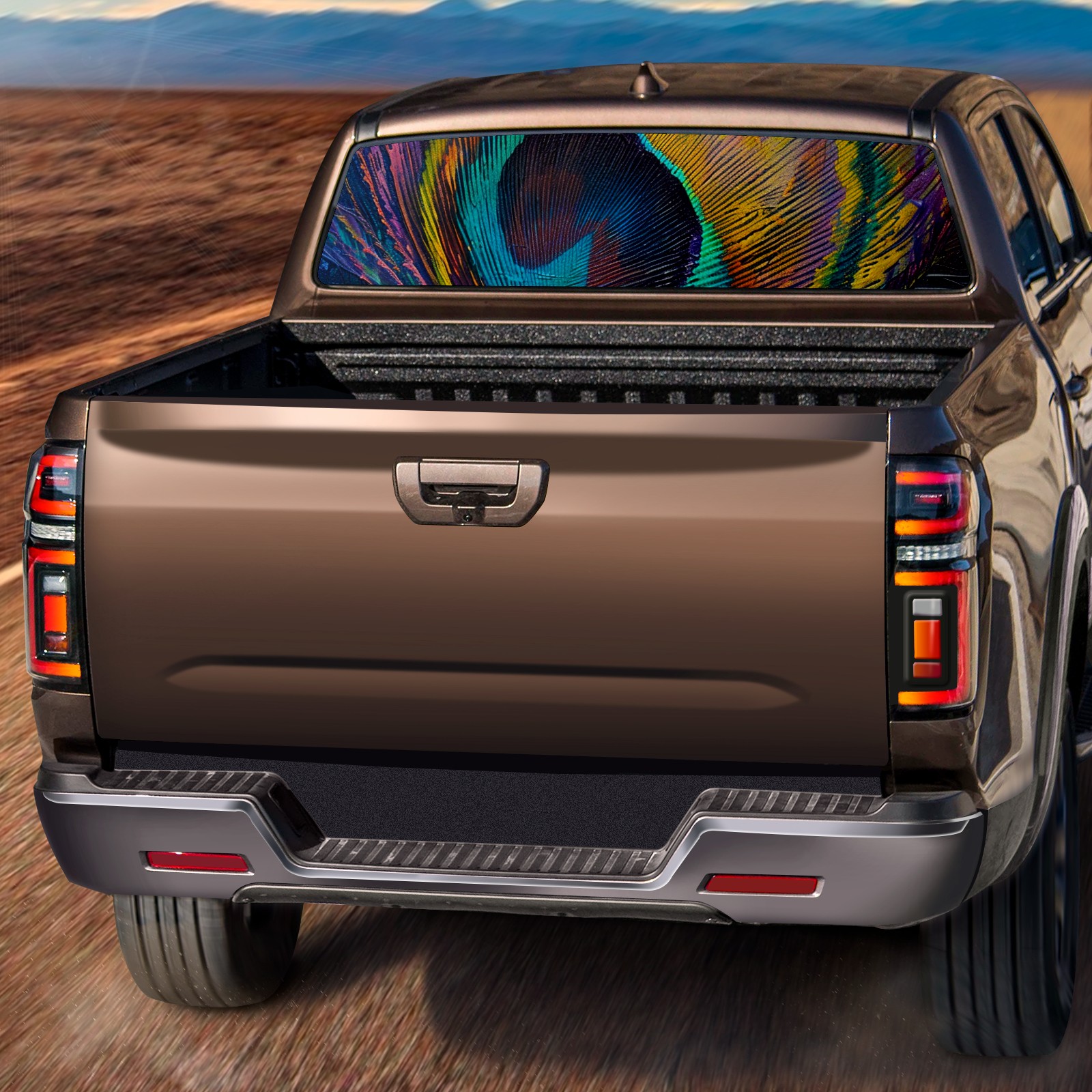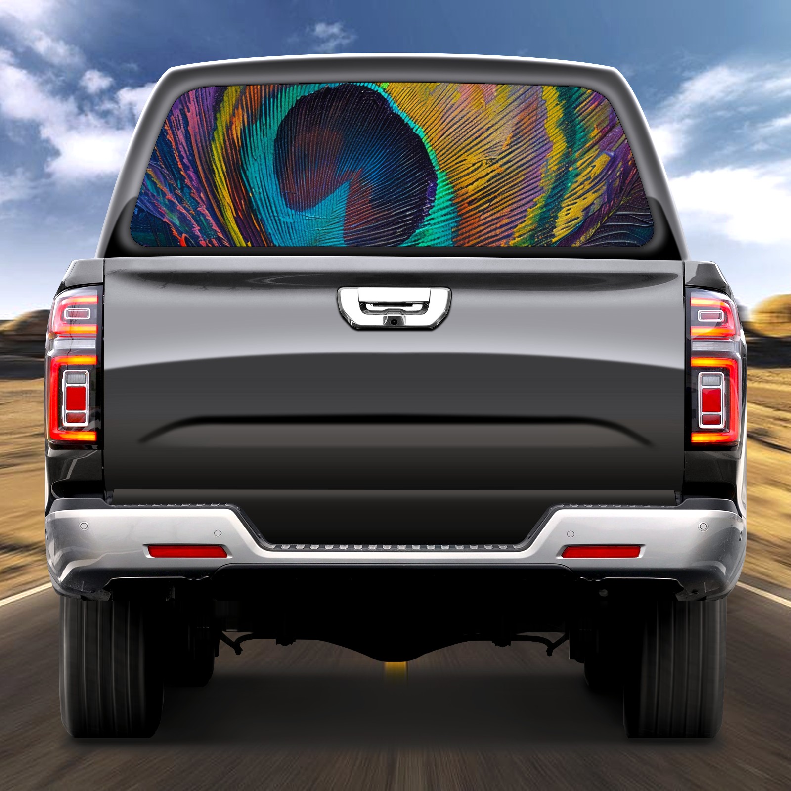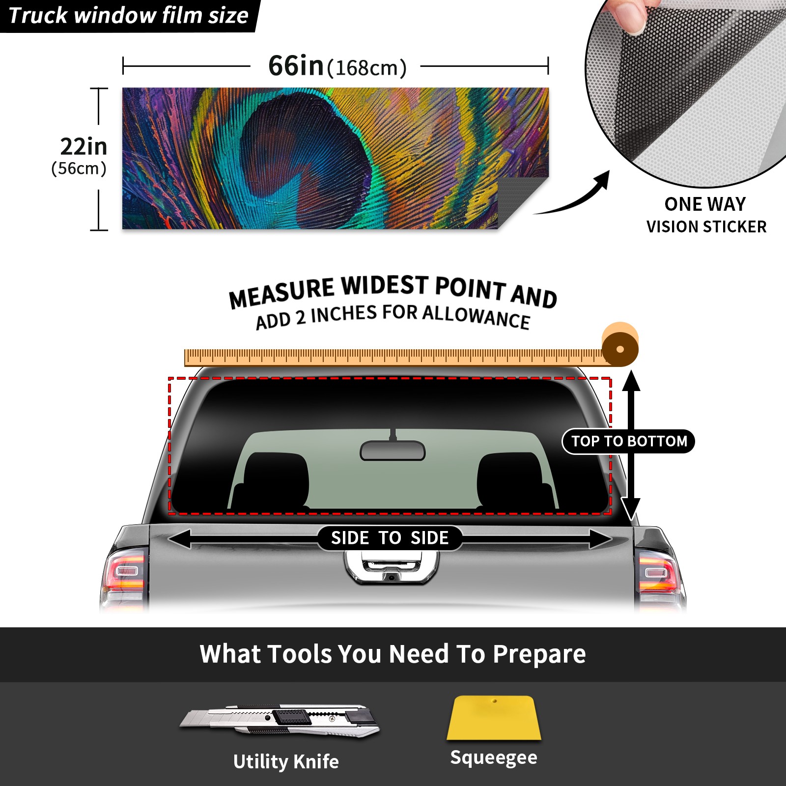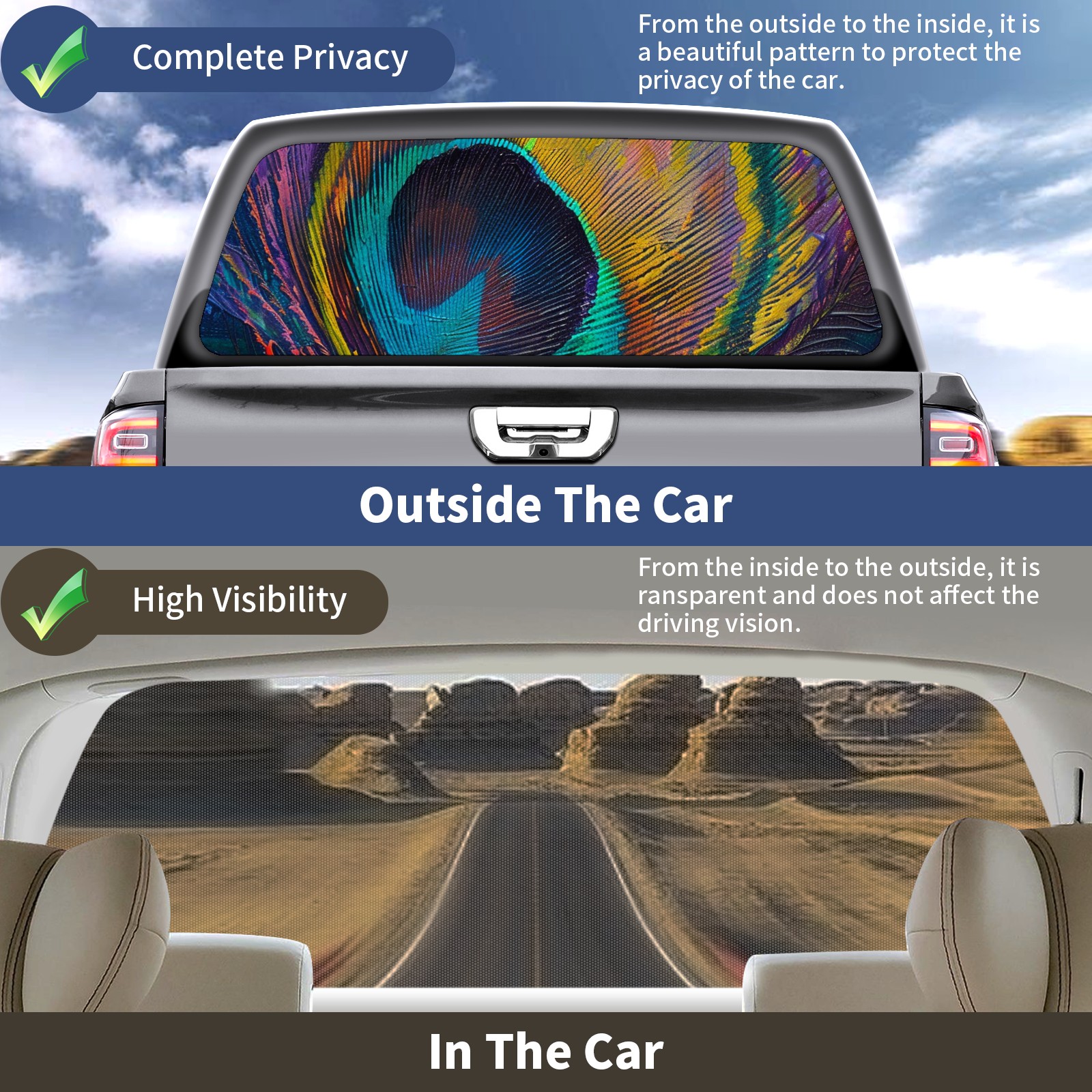 Truck Rear Window Graphics Decals Pickup Trucks Back Window Sticker Full Window Film Decal One Way Visual Waterproof Car Rear Tint Feather (1)