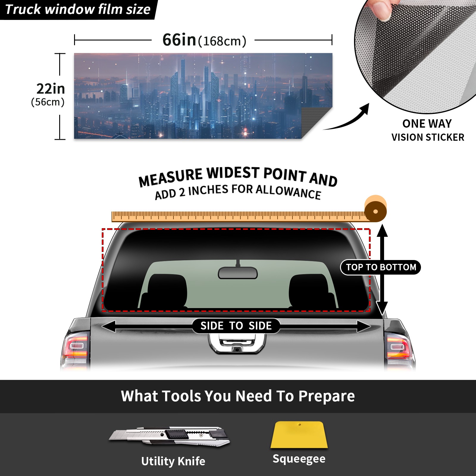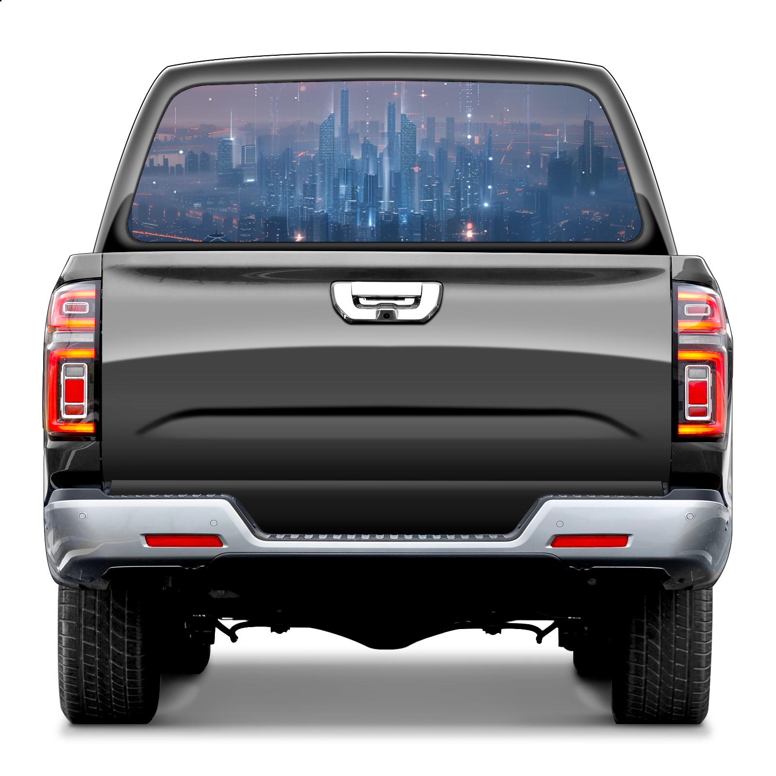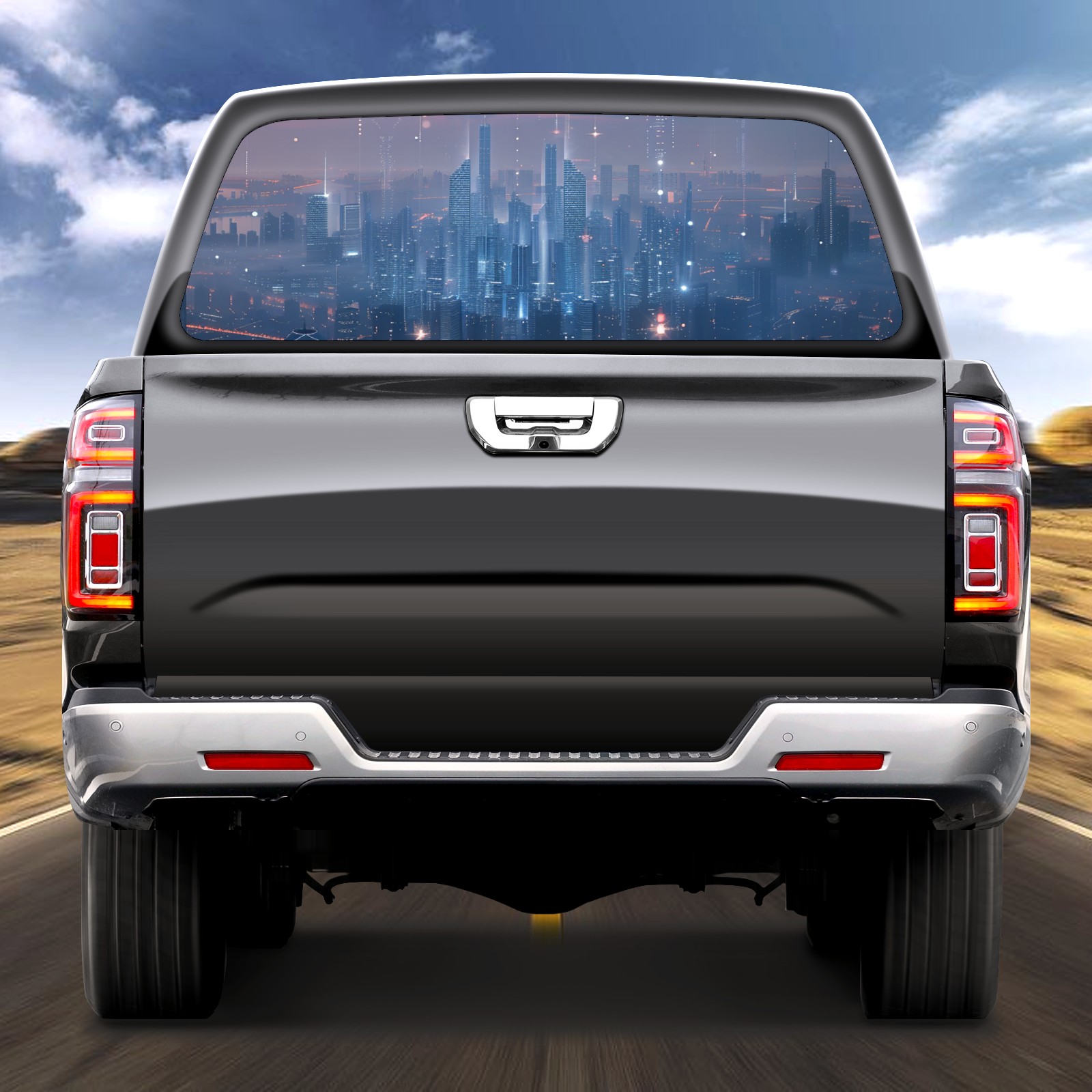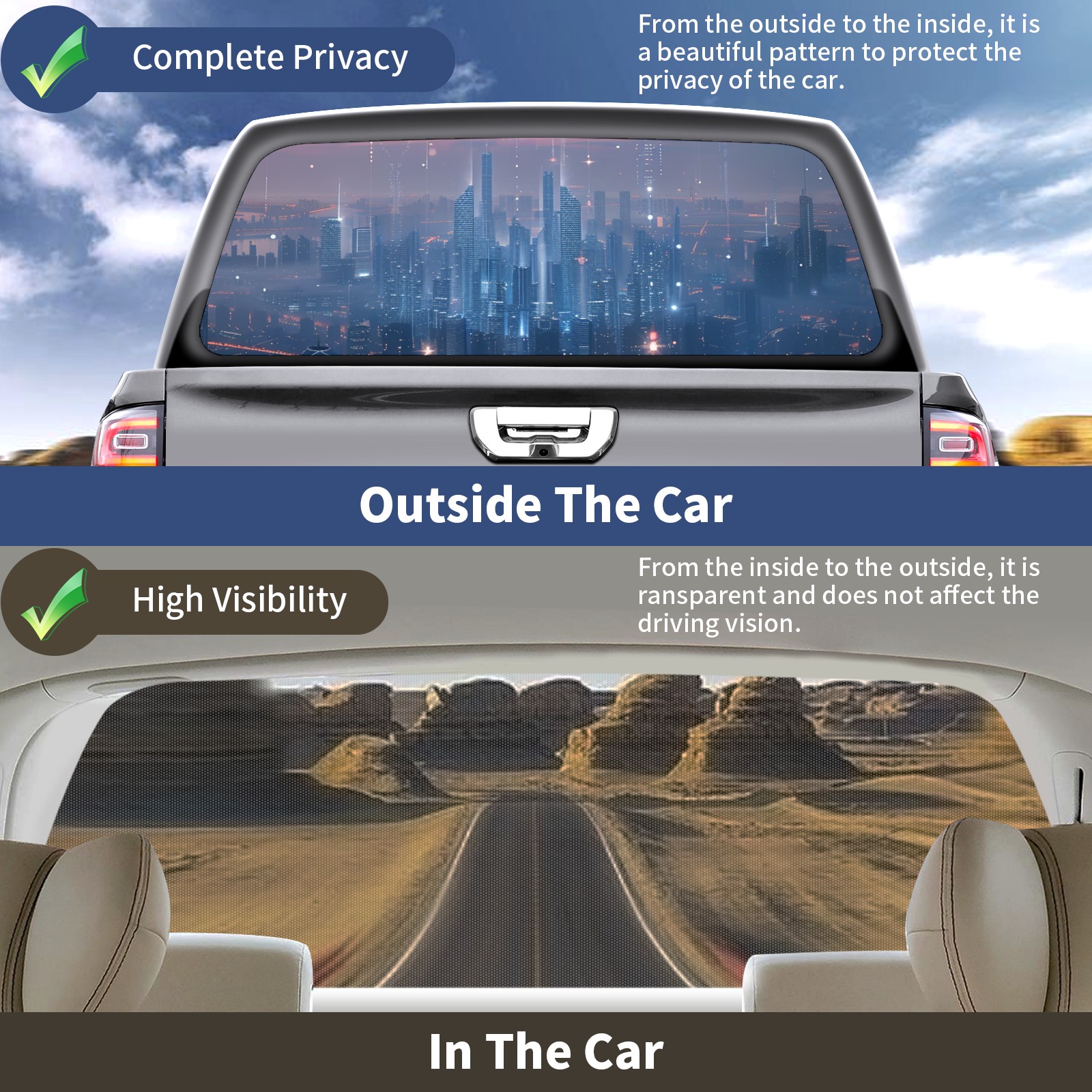 Truck Rear Window Graphics Decals Pickup Trucks Back Window Sticker Full Window Film Decal One Way Visual Waterproof Car Rear Tint Digital Cityscape (3)