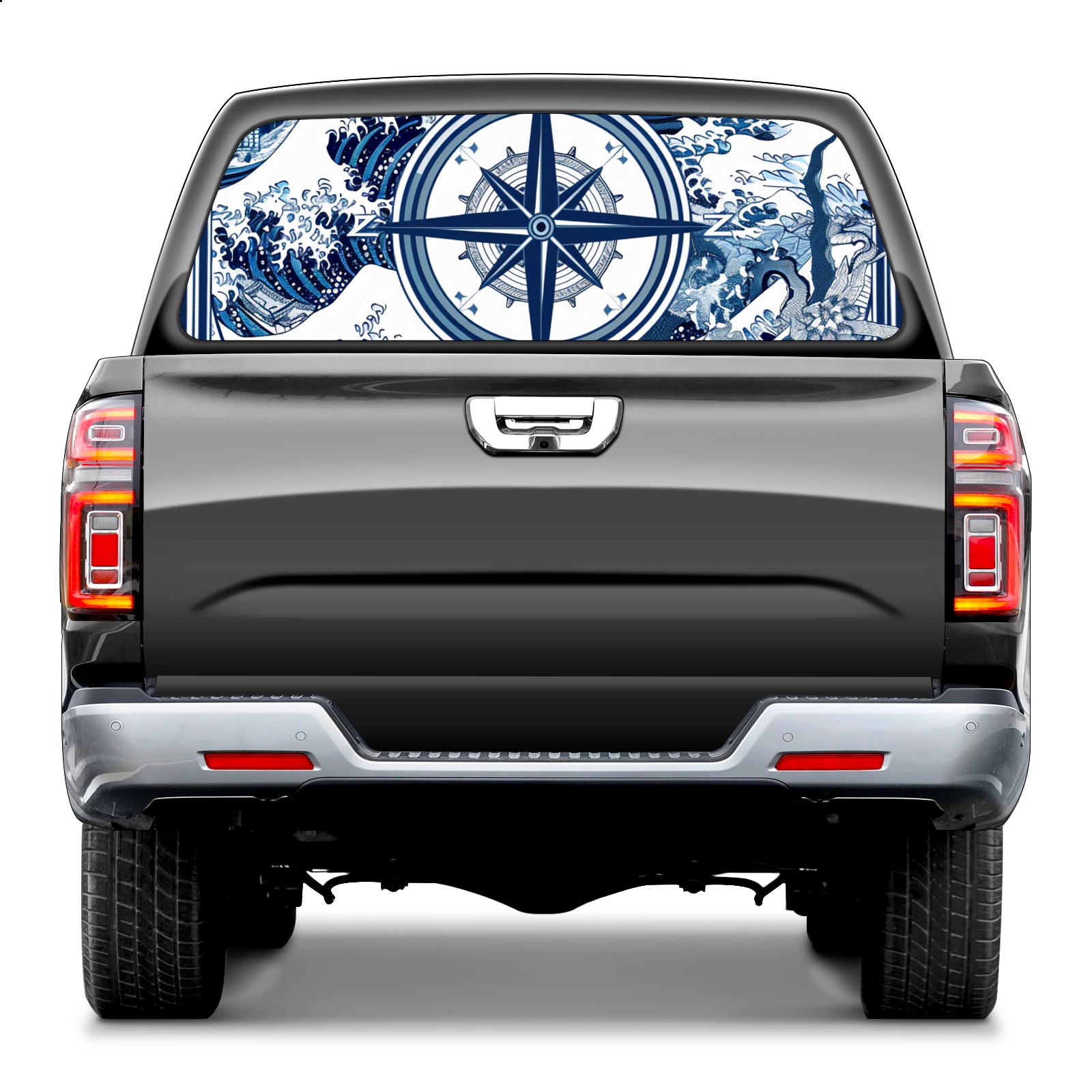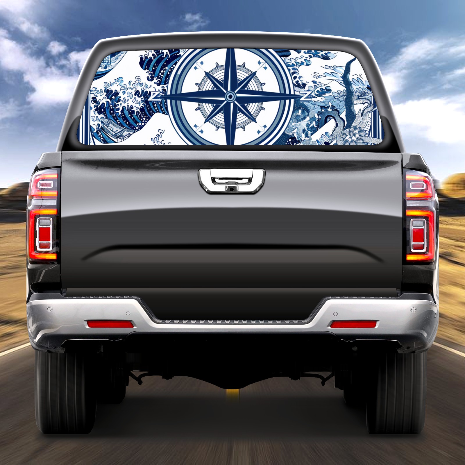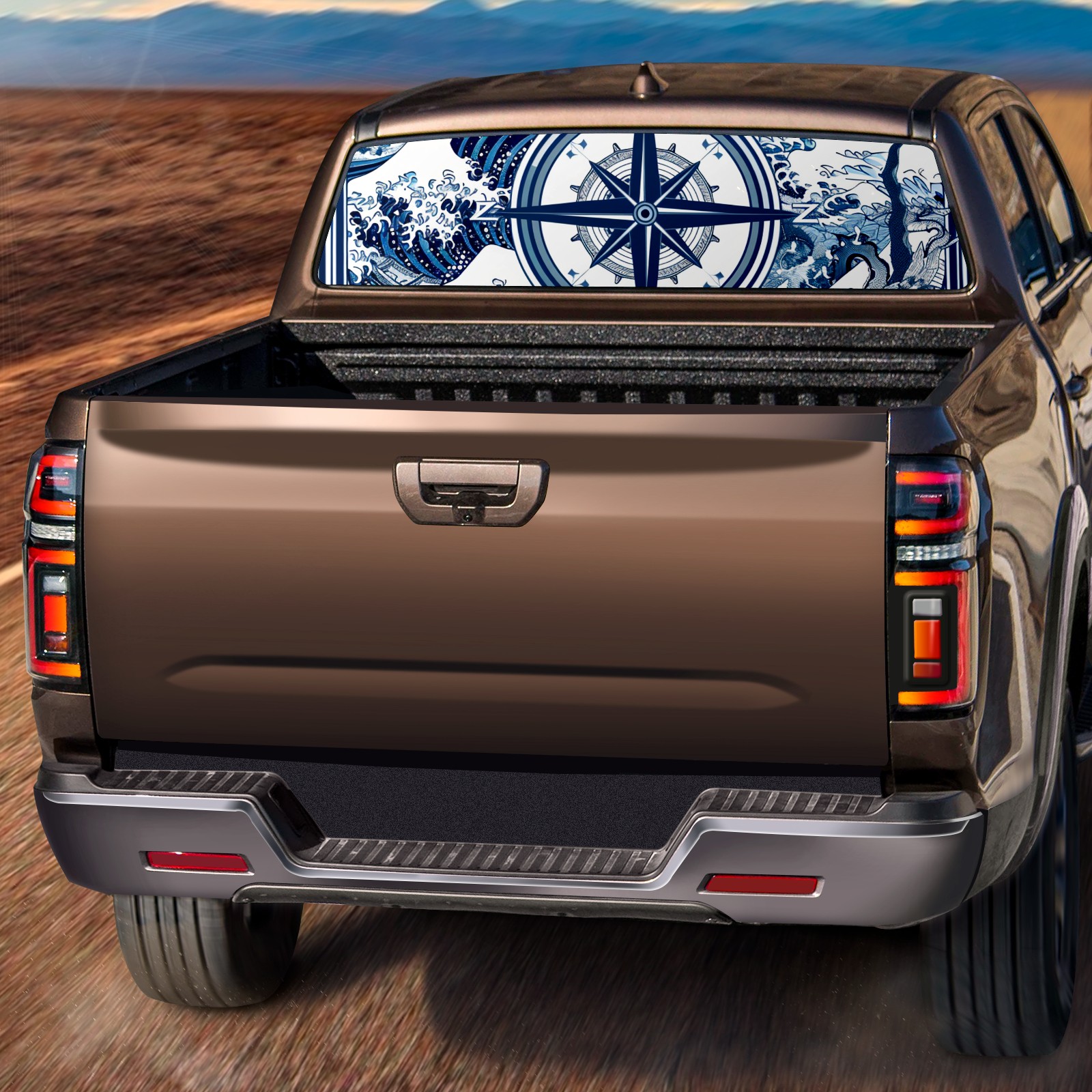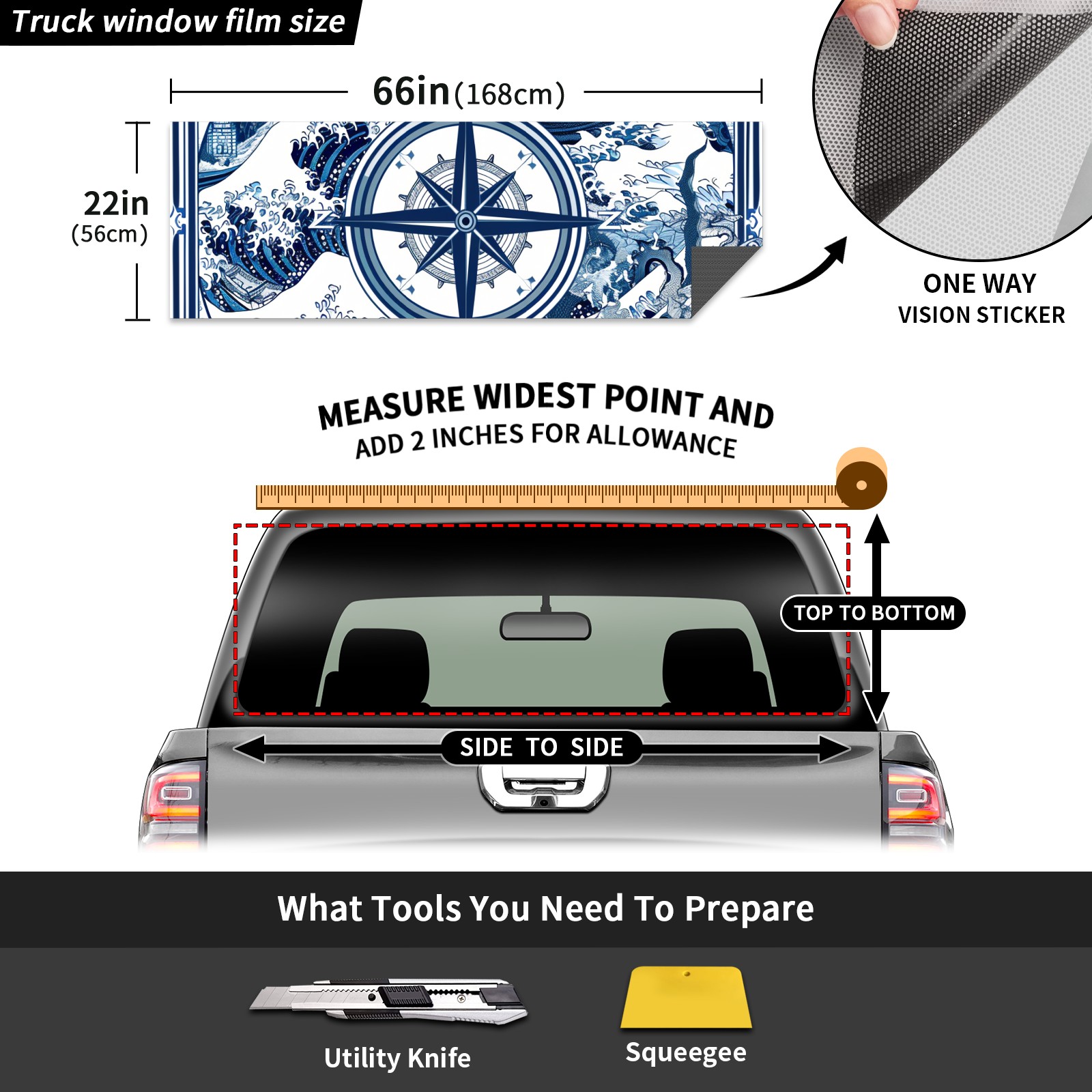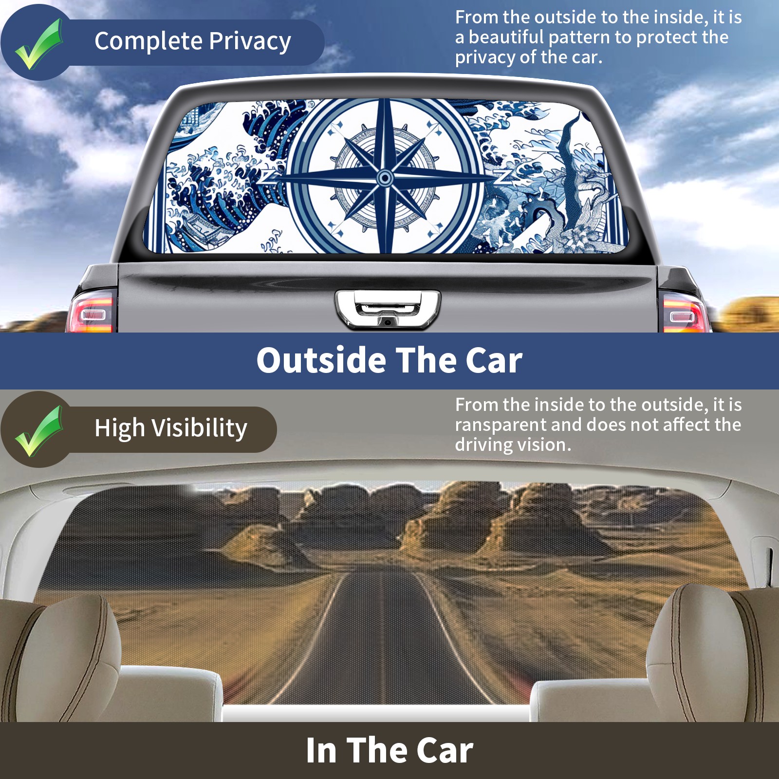 Truck Rear Window Graphics Decals Pickup Trucks Back Window Sticker Full Window Film Decal One Way Visual Waterproof Car Rear Tint Compass (18)