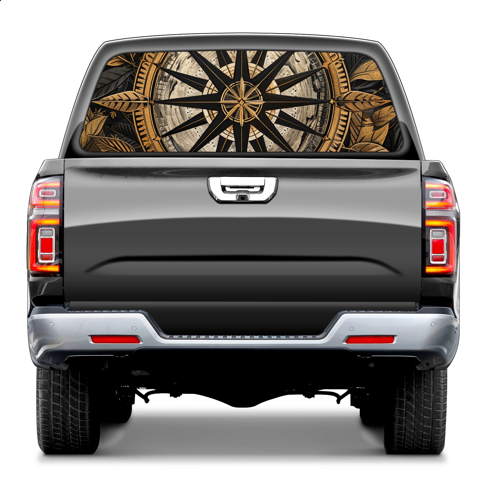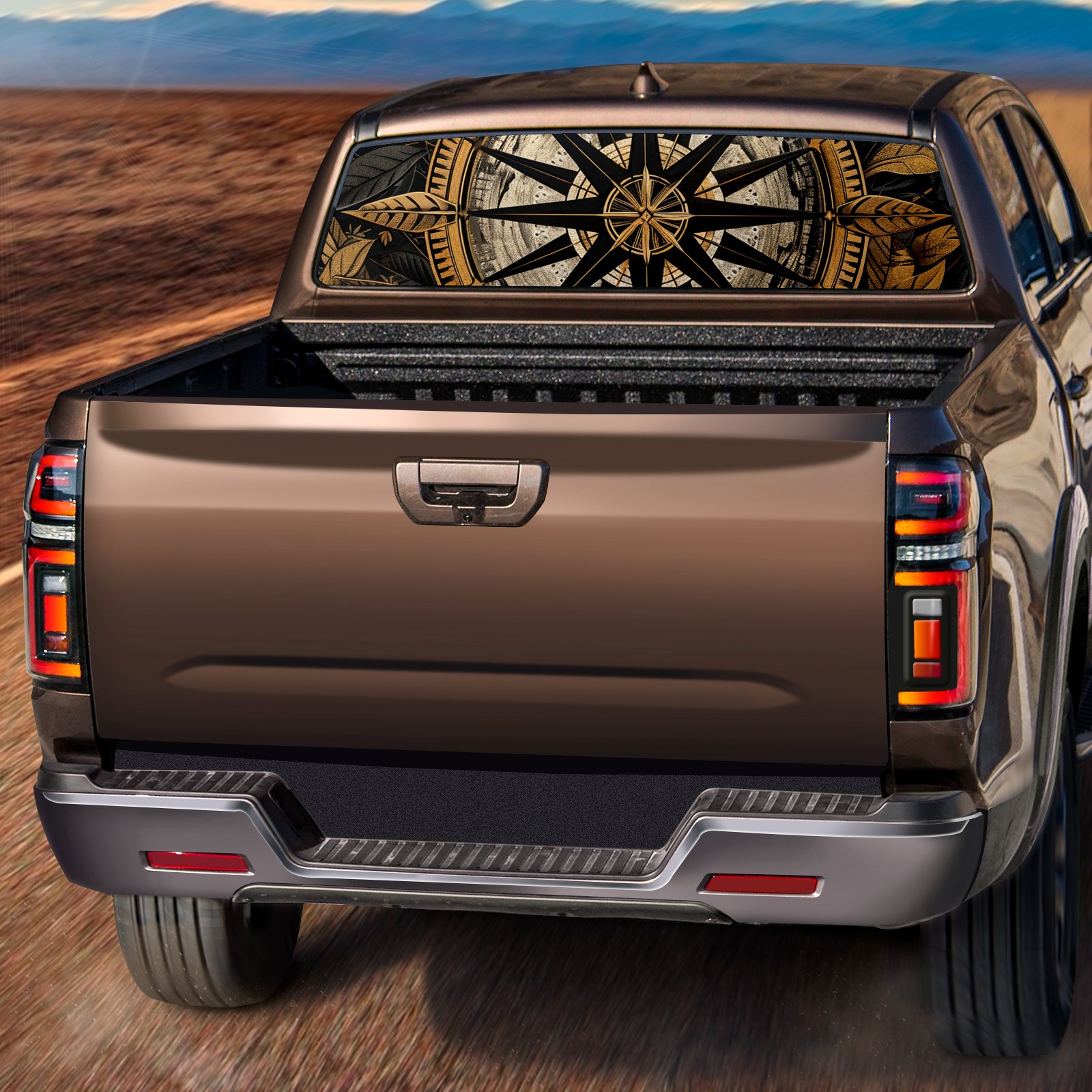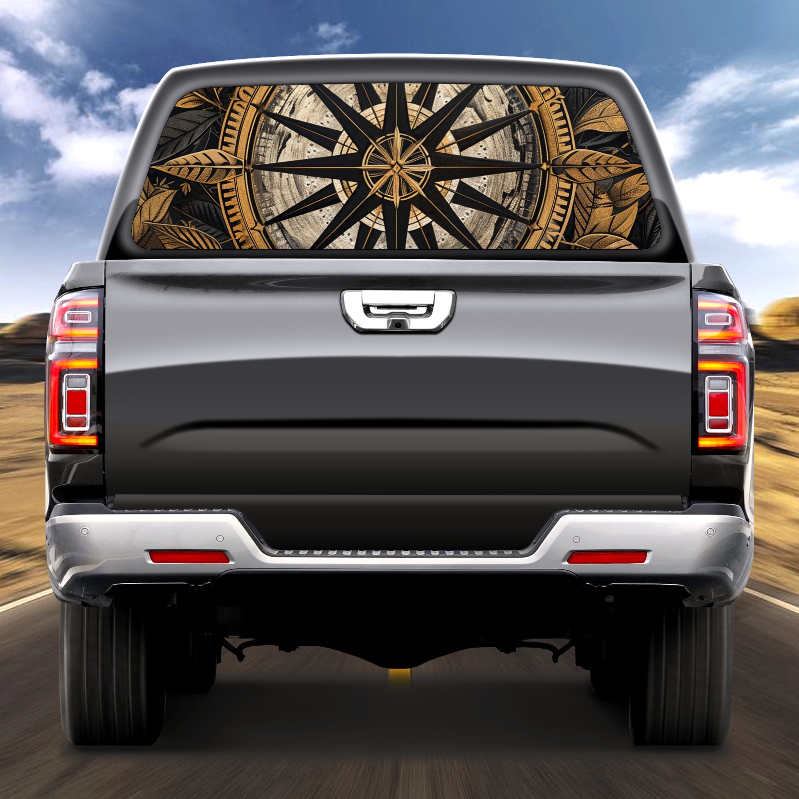 Truck Rear Window Graphics Decals Pickup Trucks Back Window Sticker Full Window Film Decal One Way Visual Waterproof Car Rear Tint Compass (7)