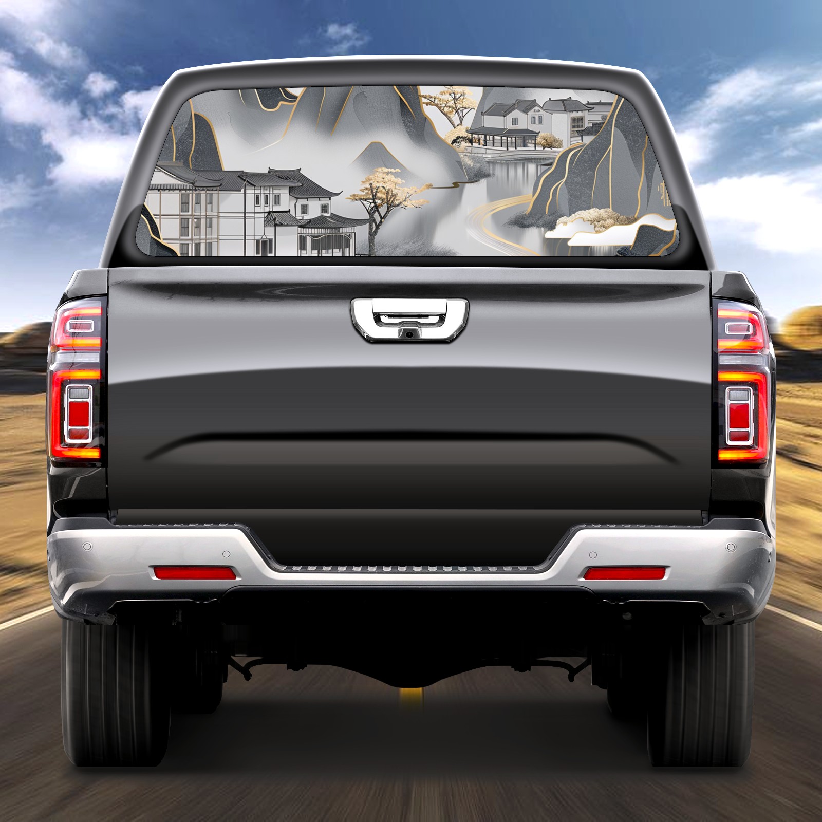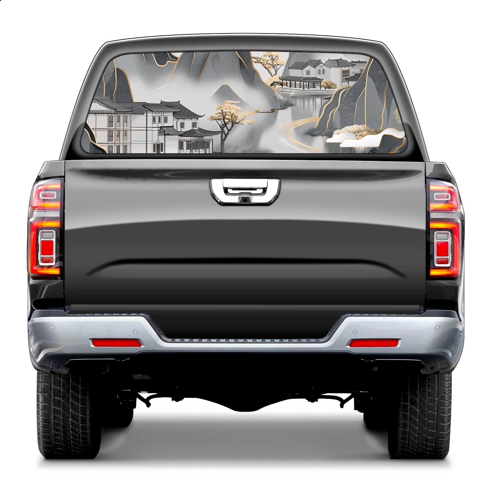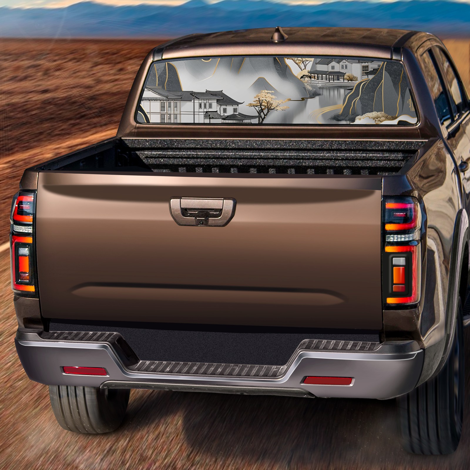 Truck Rear Window Graphics Decals Pickup Trucks Back Window Sticker Full Window Film Decal One Way Visual Waterproof Car Rear Tint Chinese Landscape Painting (3)