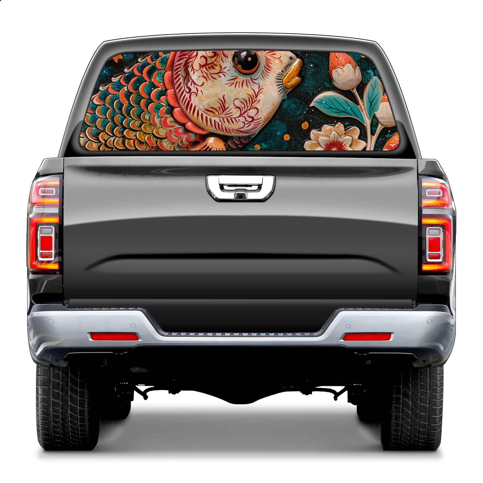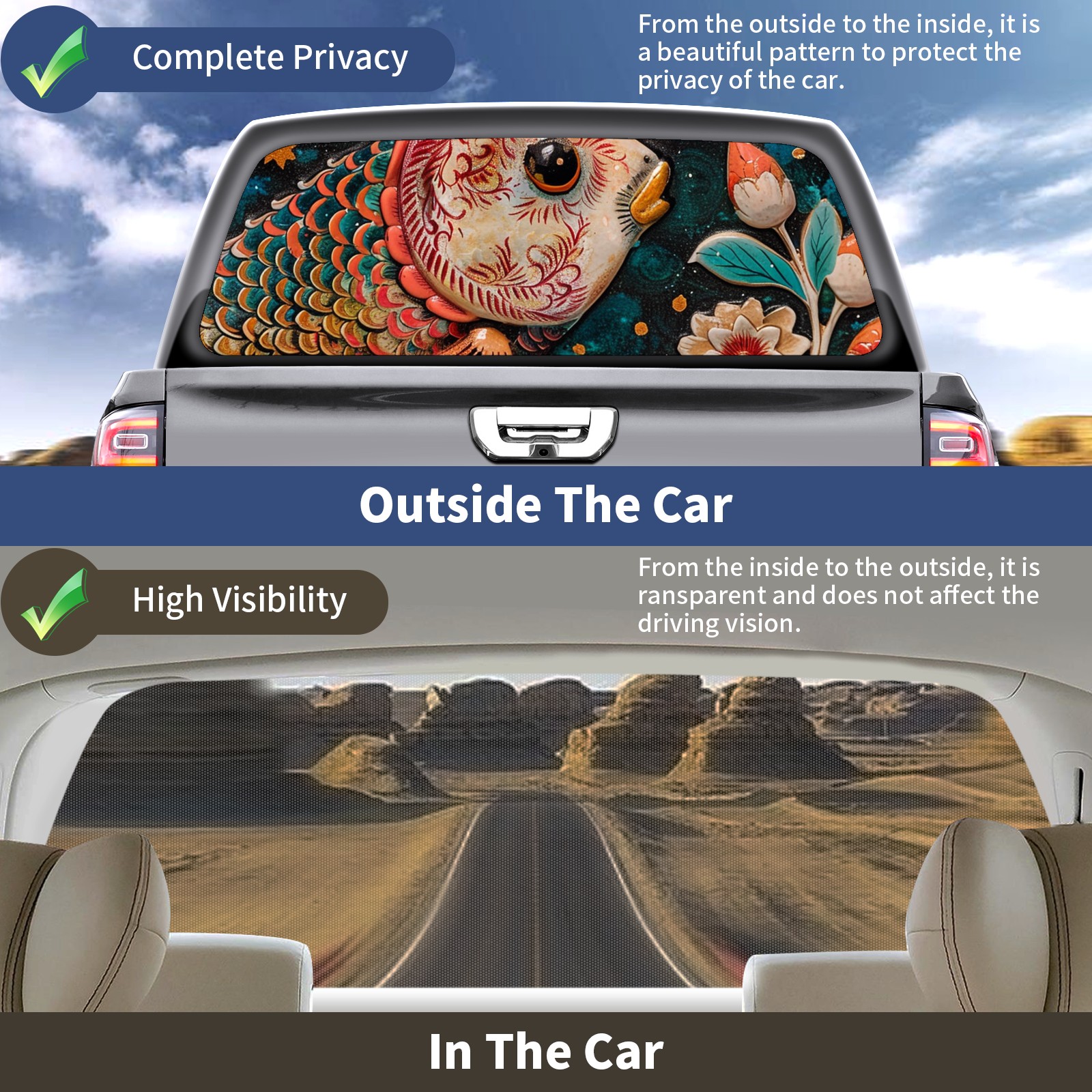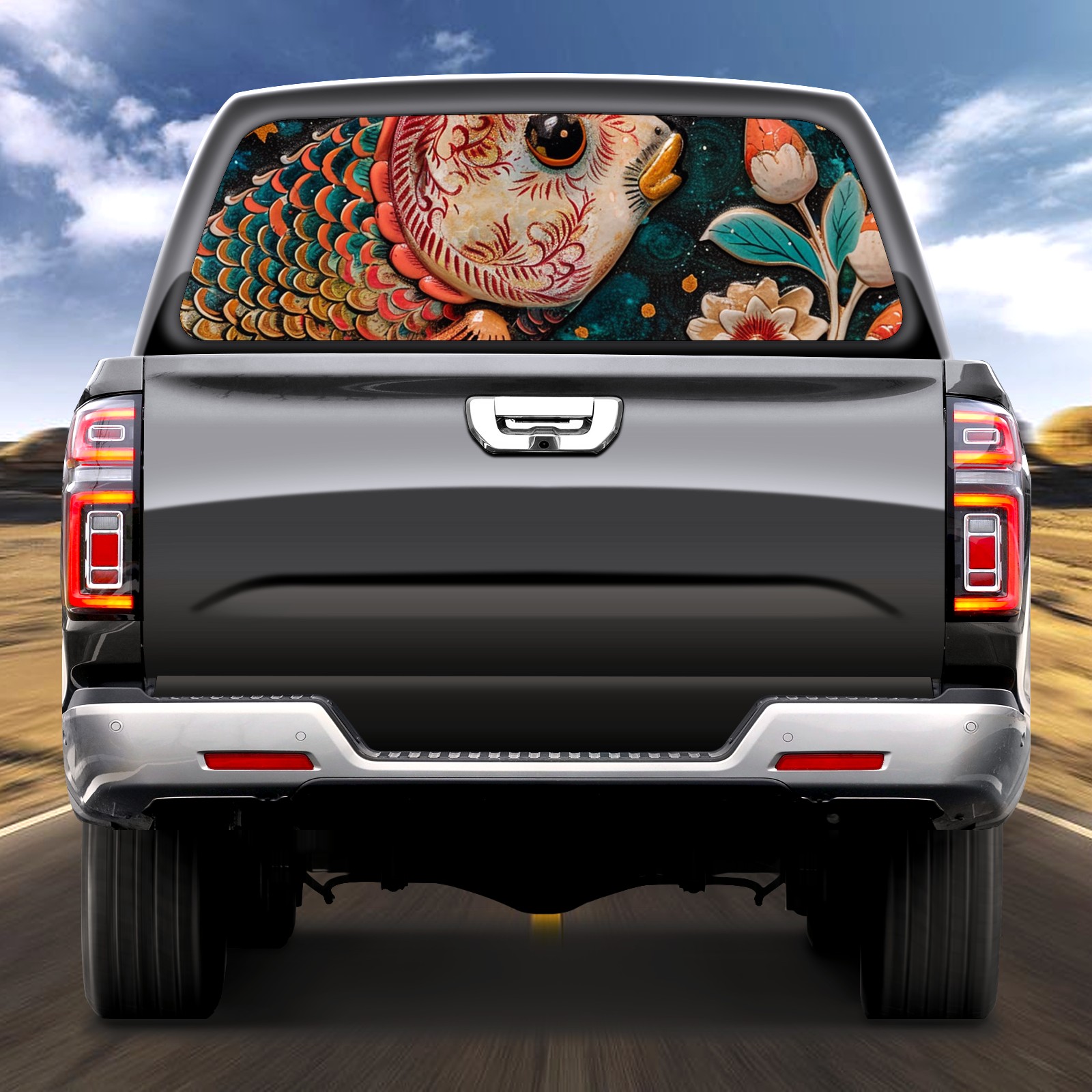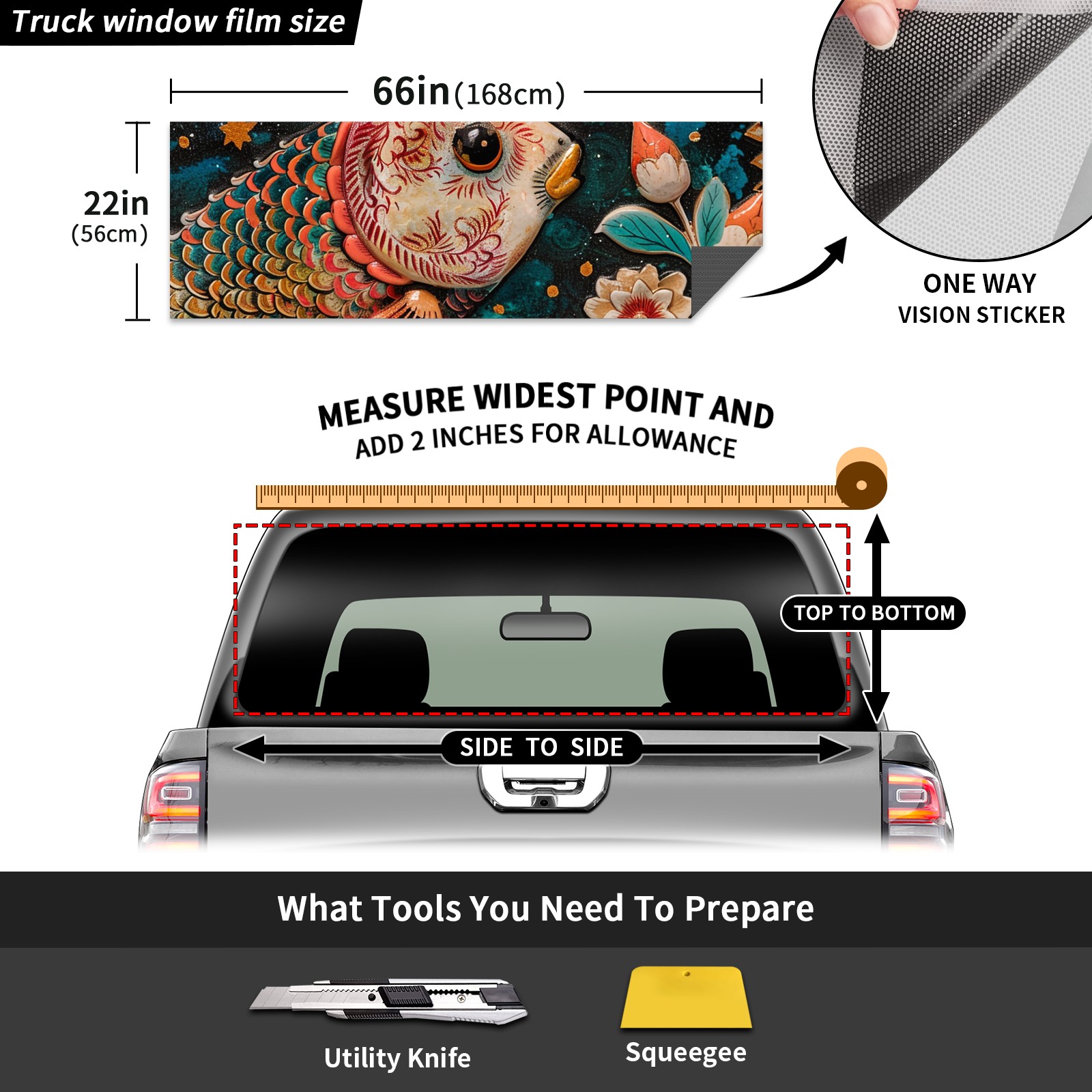 Truck Rear Window Graphics Decals Pickup Trucks Back Window Sticker Full Window Film Decal One Way Visual Waterproof Car Rear Tint Handpainted Fish (1)