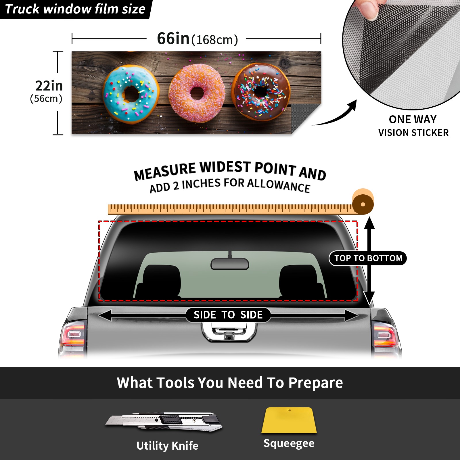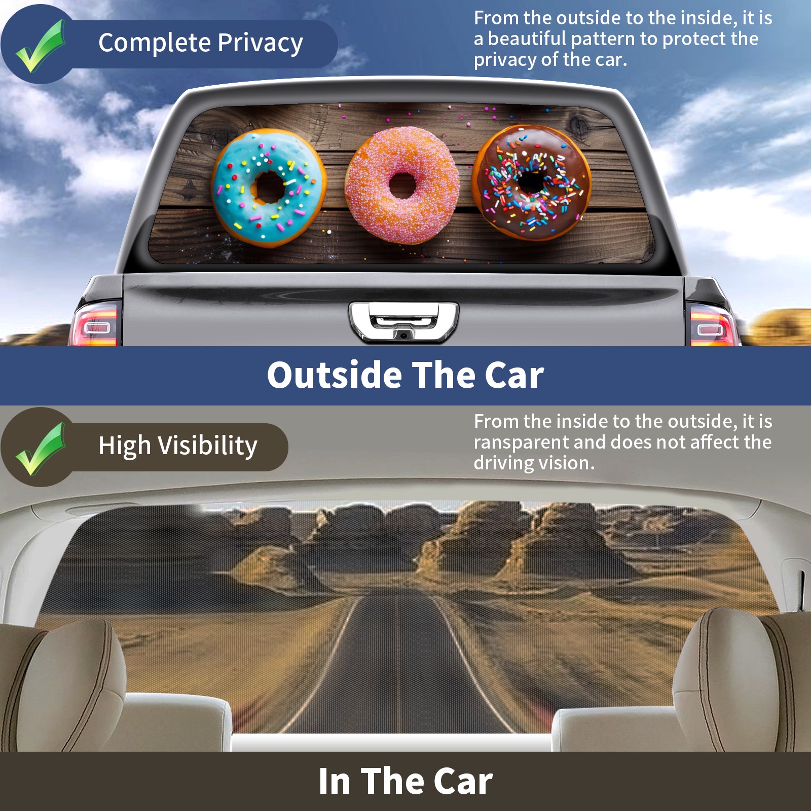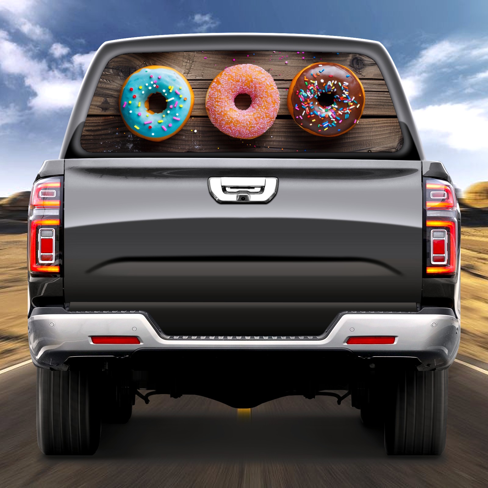 Truck Rear Window Graphics Decals Pickup Trucks Back Window Sticker Full Window Film Decal One Way Visual Waterproof Car Rear Tint Colorful Sprinkled Donuts (3)