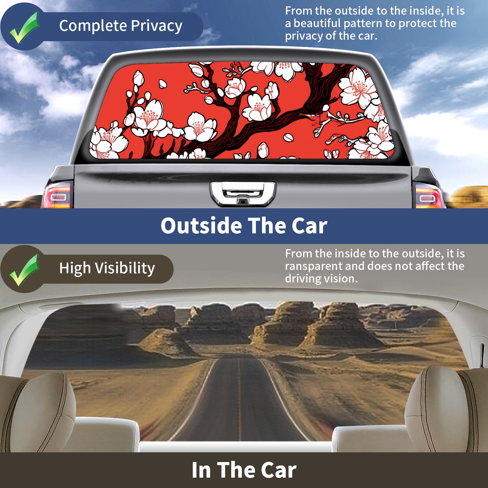 Truck Rear Window Graphics Decals Pickup Trucks Back Window Sticker Full Window Film Decal One Way Visual Waterproof Car Rear Tint Cherry Blossom Flowers (4)