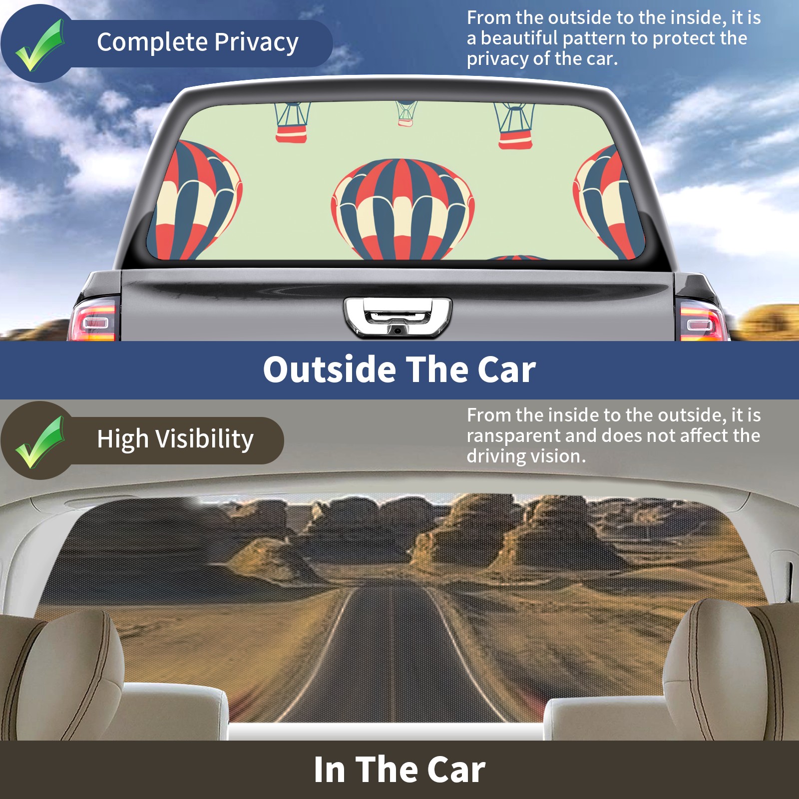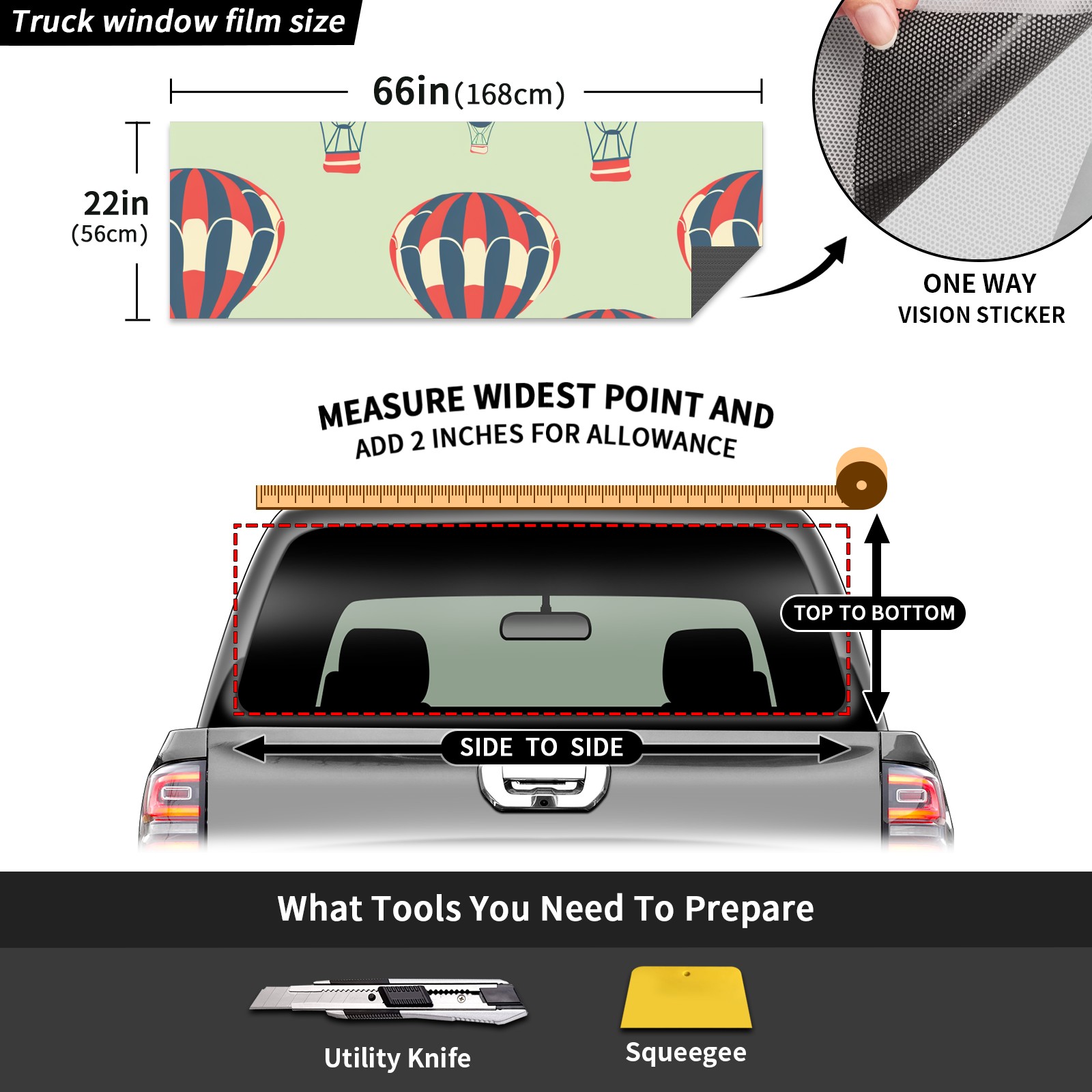 Truck Rear Window Graphics Decals Pickup Trucks Back Window Sticker Full Window Film Decal One Way Visual Waterproof Car Rear Tint HotAir (2)