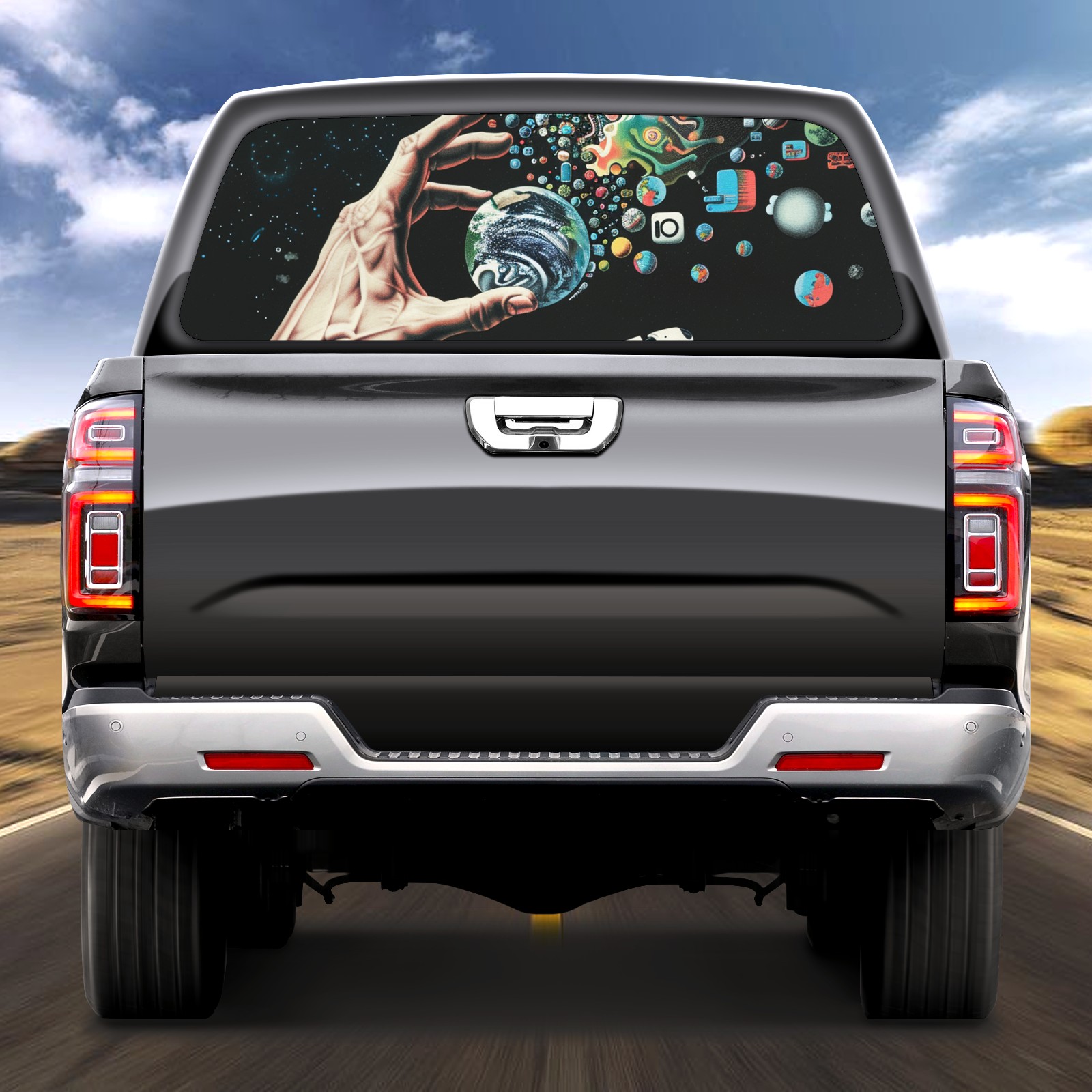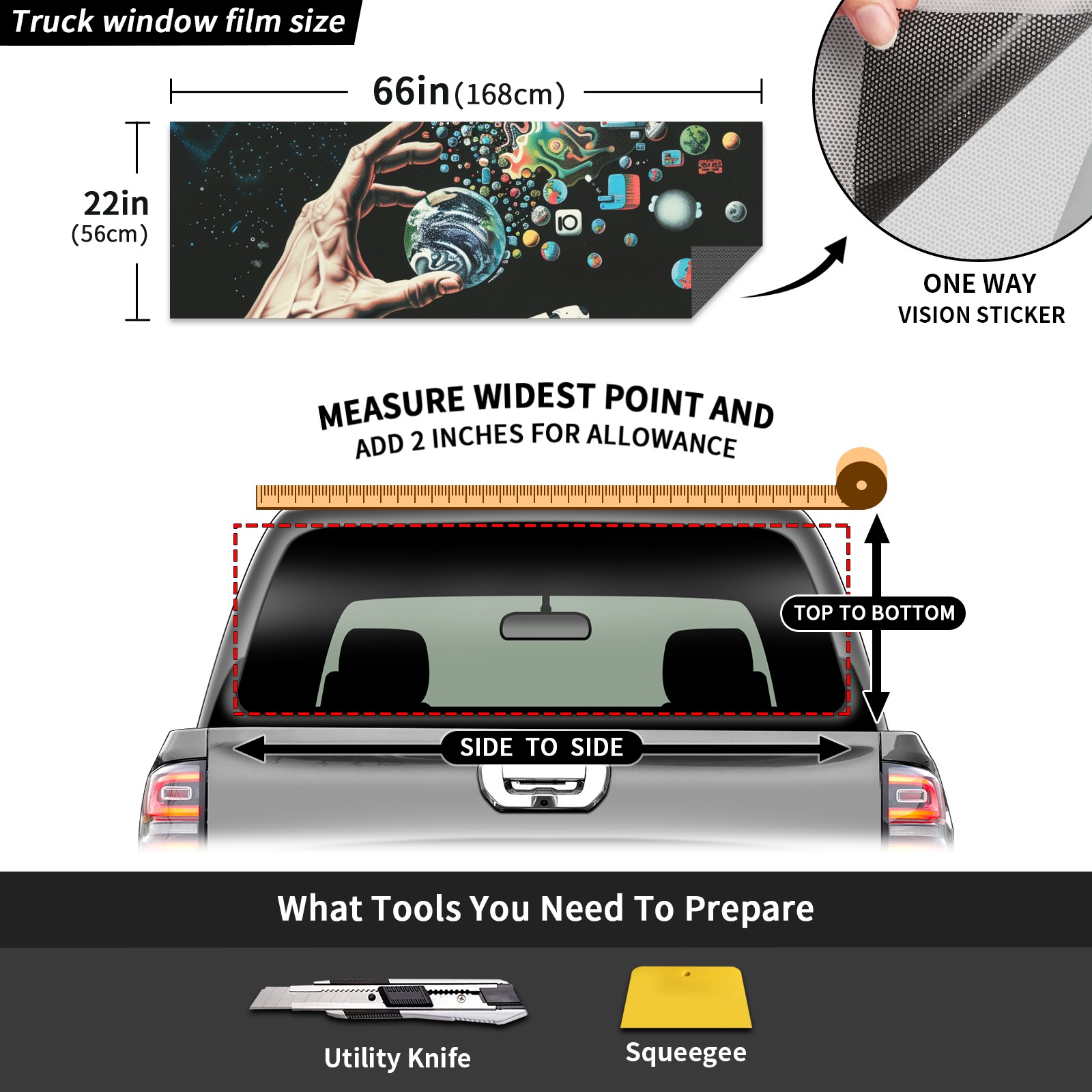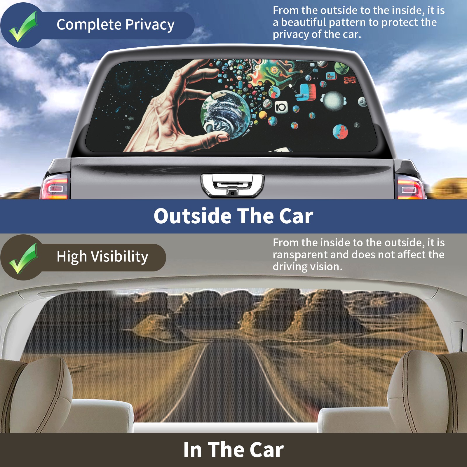 Truck Rear Window Graphics Decals Pickup Trucks Back Window Sticker Full Window Film Decal One Way Visual Waterproof Car Rear Tint Technology