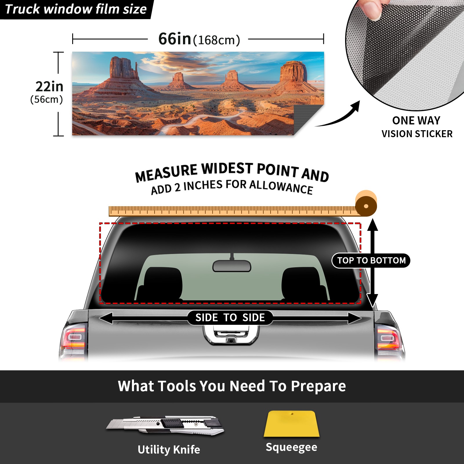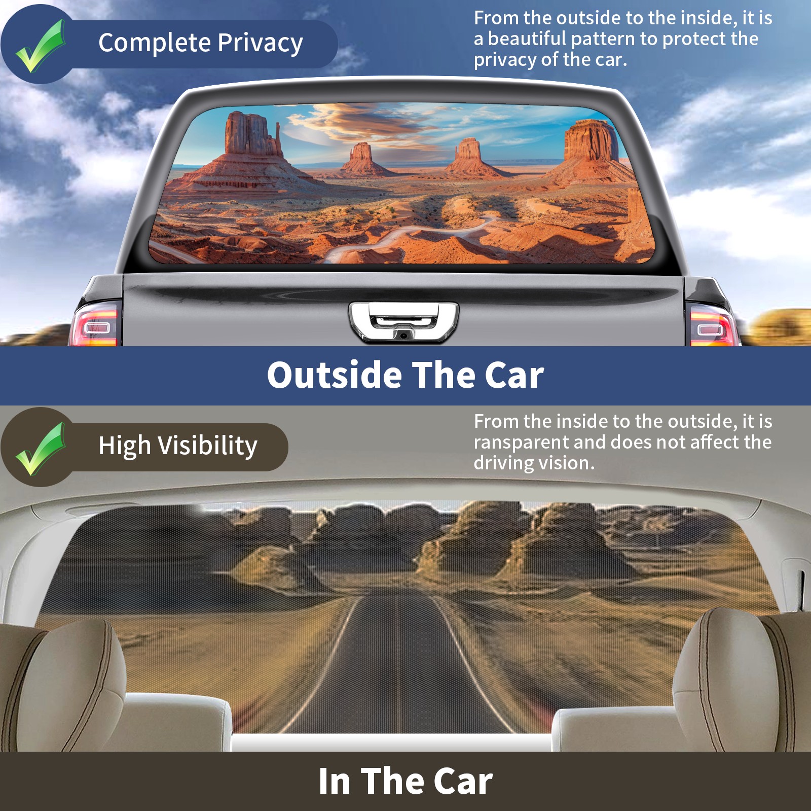 Truck Rear Window Graphics Decals Pickup Trucks Back Window Sticker Full Window Film Decal One Way Visual Waterproof Car Rear Tint Panoramic View Of The Red Desert(2)