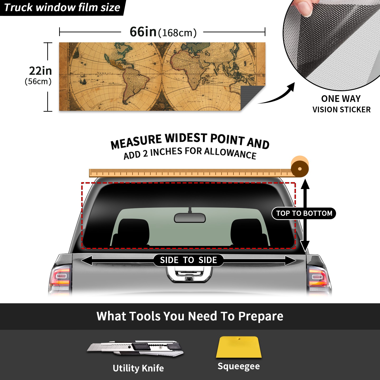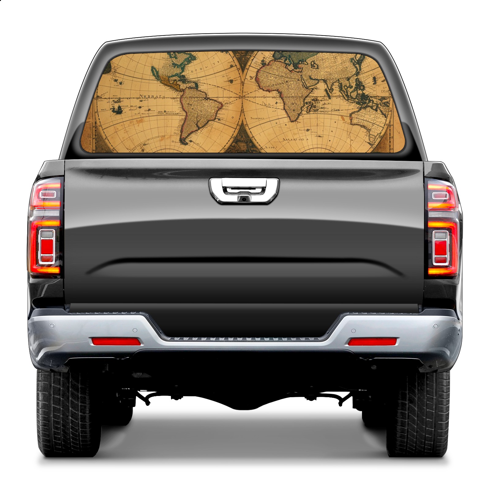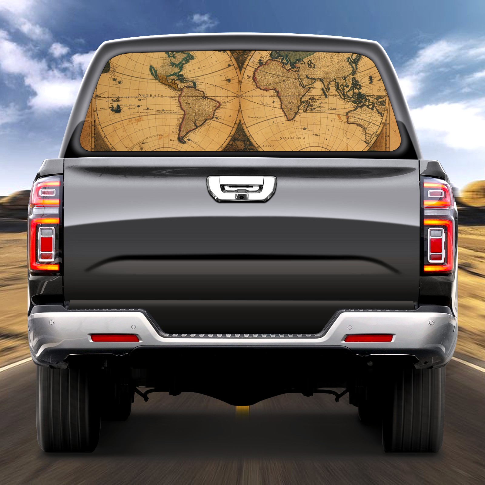 Truck Rear Window Graphics Decals Pickup Trucks Back Window Sticker Full Window Film Decal One Way Visual Waterproof Car Rear Tint Old Map Of The World