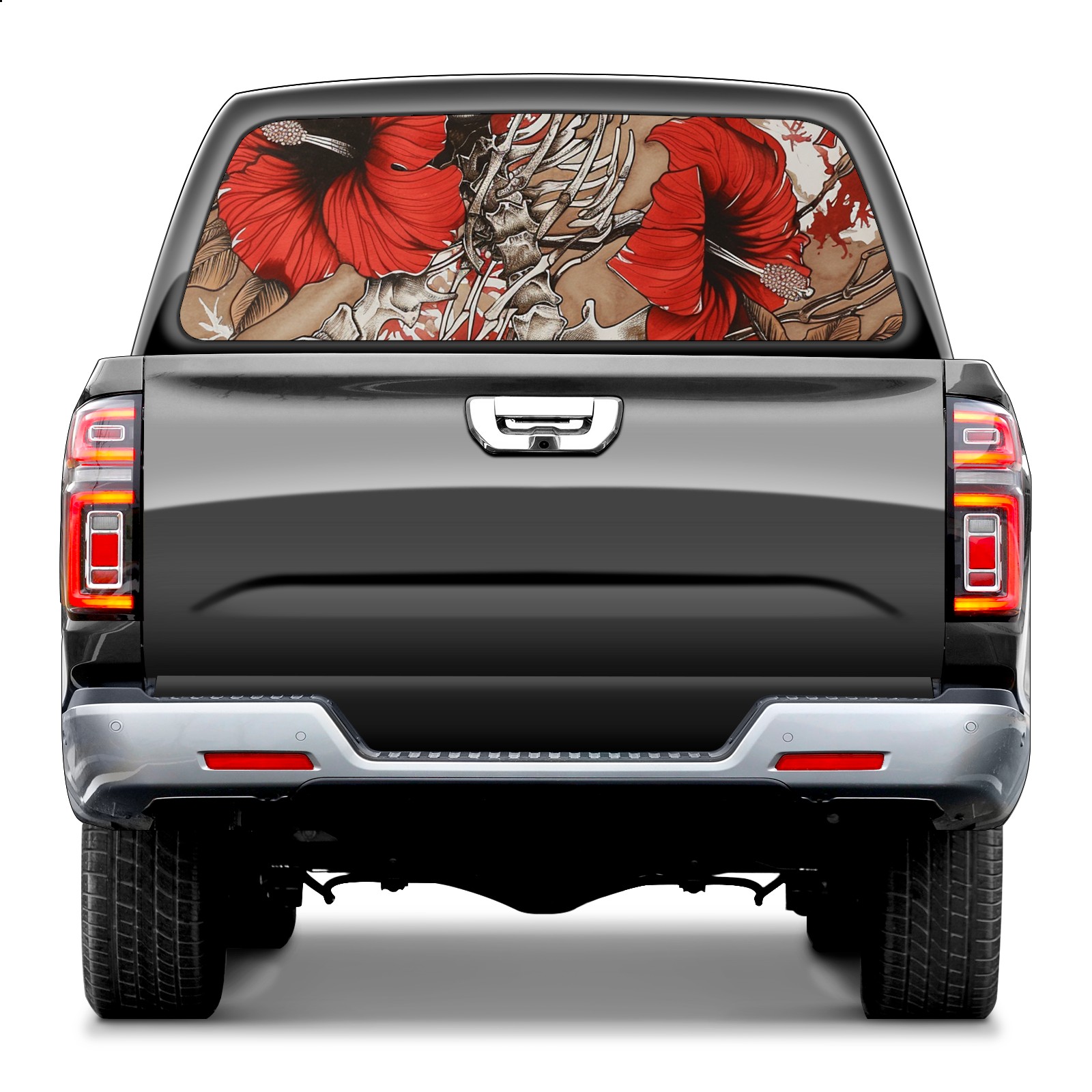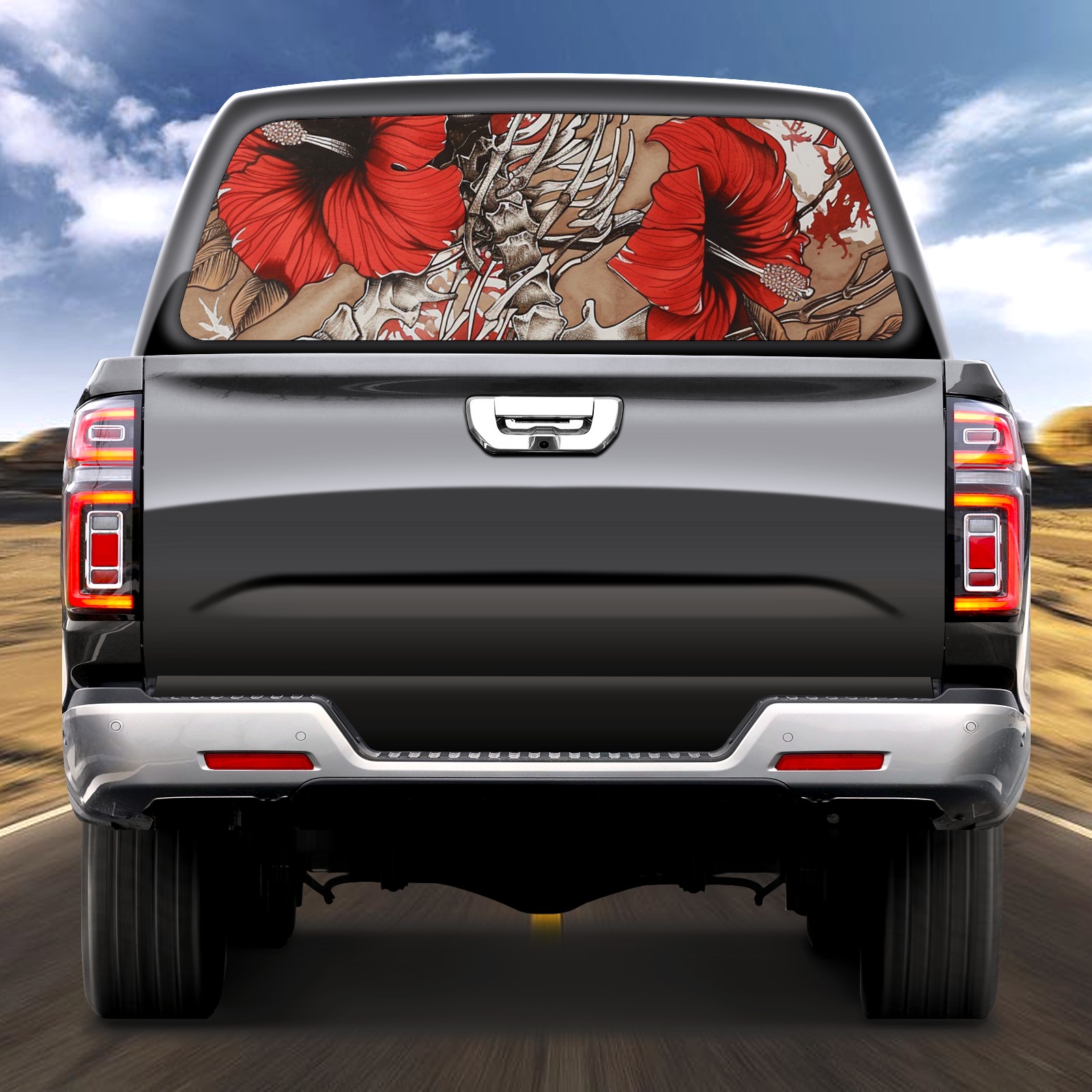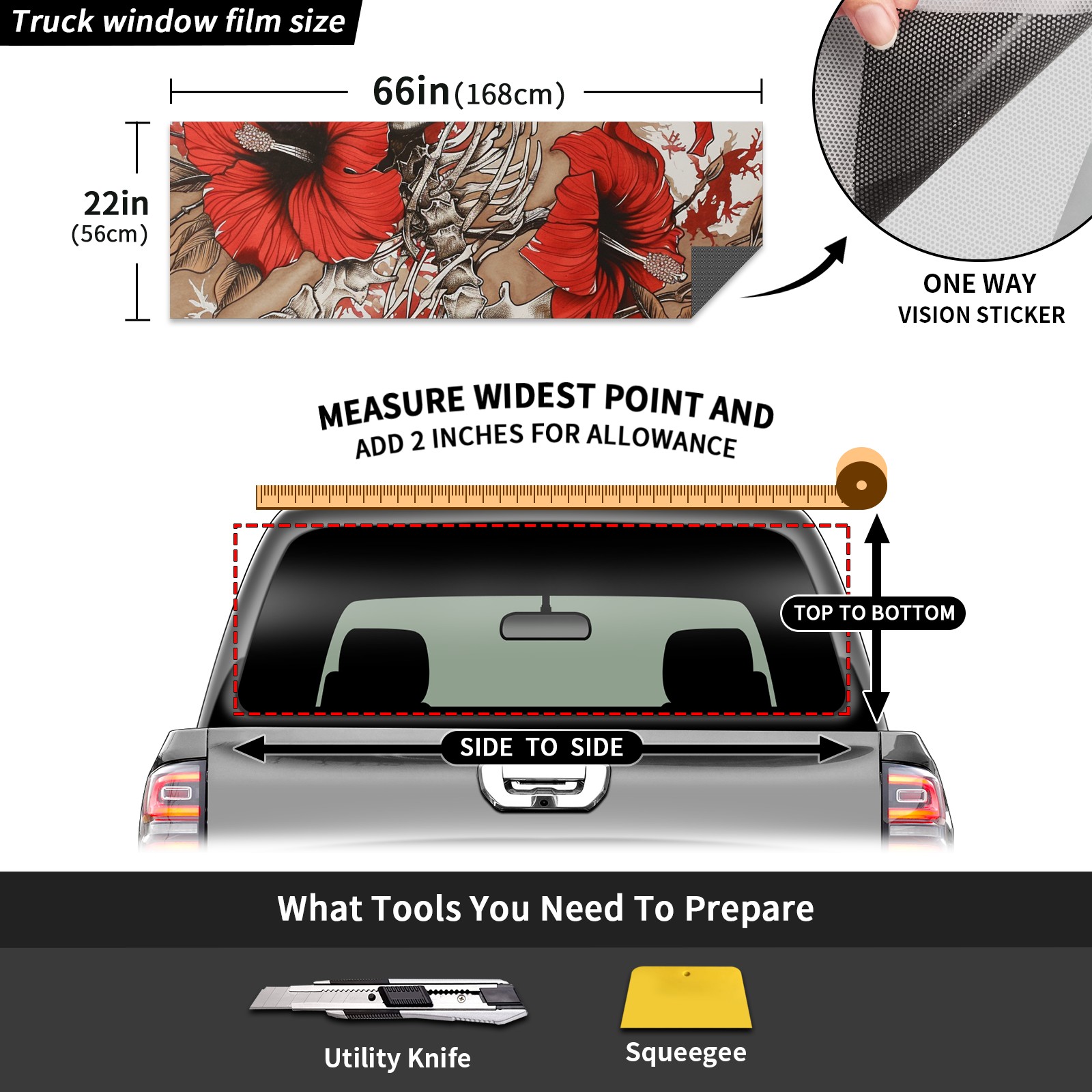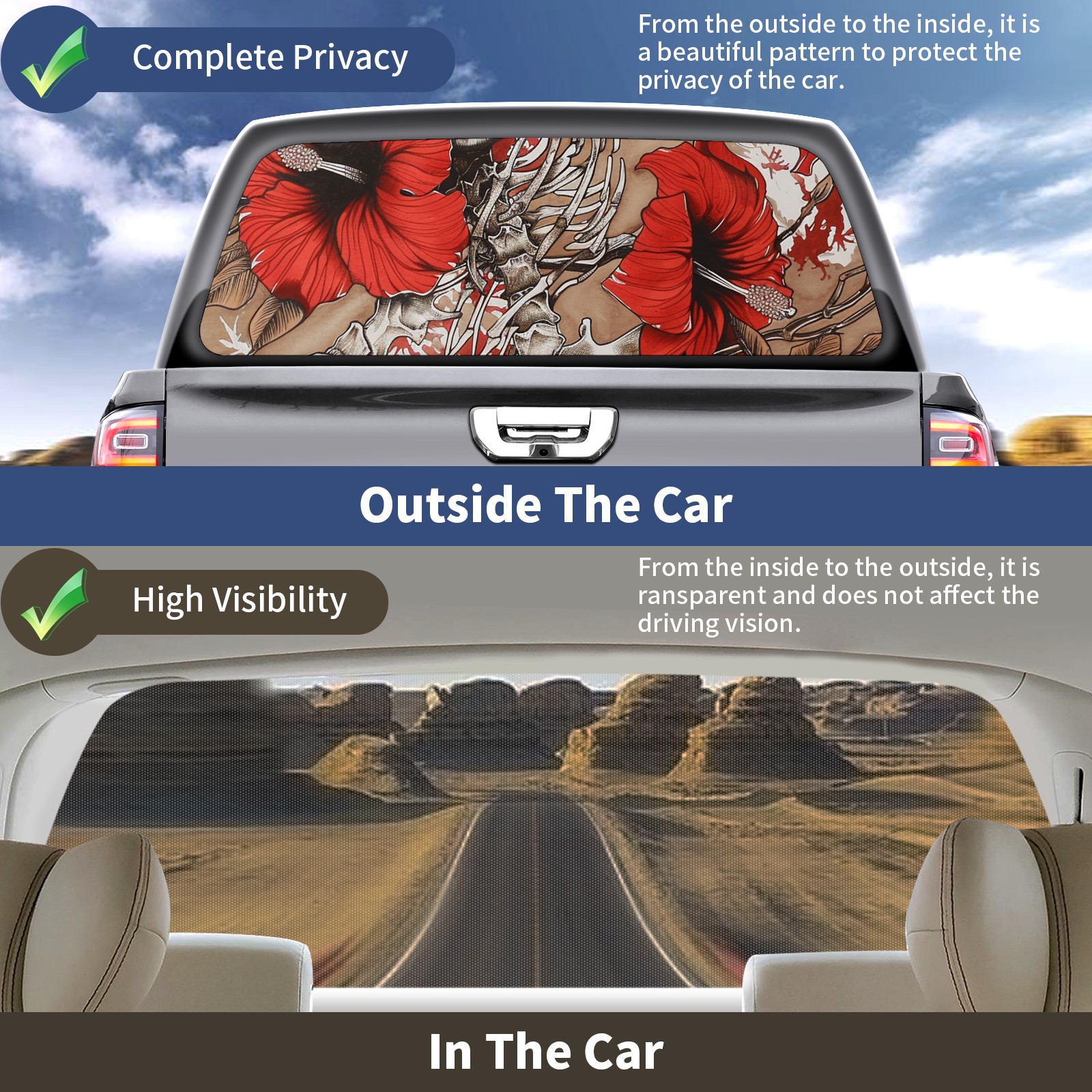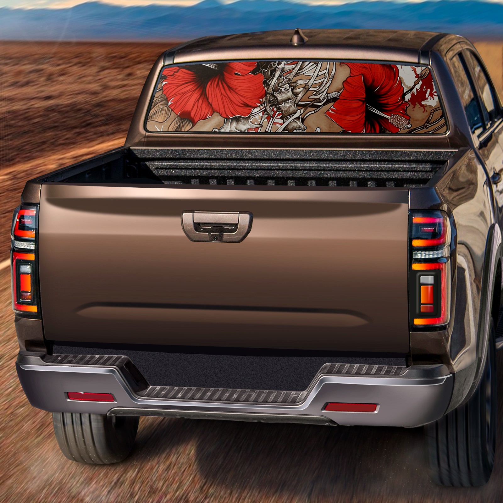 Truck Rear Window Graphics Decals Pickup Trucks Back Window Sticker Full Window Film Decal One Way Visual Waterproof Car Rear Tint Skull (4)