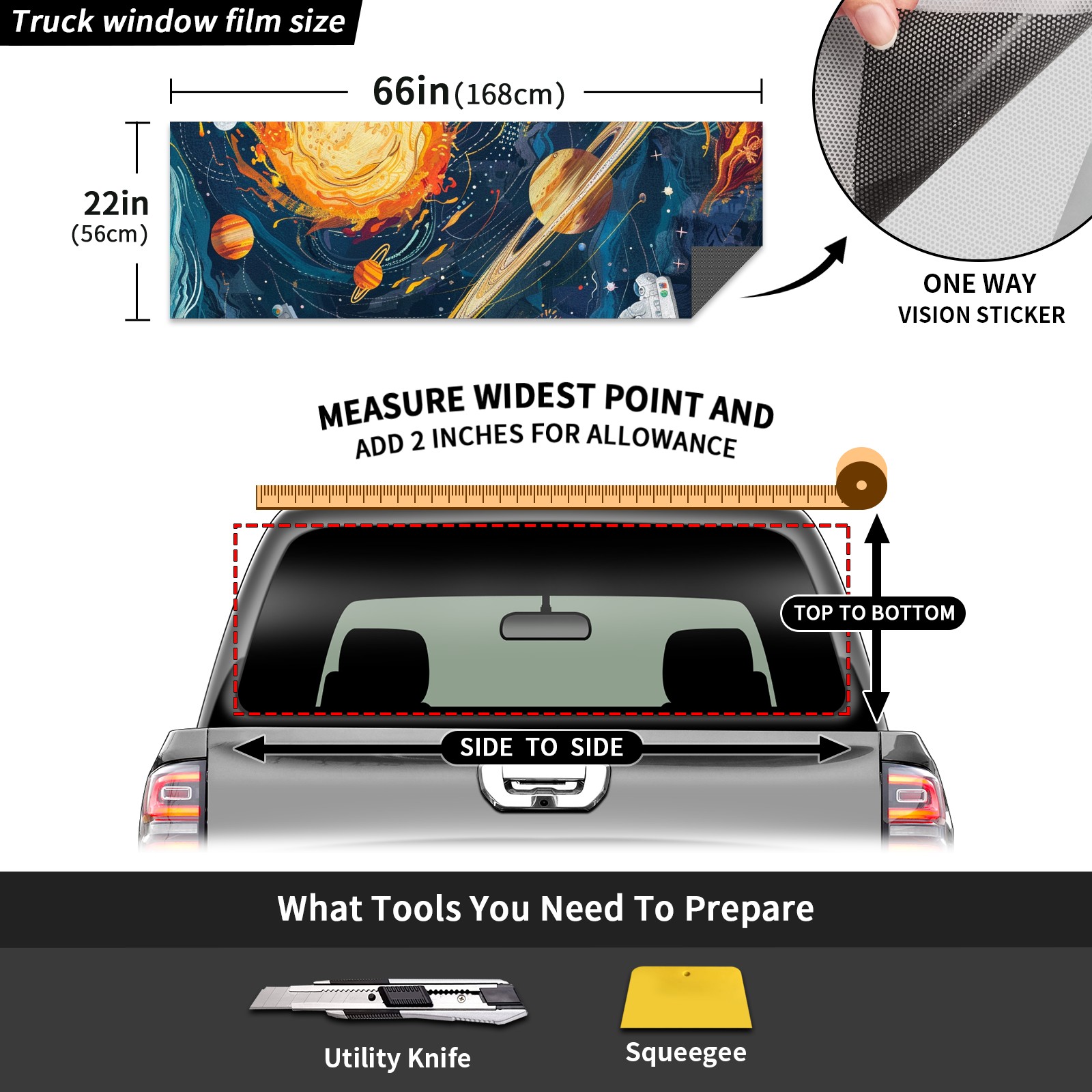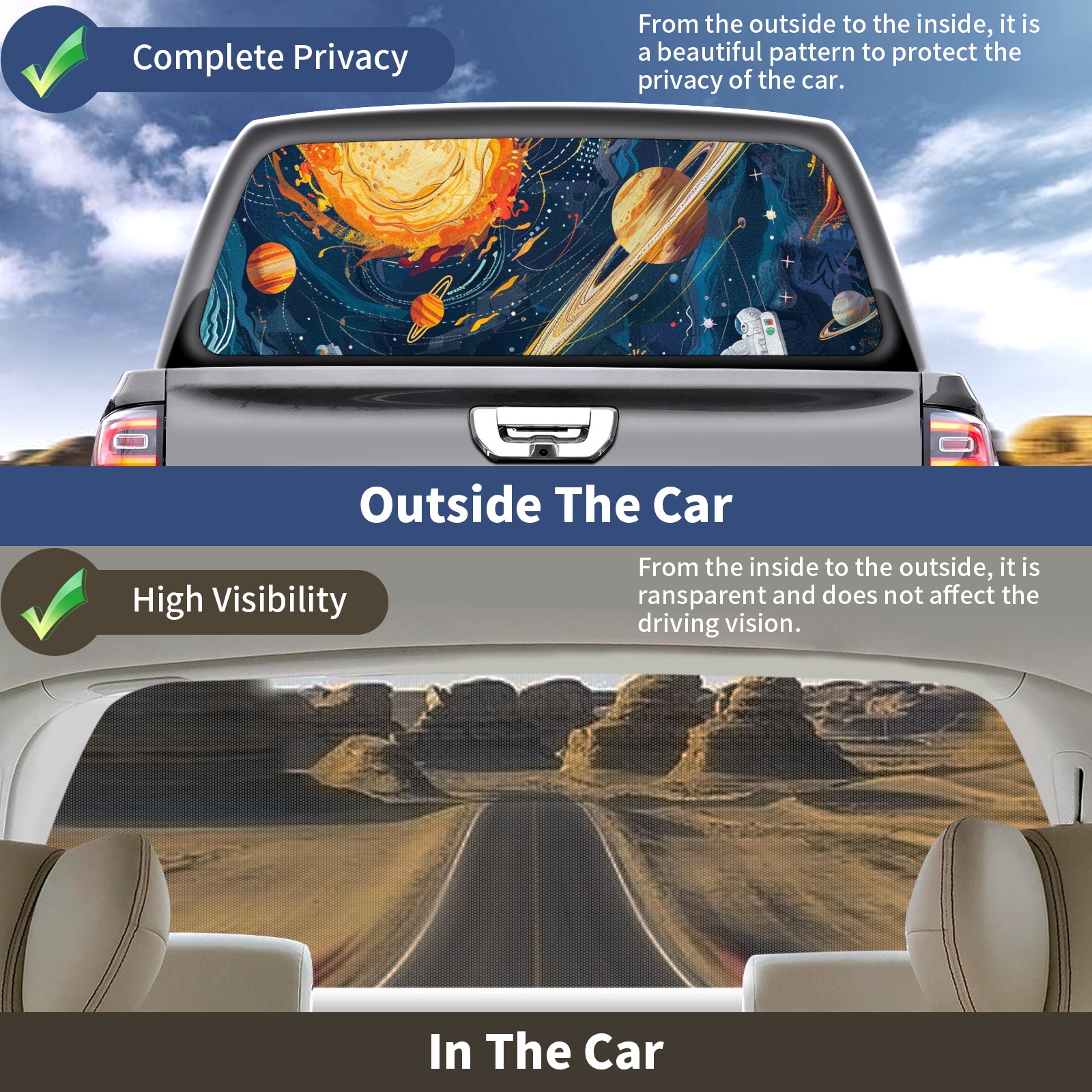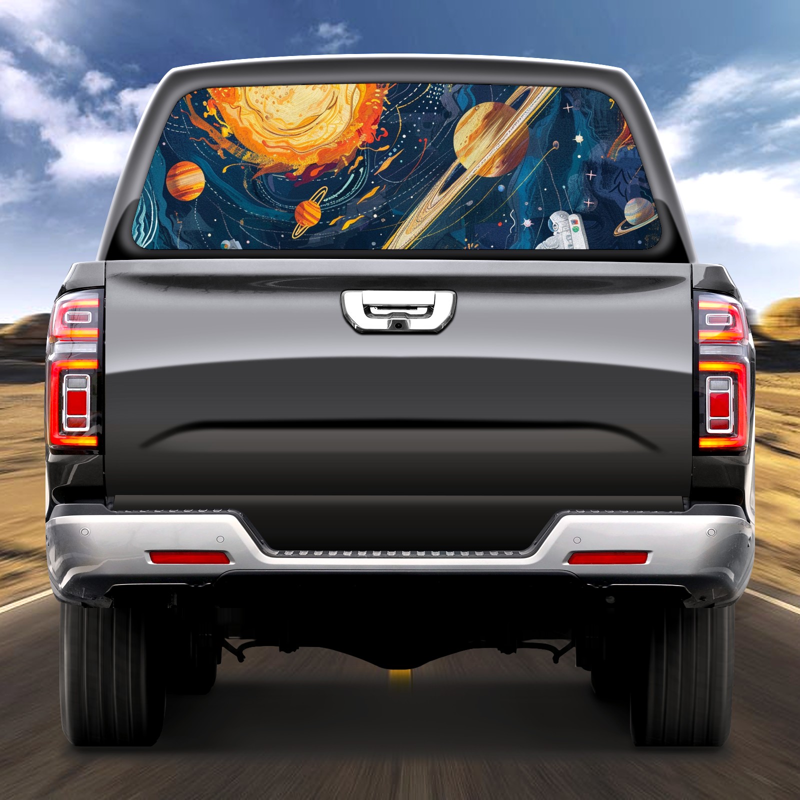Truck Rear Window Graphics Decals Pickup Trucks Back Window Sticker Full Window Film Decal One Way Visual Waterproof Car Rear Tint Space Travel