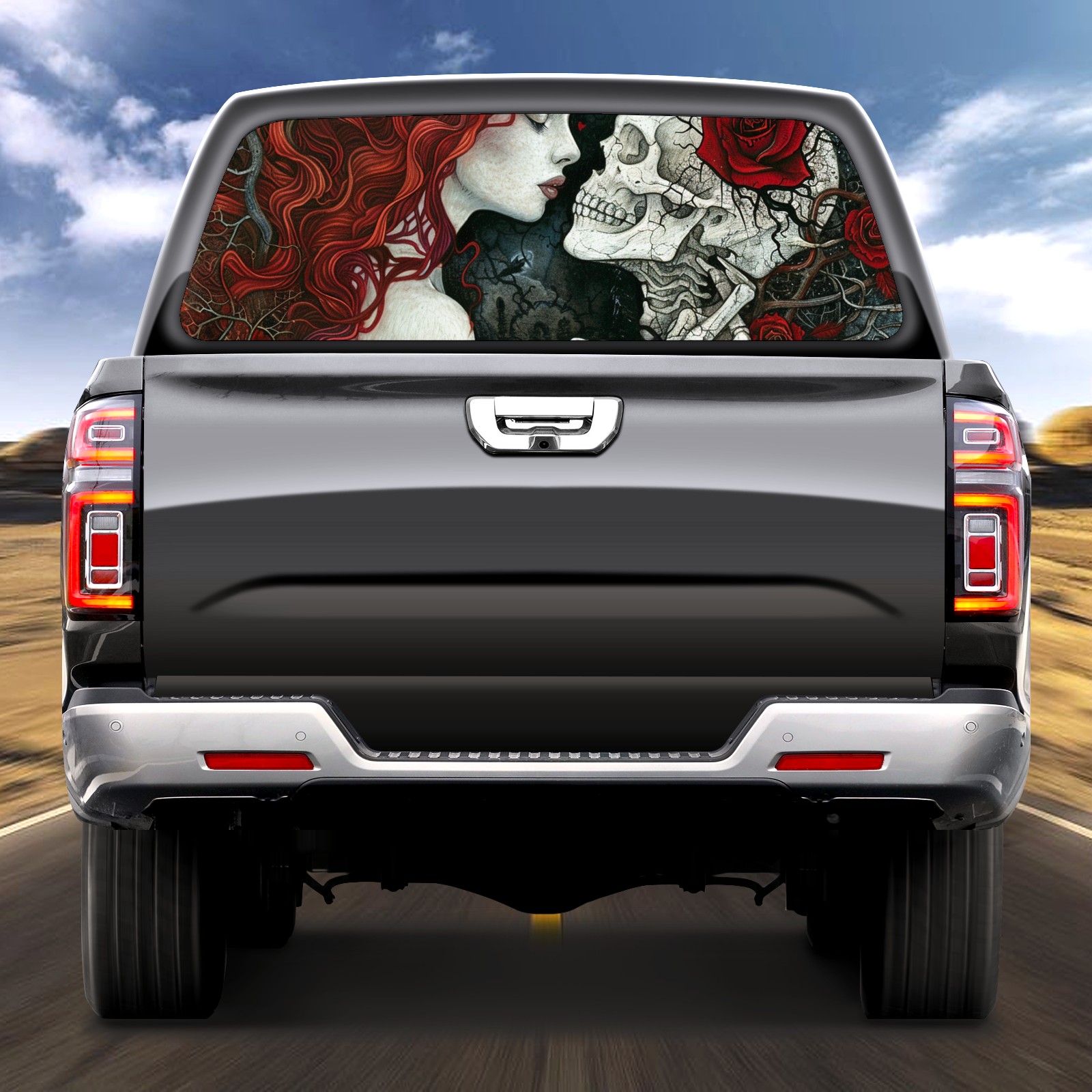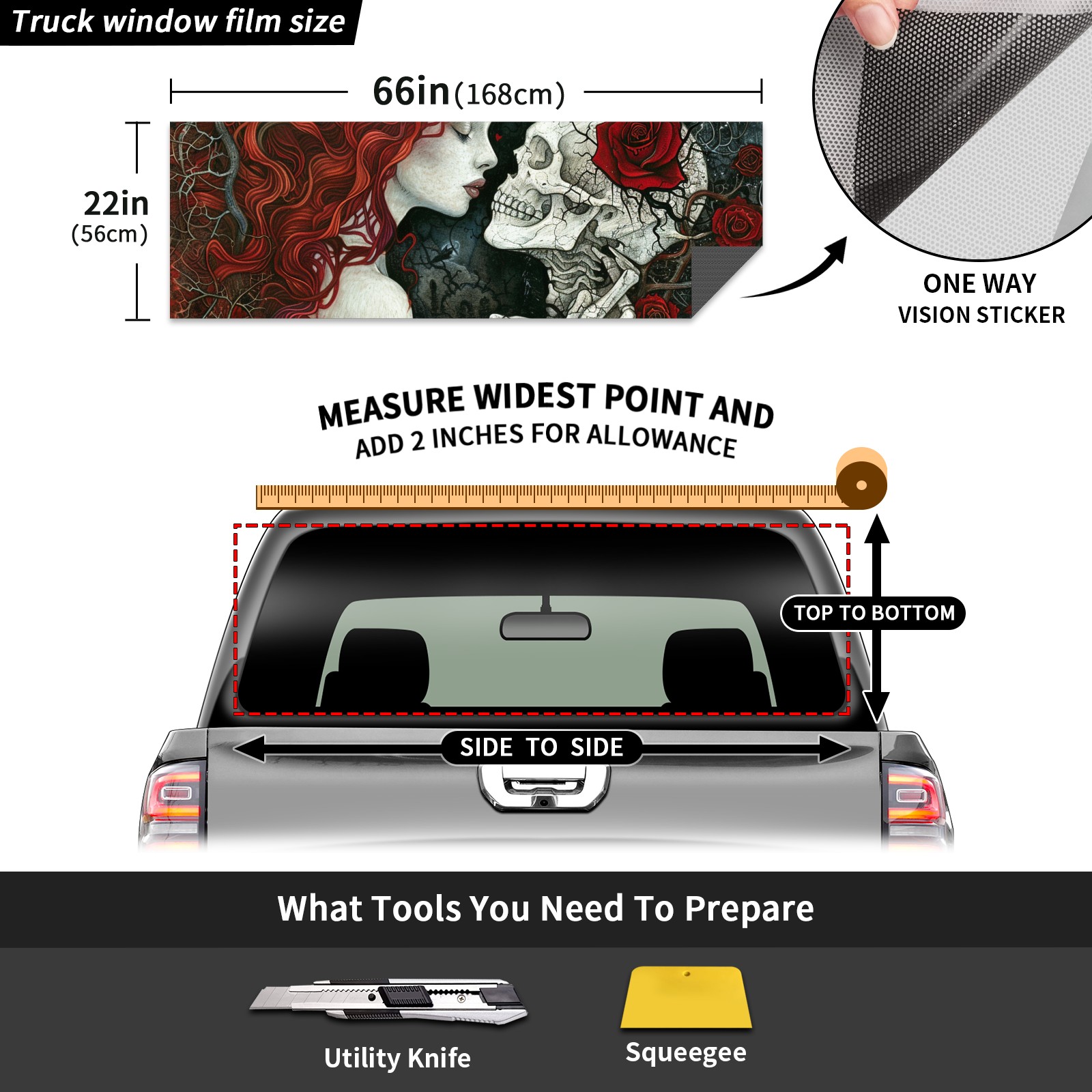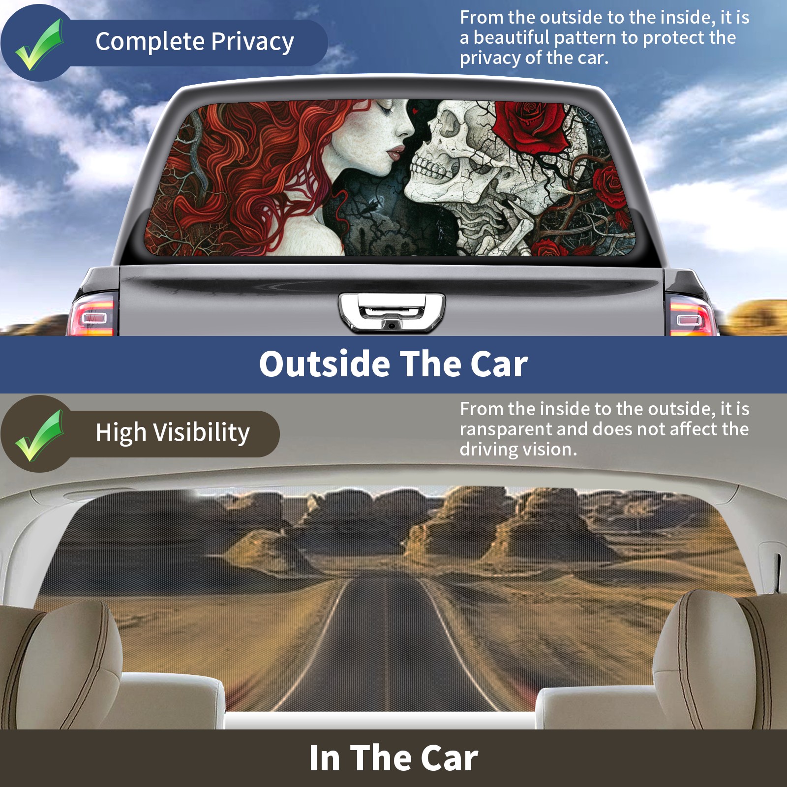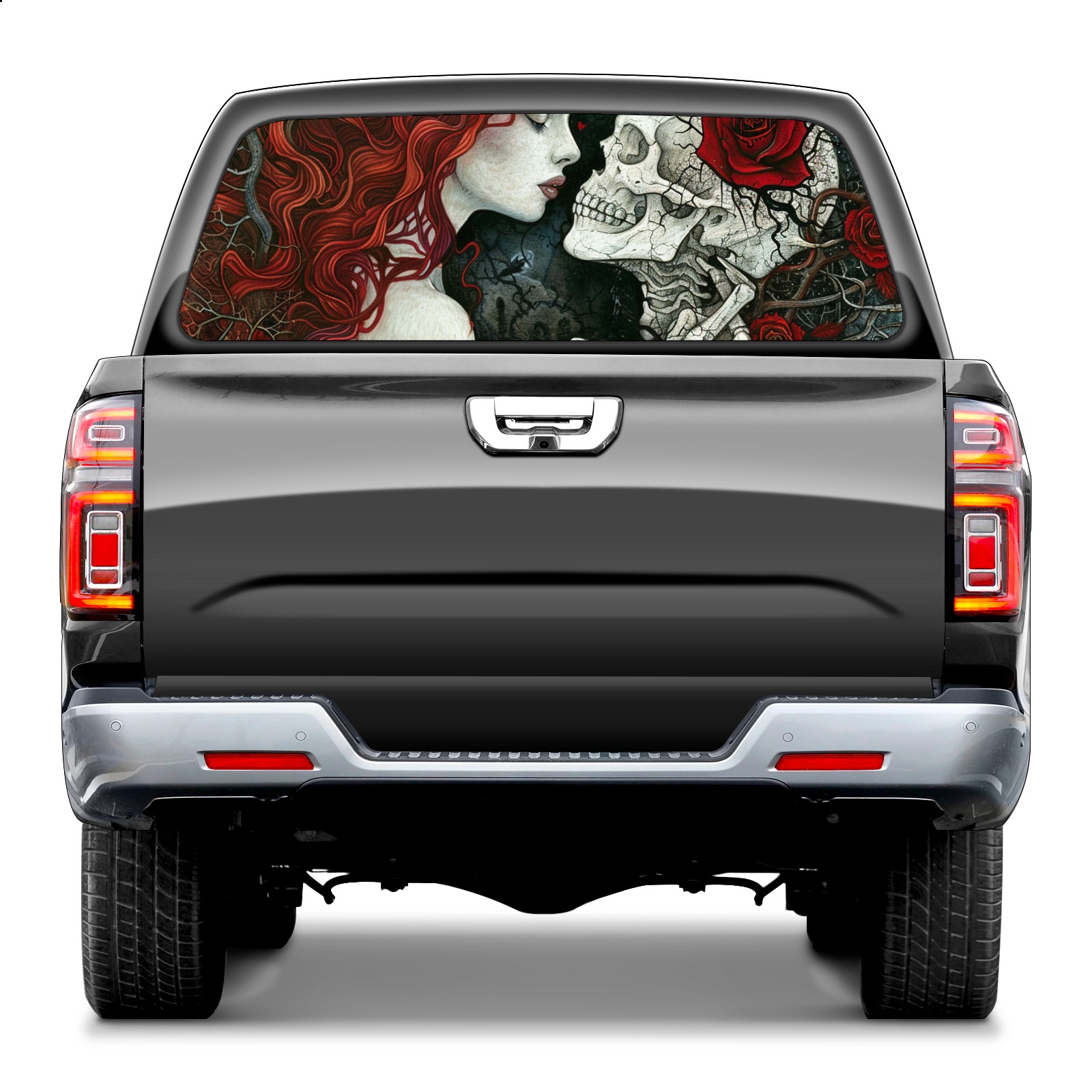 Truck Rear Window Graphics Decals Pickup Trucks Back Window Sticker Full Window Film Decal One Way Visual Waterproof Car Rear Tint Skull Head