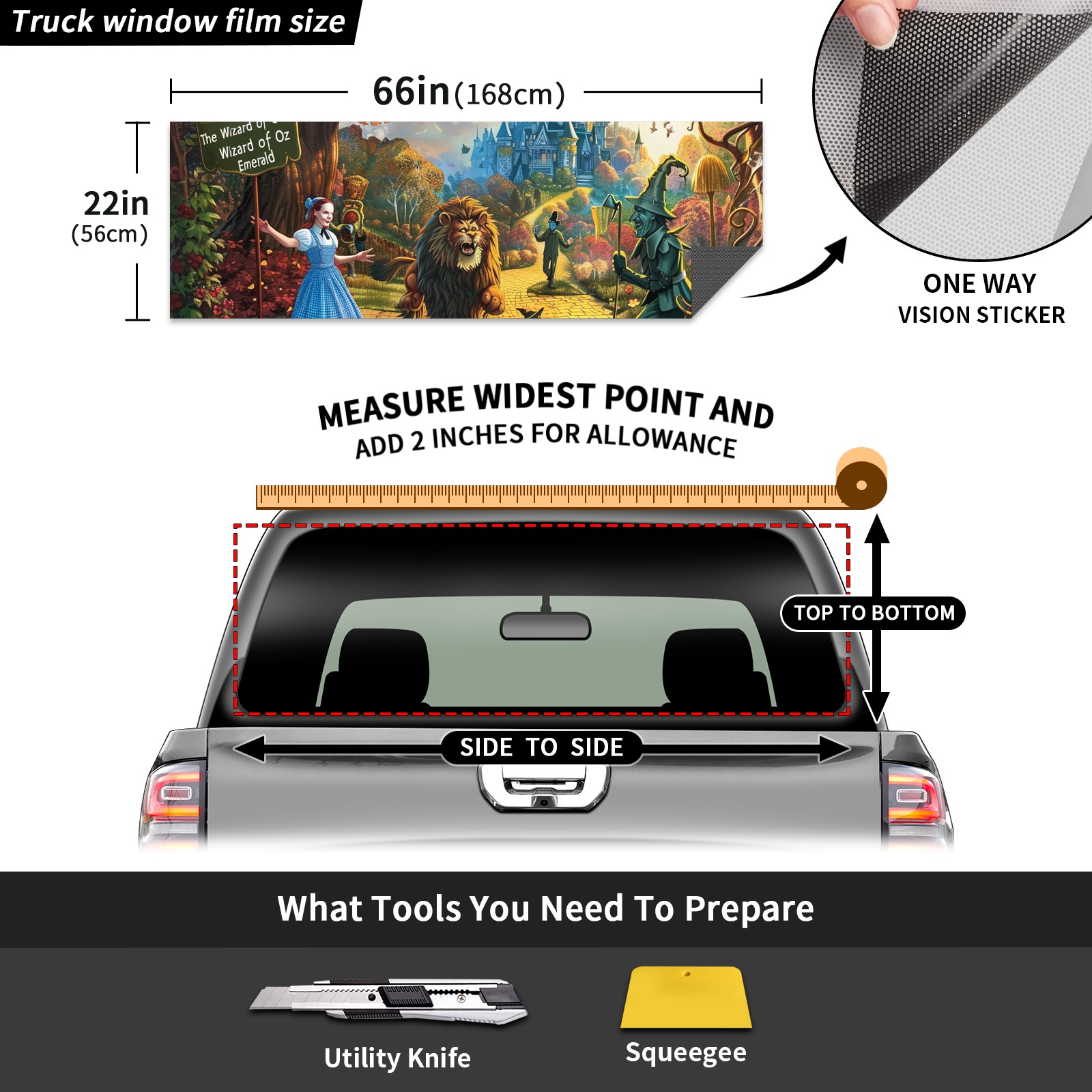 Truck Rear Window Graphics Decals Pickup Trucks Back Window Sticker Full Window Film Decal One Way Visual Waterproof Car Rear Tint Castle