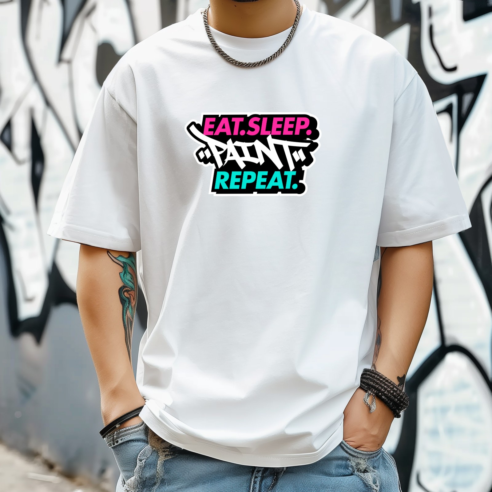 Eat Sleep T-Shirt for Man Tops Short Sleeves Shirt Crew Neck Shirt XS