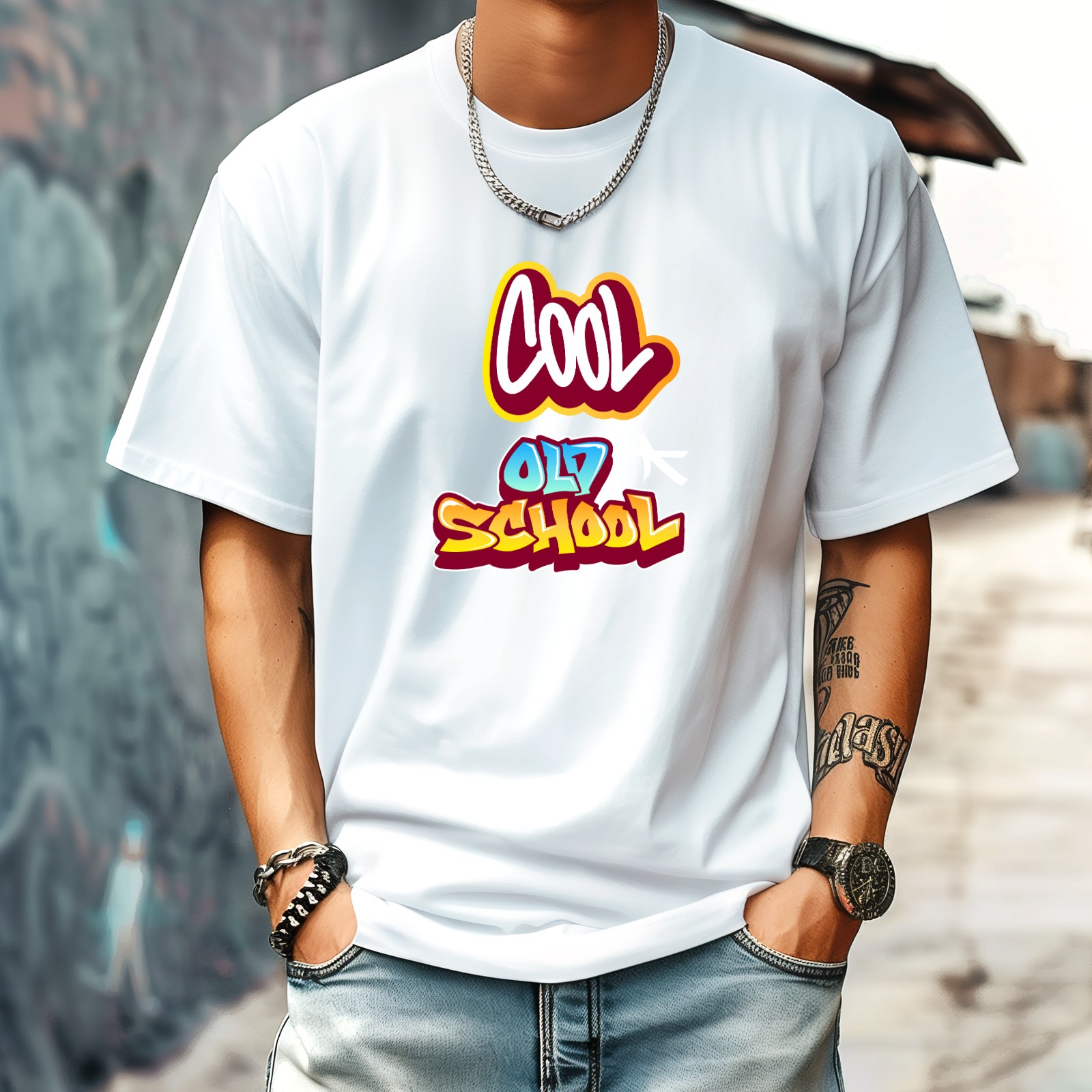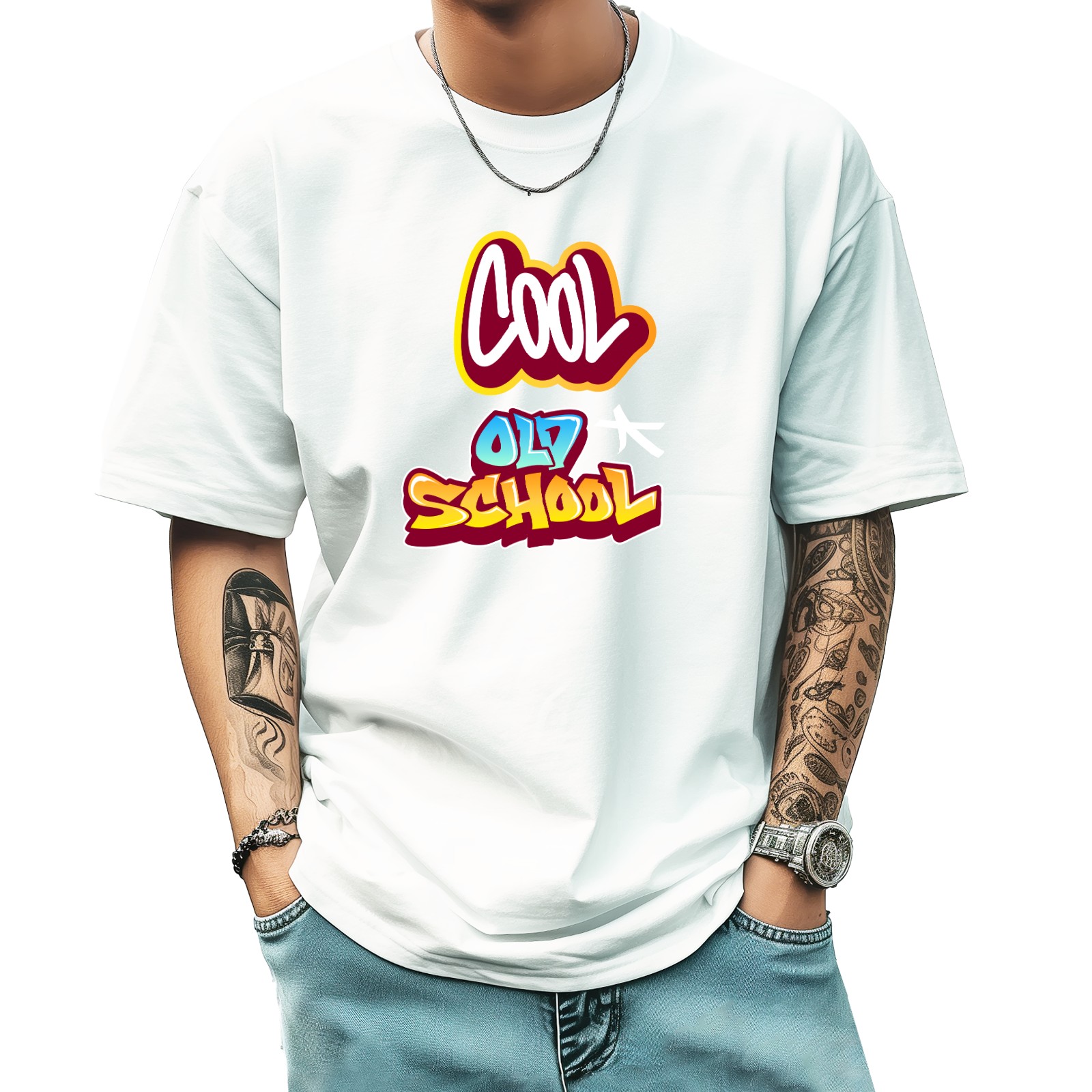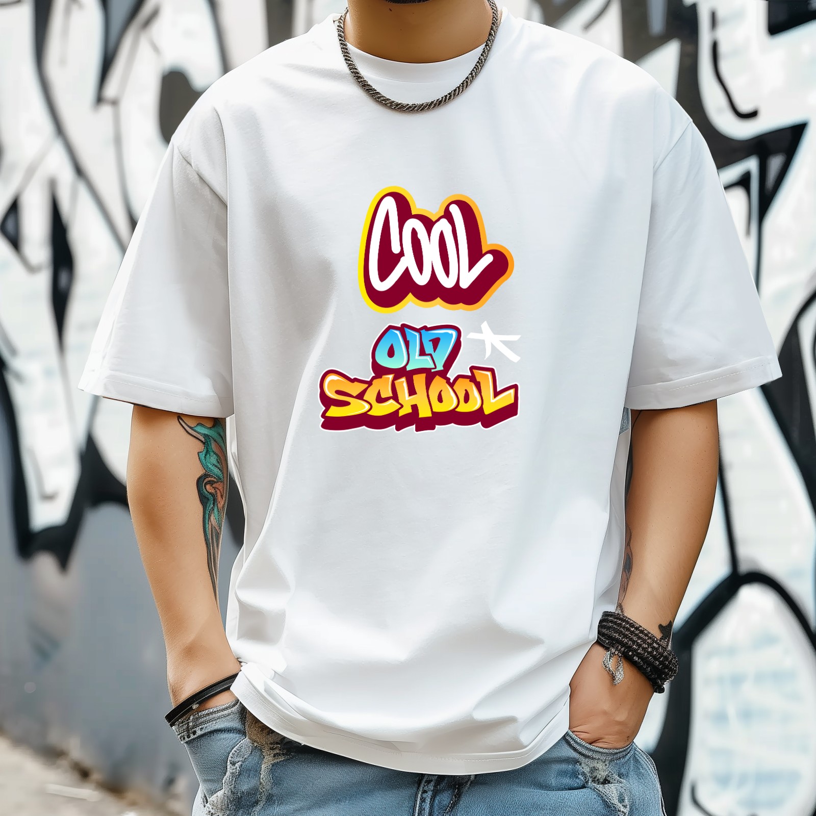 Cool Old School T-Shirt for Man Tops Short Sleeves Shirt Crew Neck Shirt XS