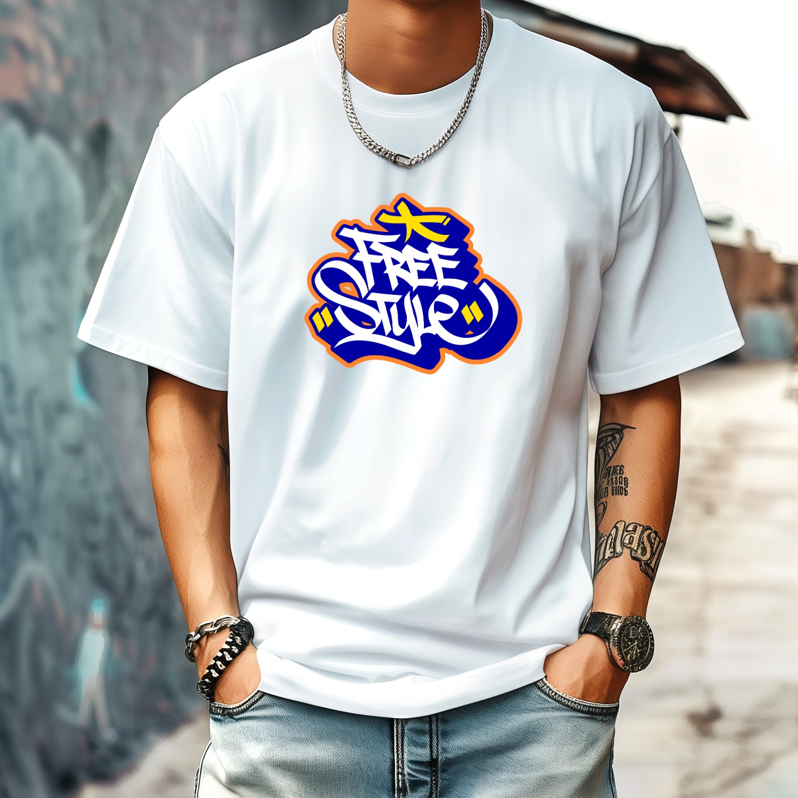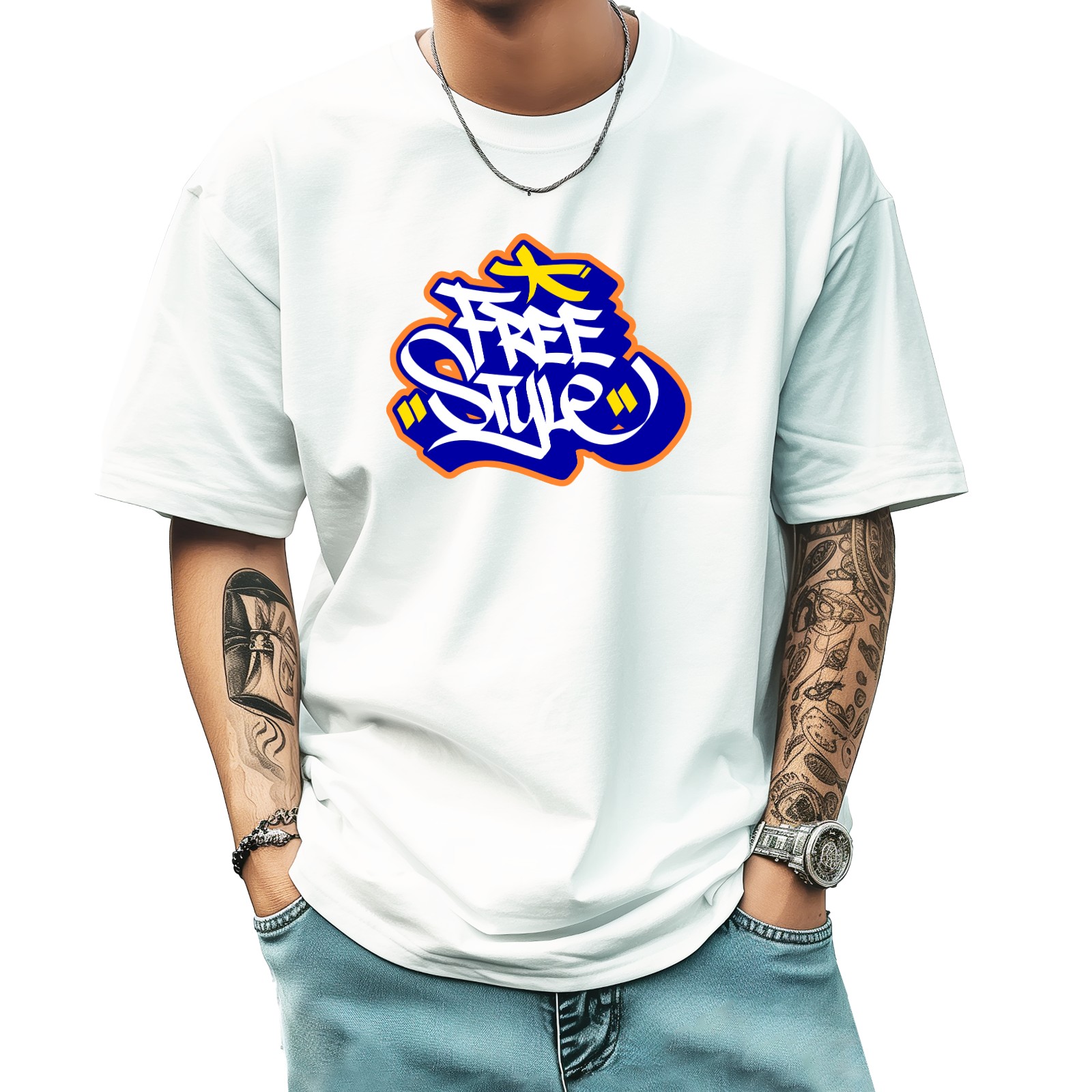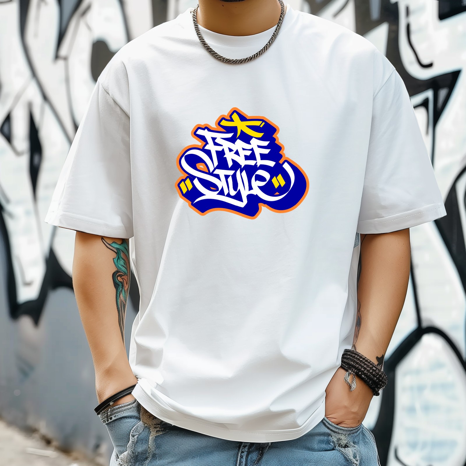Free Style (2) T-Shirt for Man Tops Short Sleeves Shirt Crew Neck Shirt XS