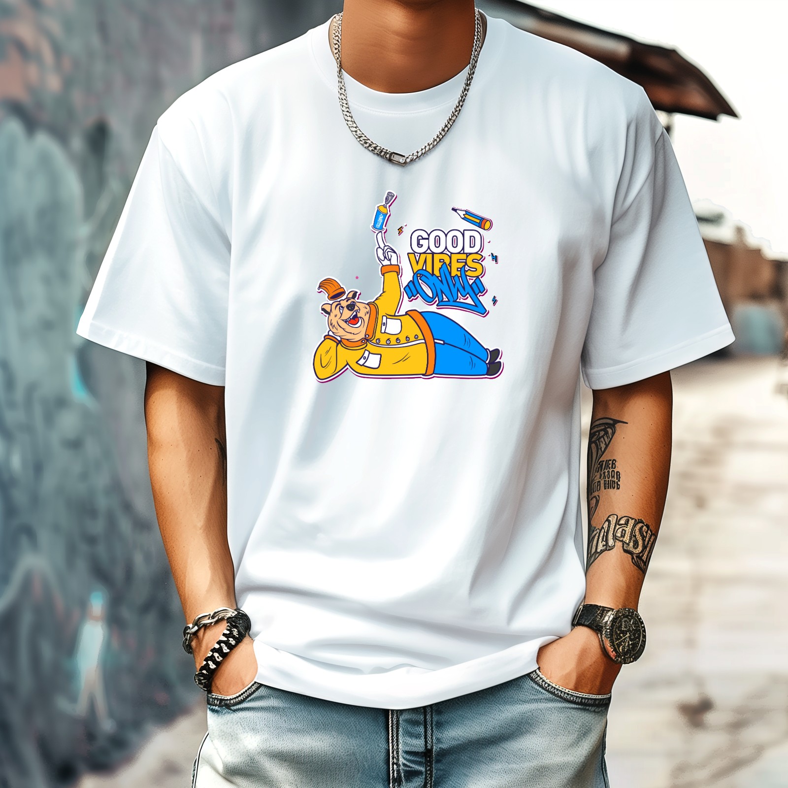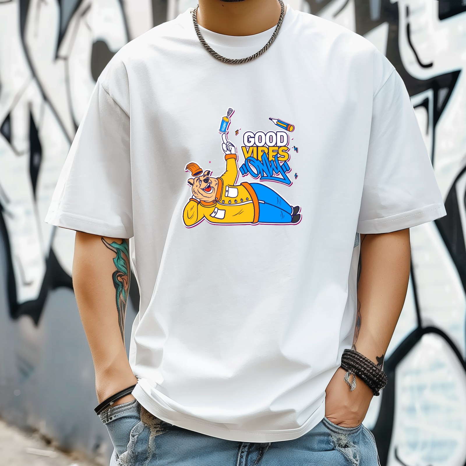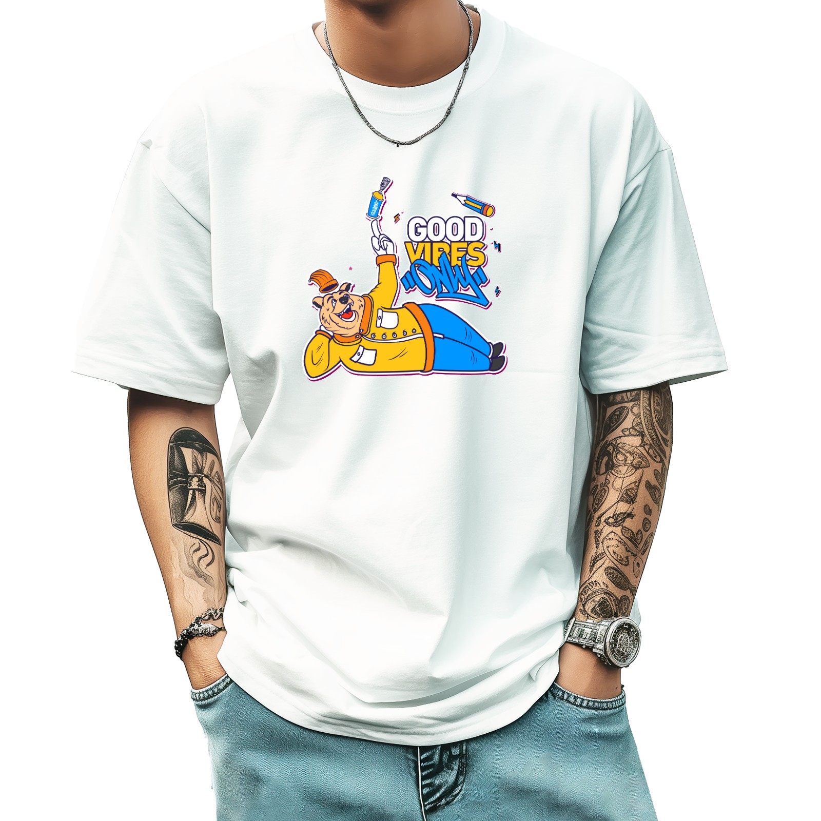 Good Vibes T-Shirt for Man Tops Short Sleeves Shirt Crew Neck Shirt XS