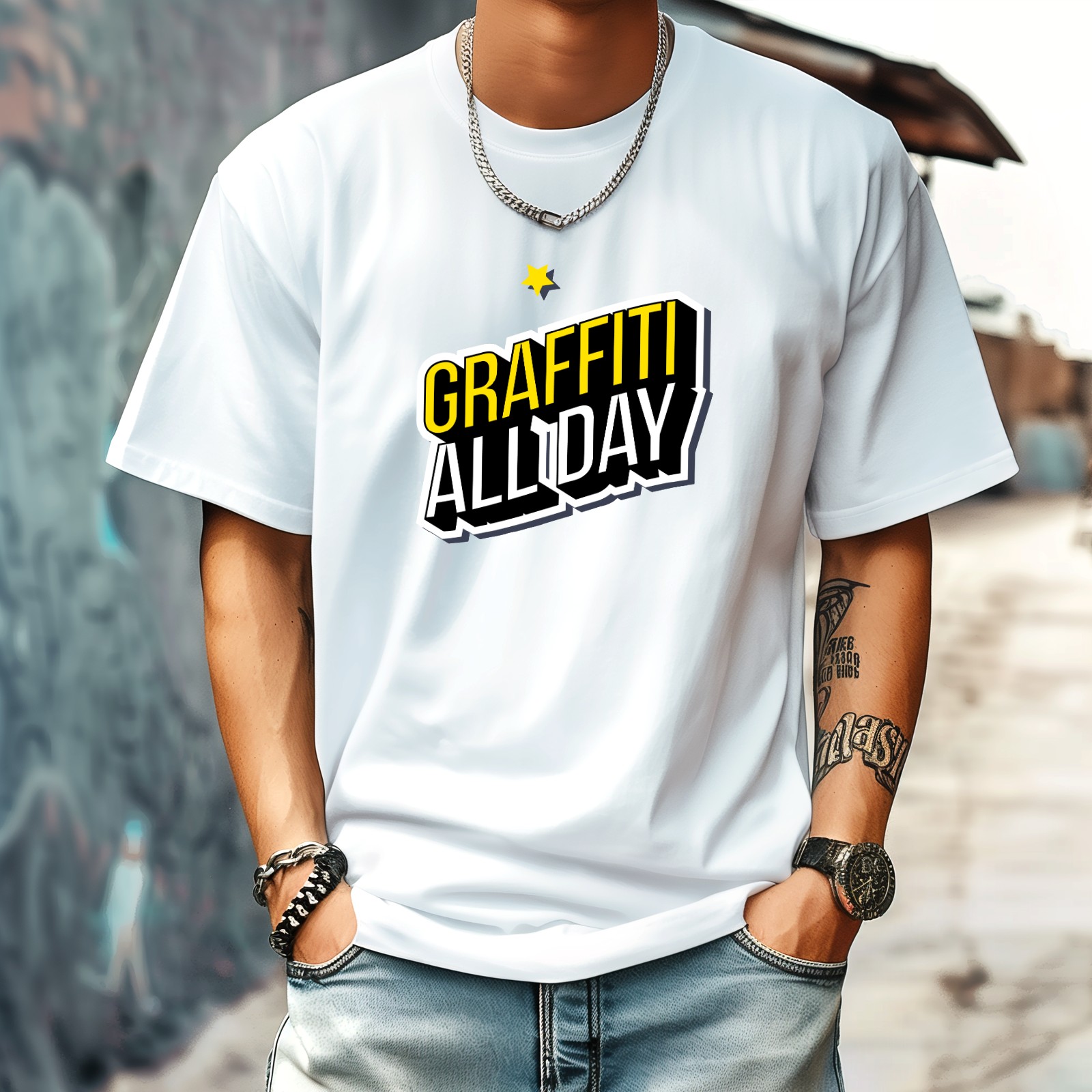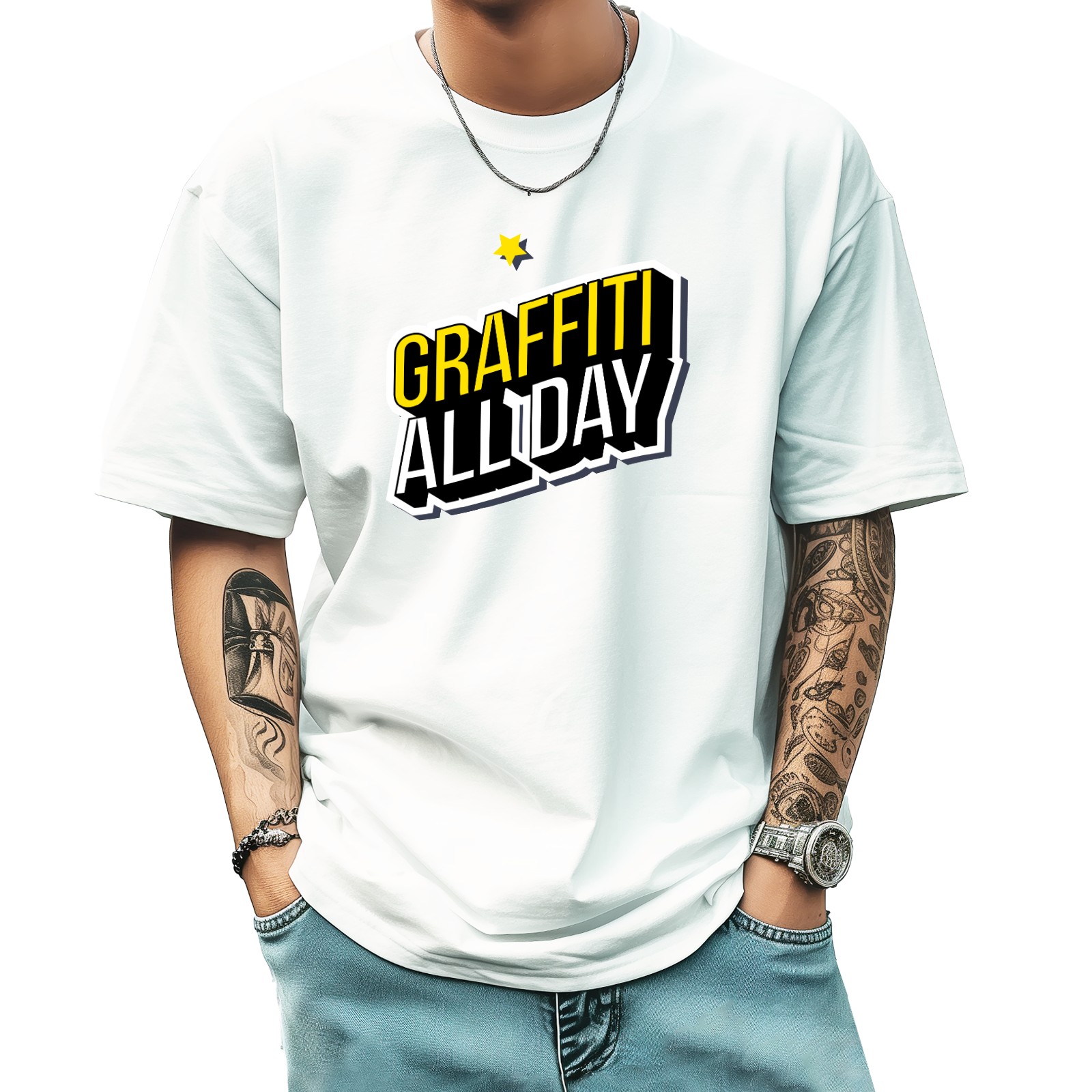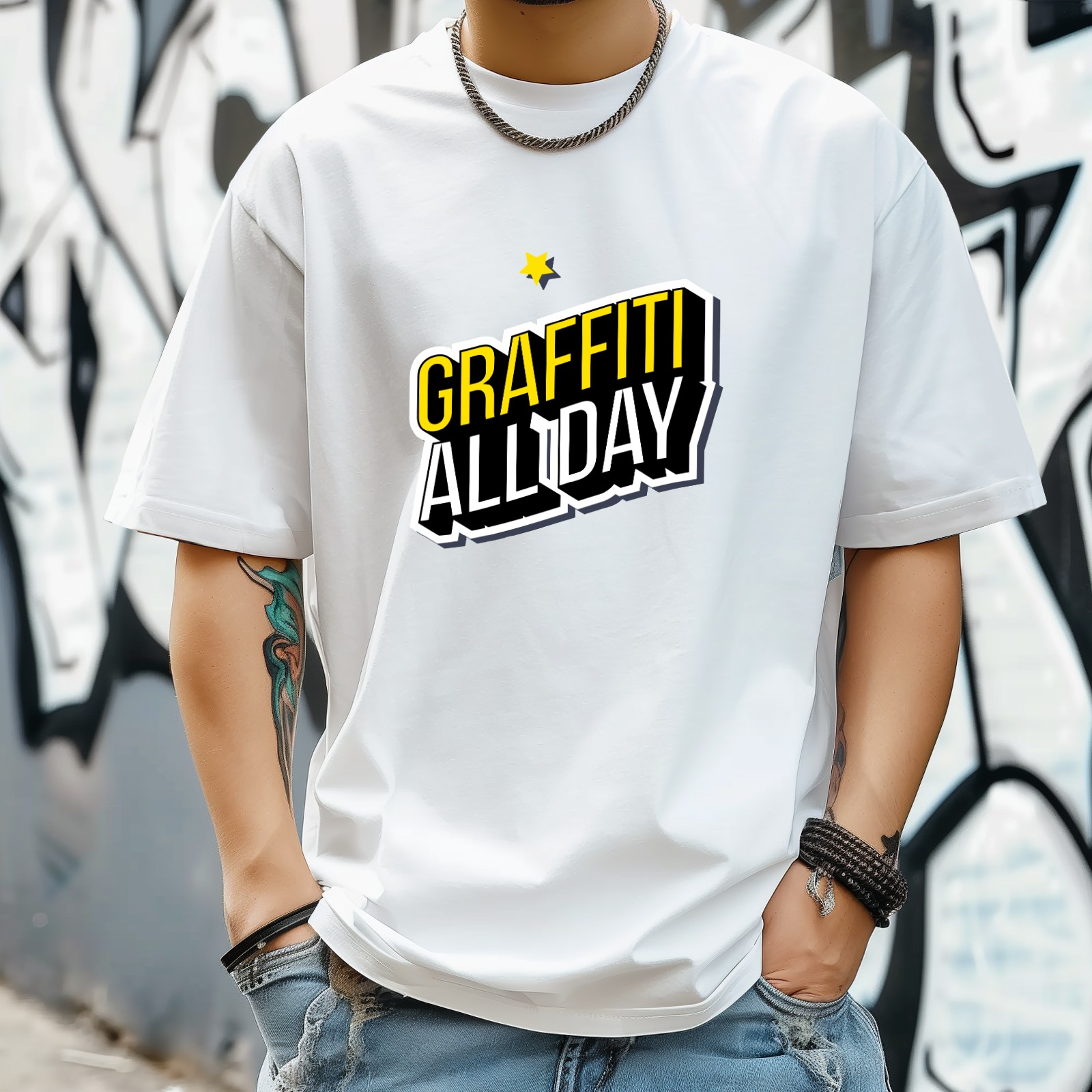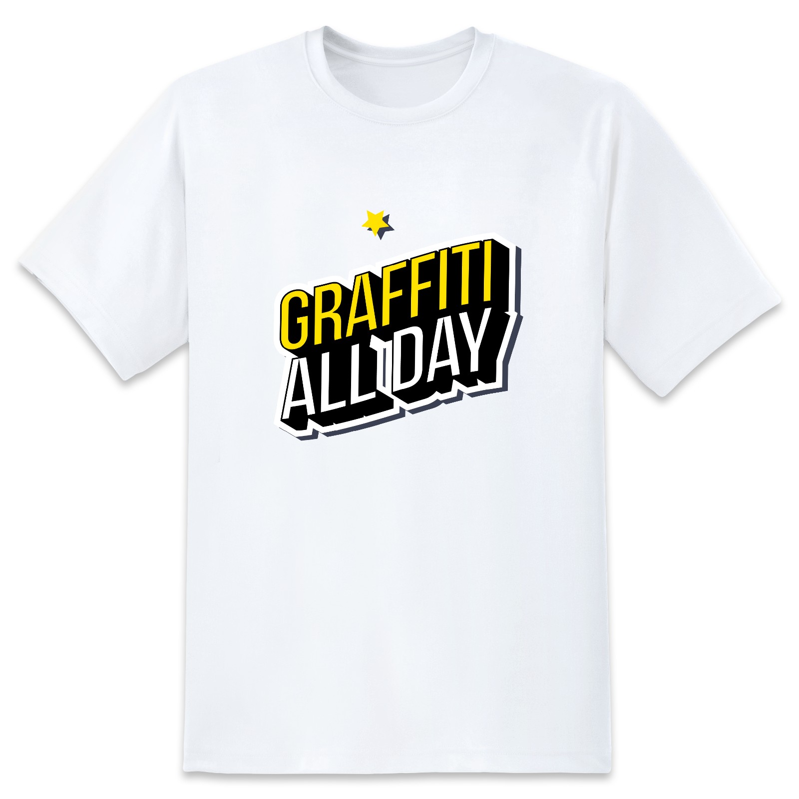 Graffiti Allday T-Shirt for Man Tops Short Sleeves Shirt Crew Neck Shirt XS