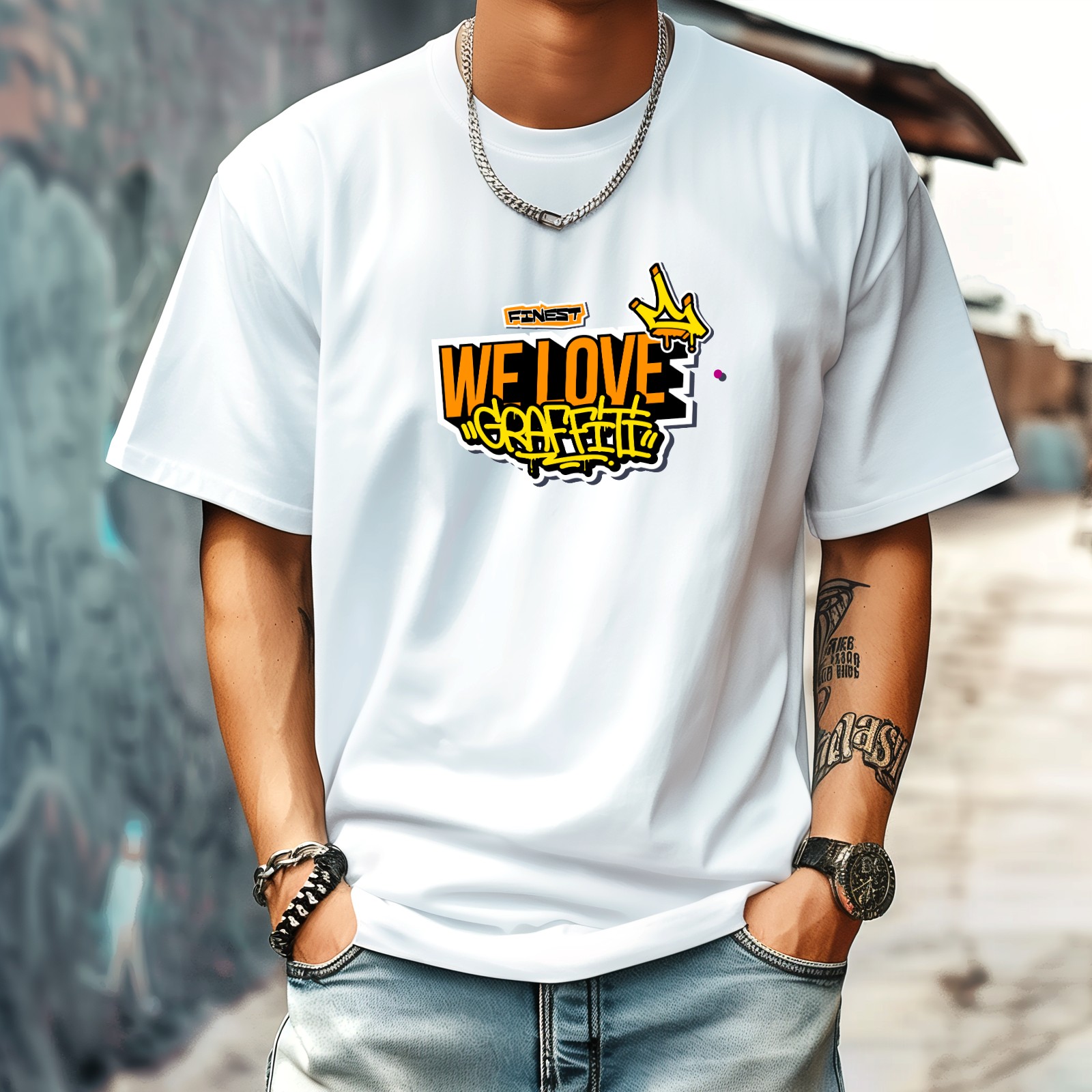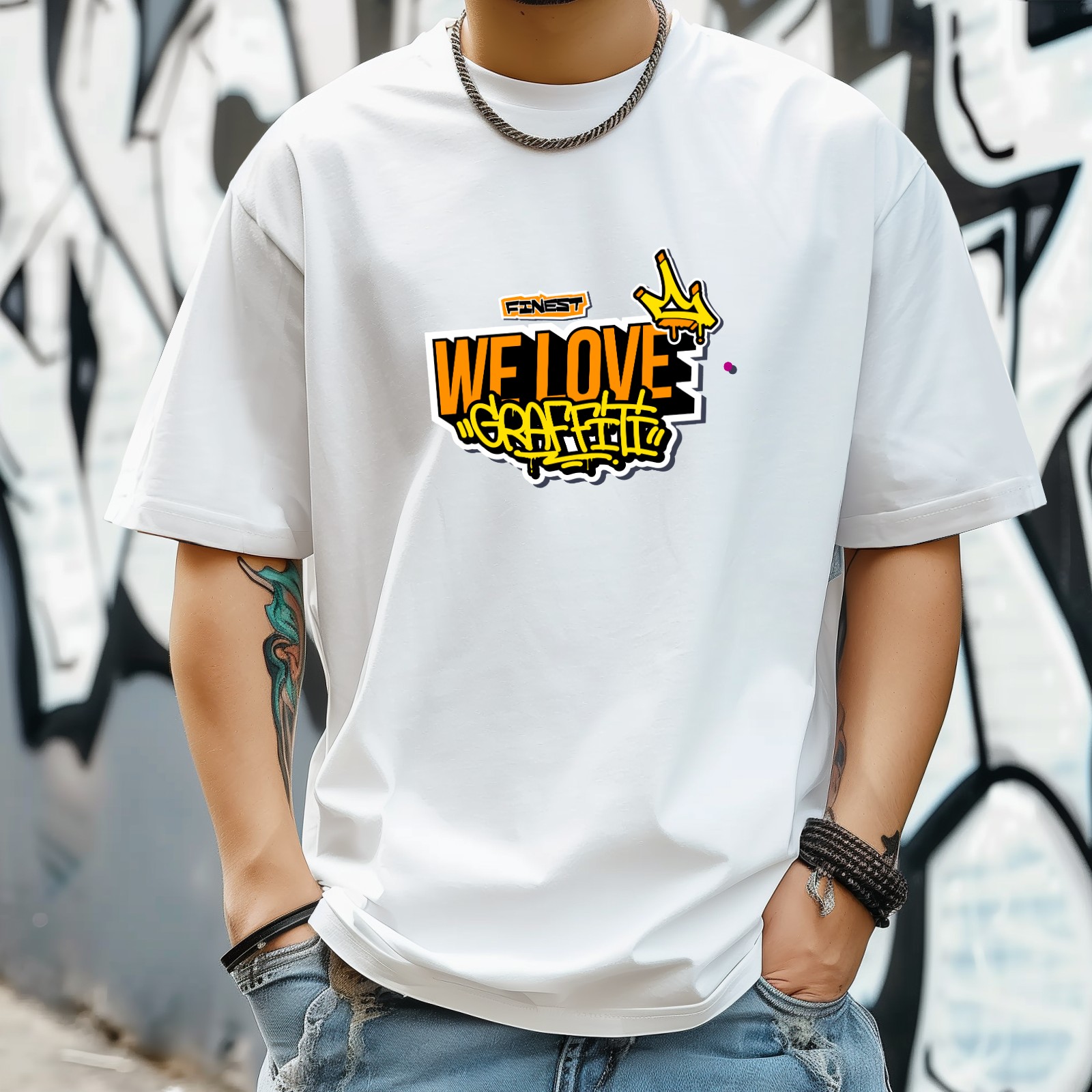 Graffiti Love T-Shirt for Man Tops Short Sleeves Shirt Crew Neck Shirt XS