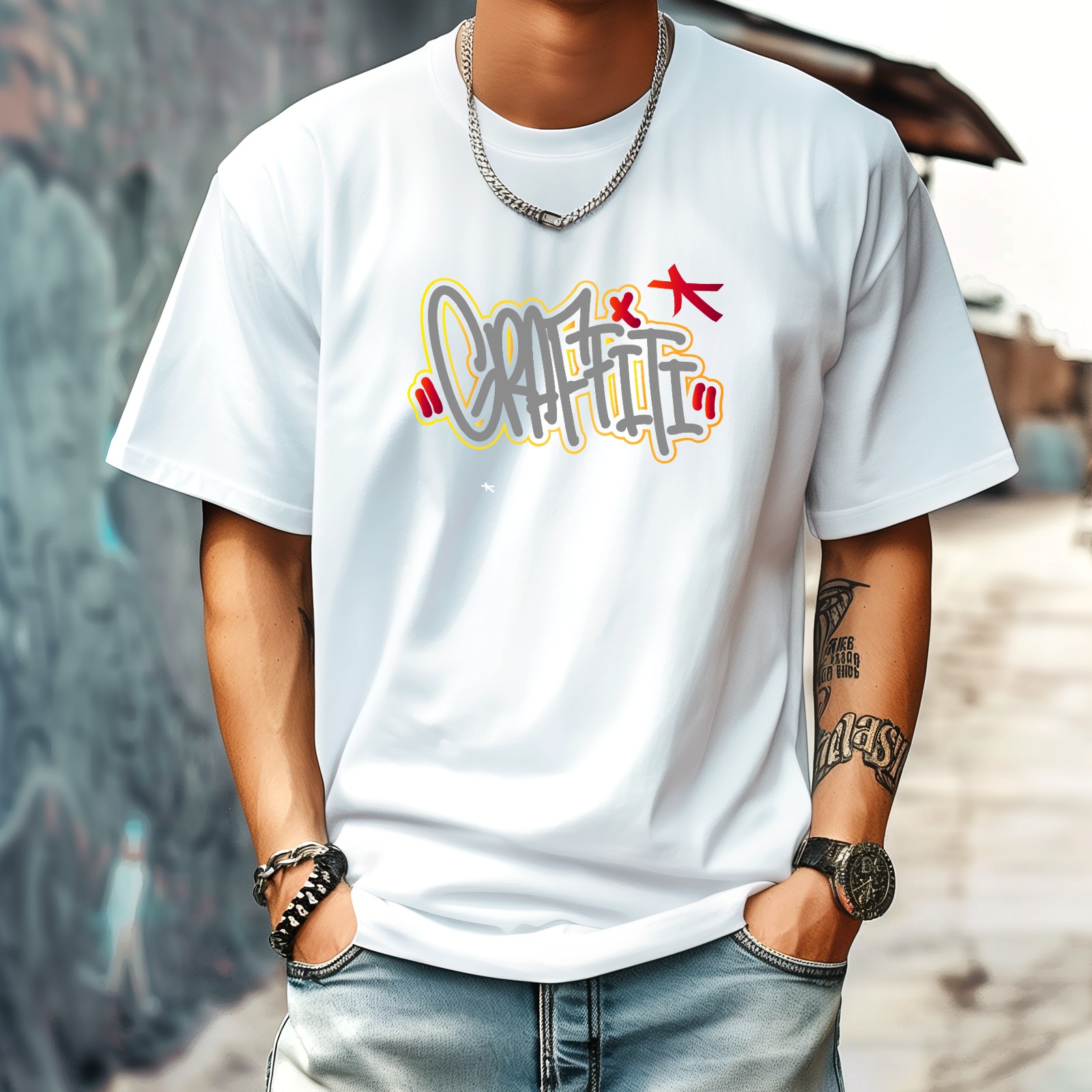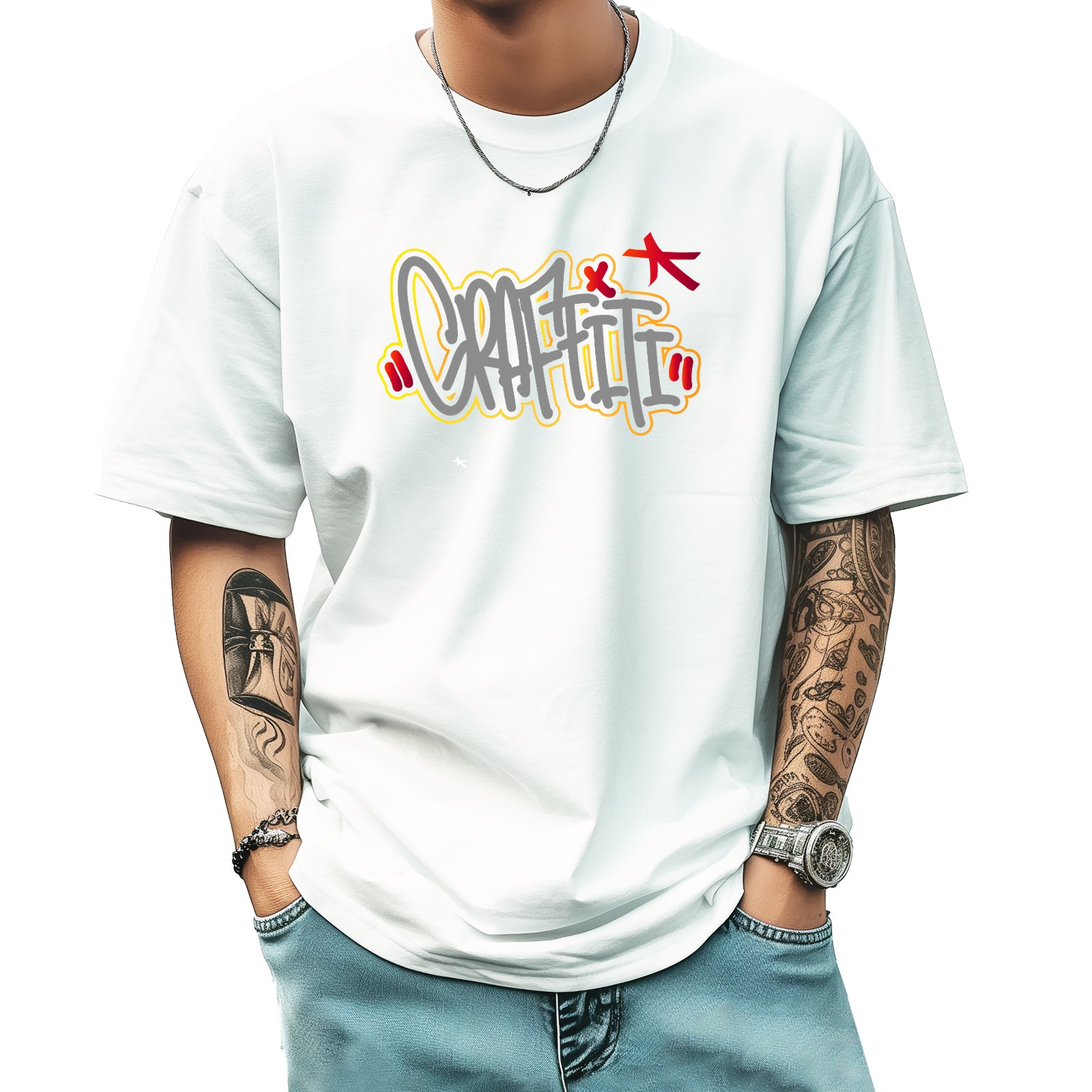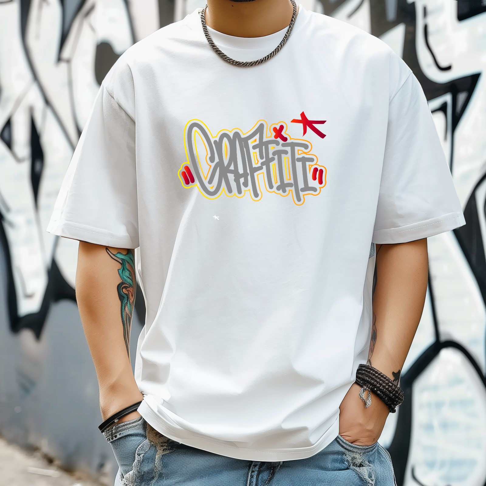 Graffiti T-Shirt for Man Tops Short Sleeves Shirt Crew Neck Shirt XS